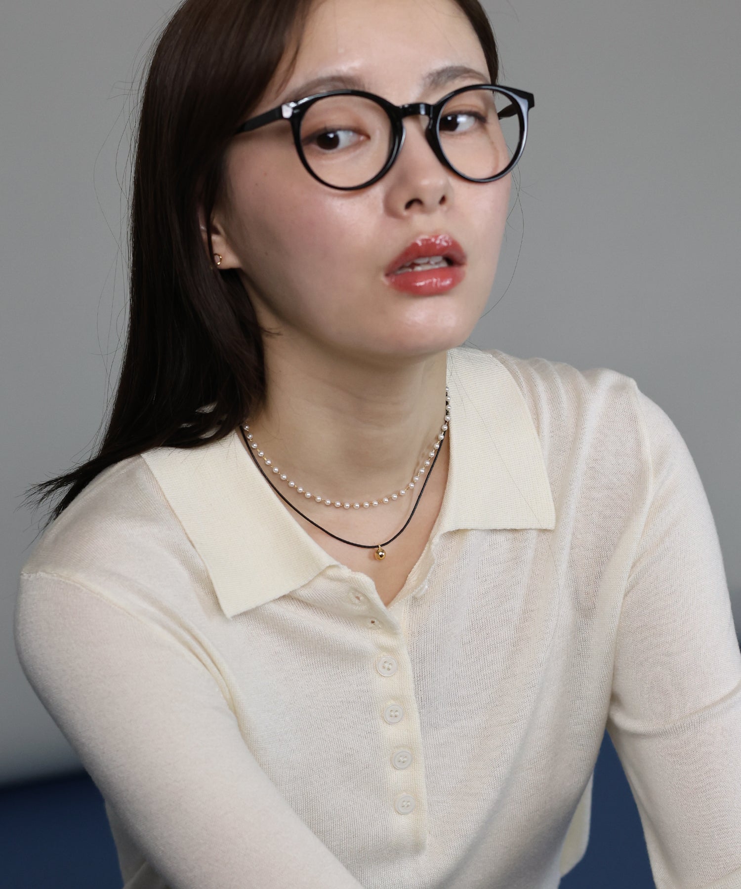 パールの艶めきが女性らしさを引き立てつつ、コードチョーカーが程よいエッジをプラス。