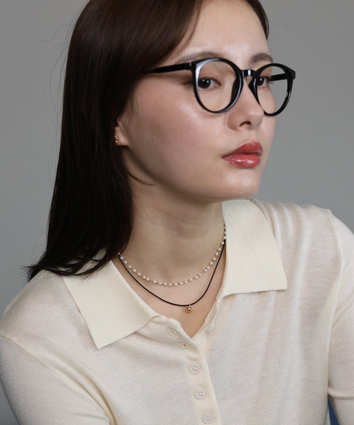 パールとコードチョーカーのコントラストが魅力の2連ネックレス