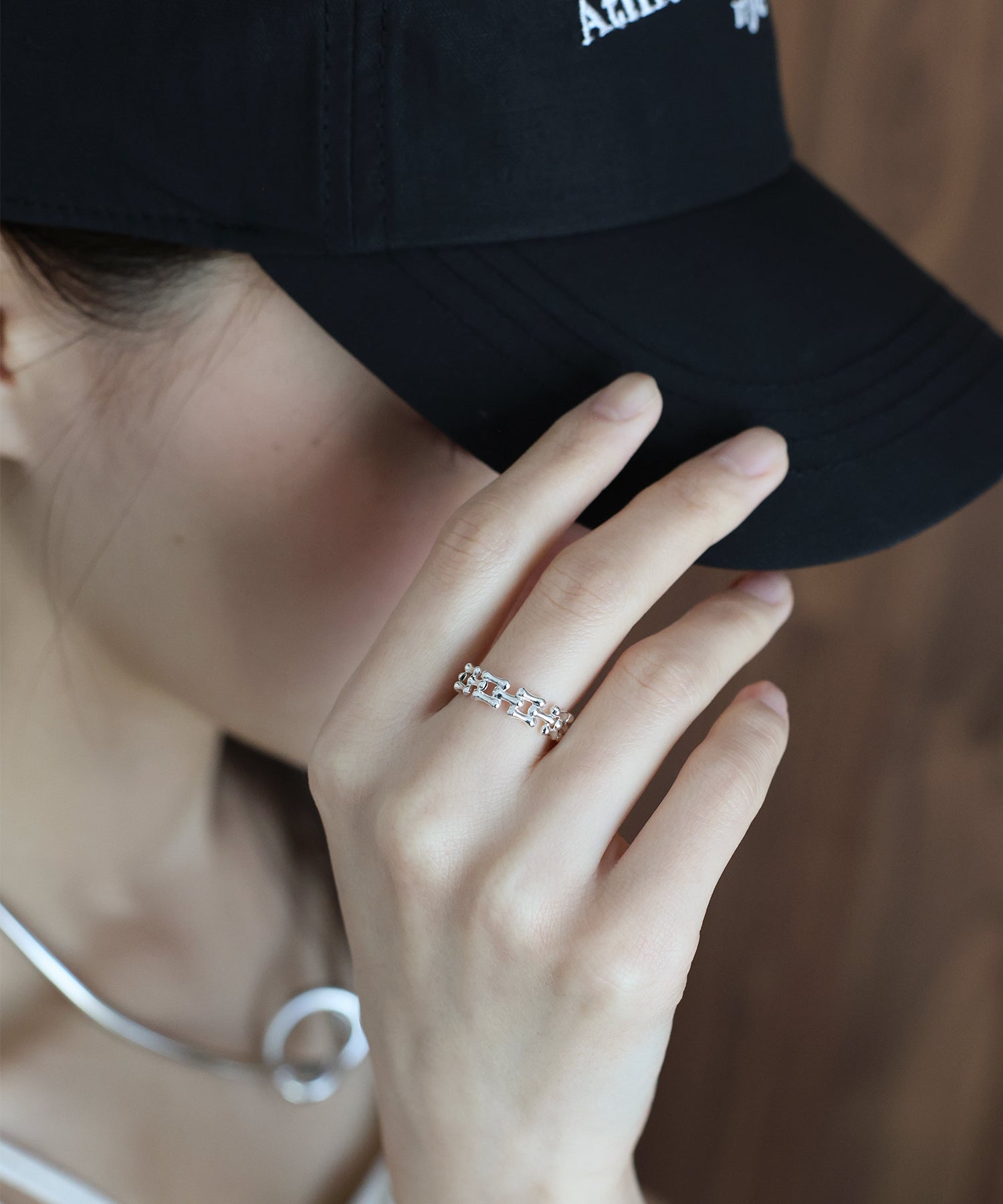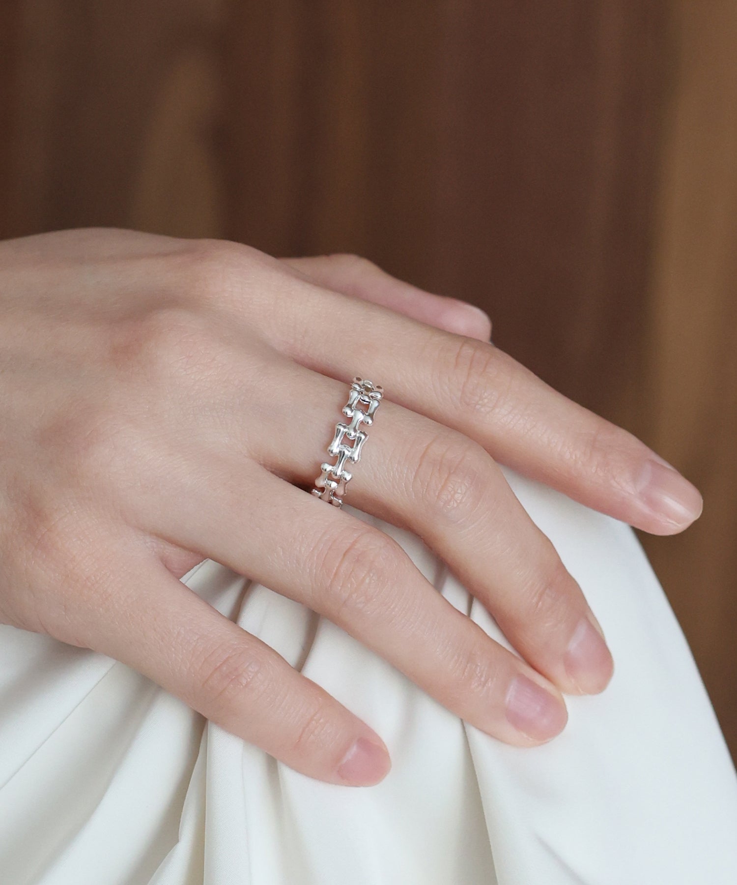 silver925の美しい光沢を活かした、表情豊かなチェーンデザインリング。