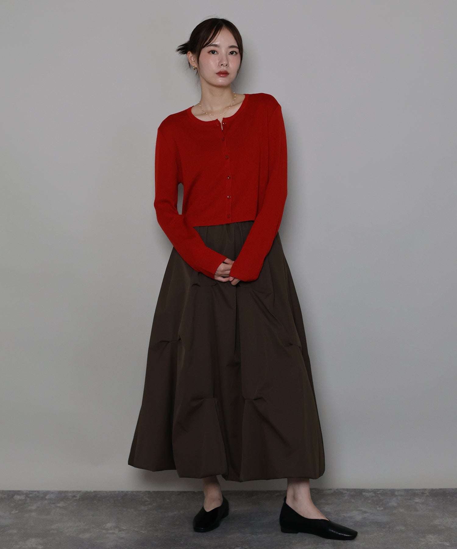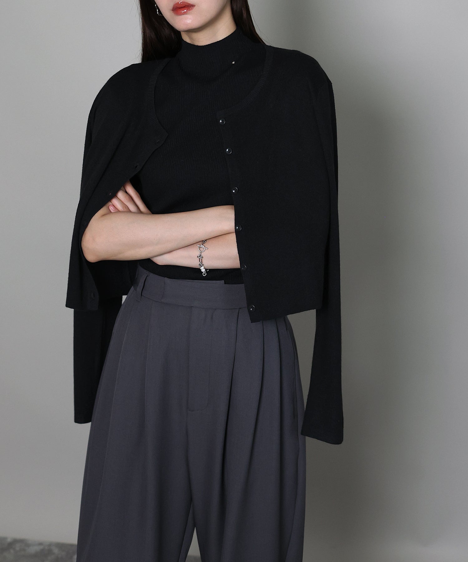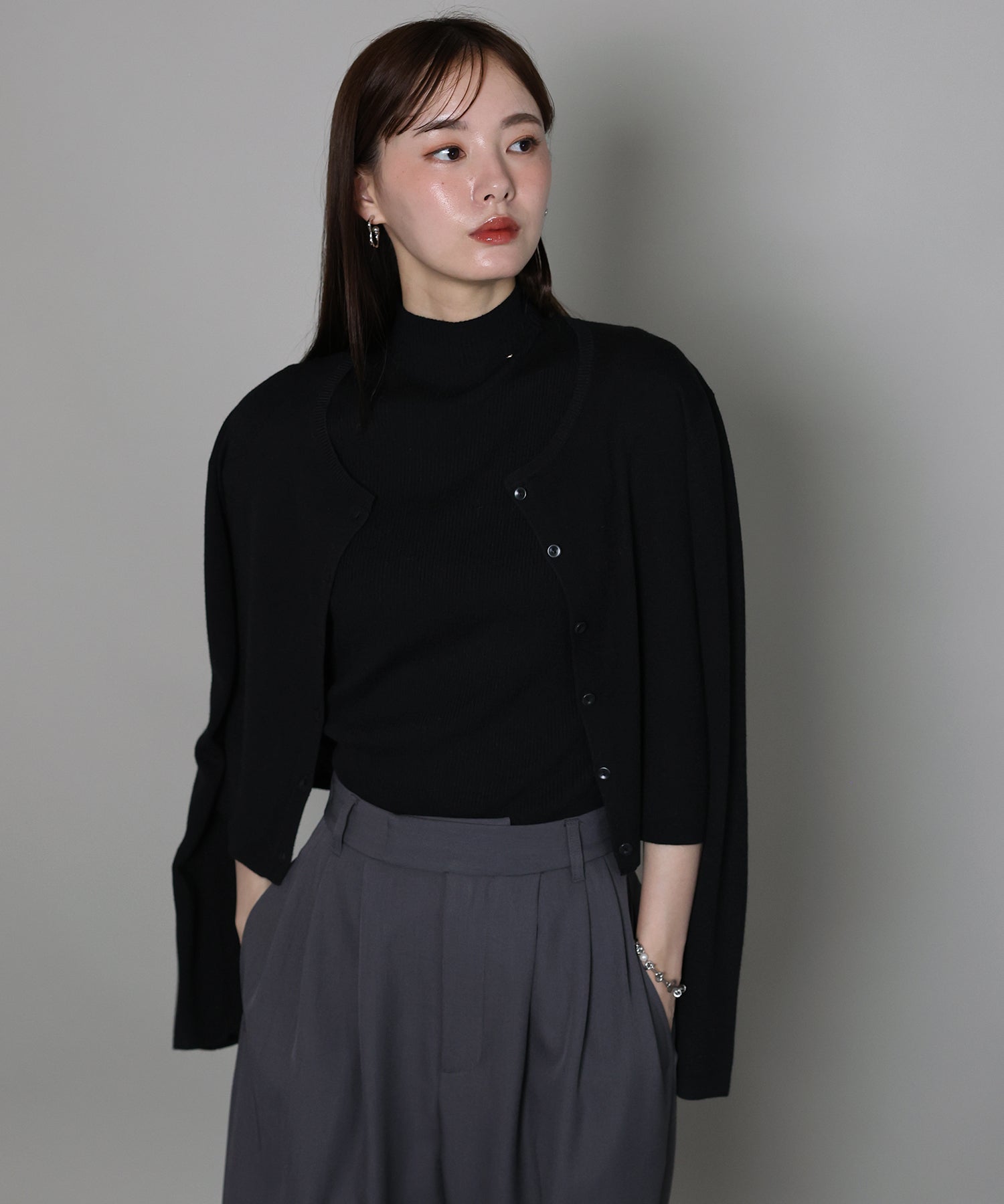パンツからスカート、ワンピ、ハイネックニットまで幅広いアイテムと合わせていただけます。