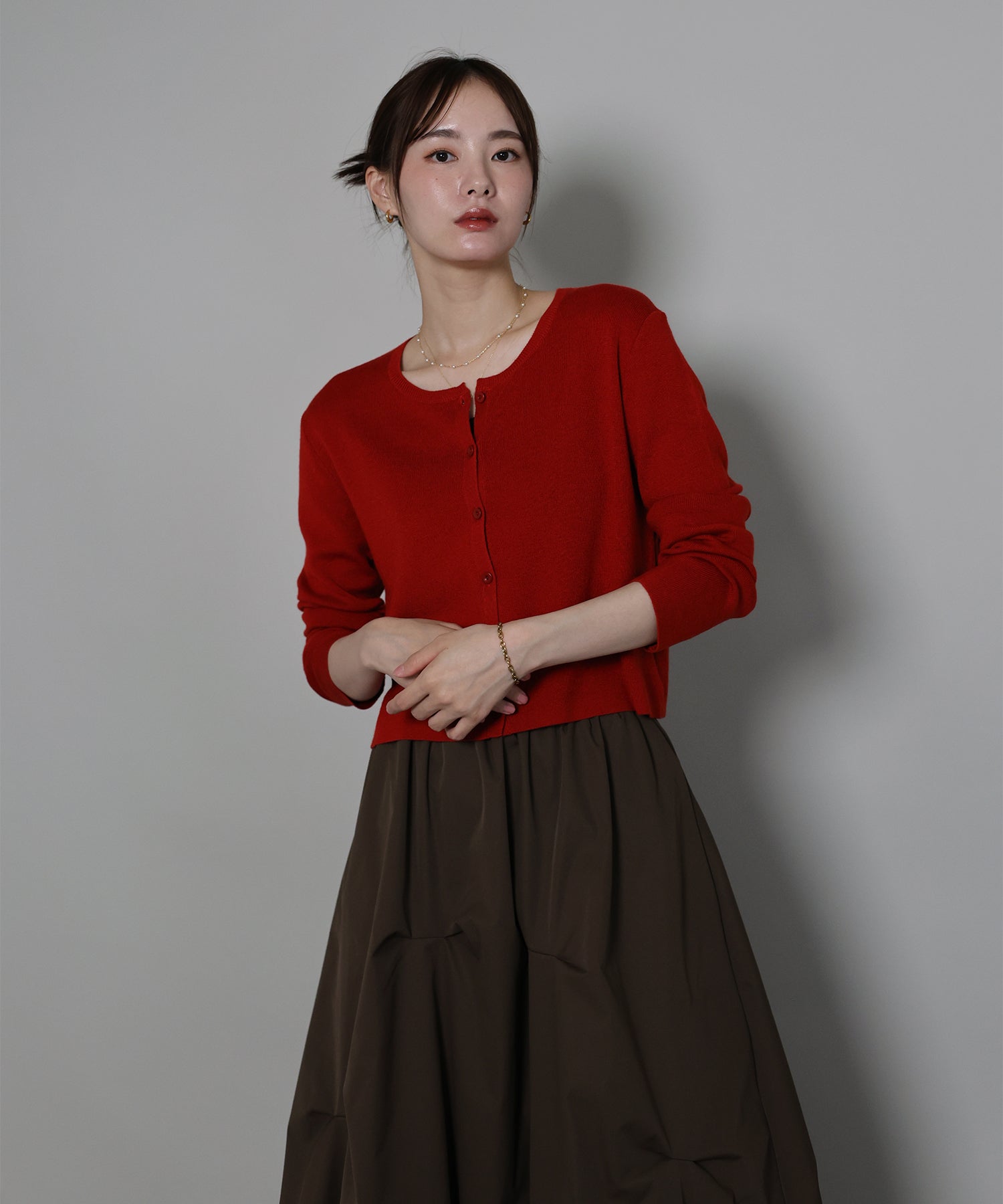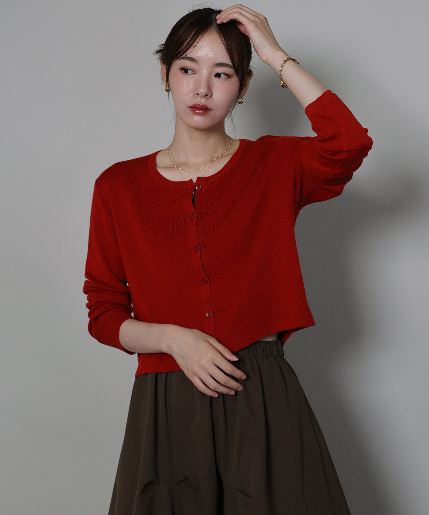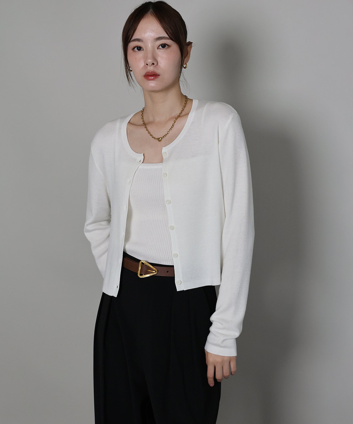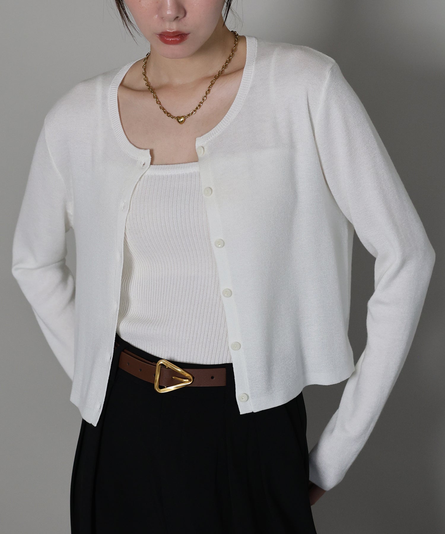 羽織りとしてはもちろん、トップスとしての着こなしもおすすめ。