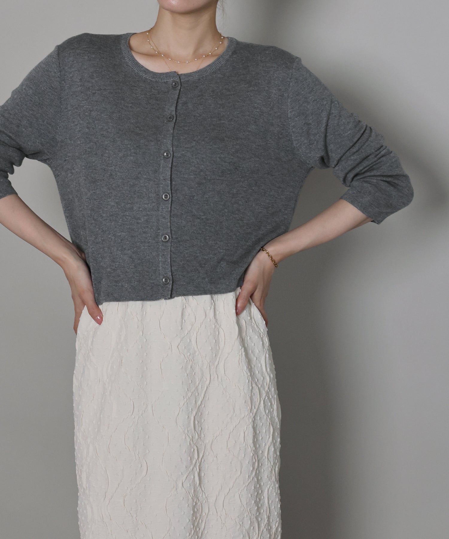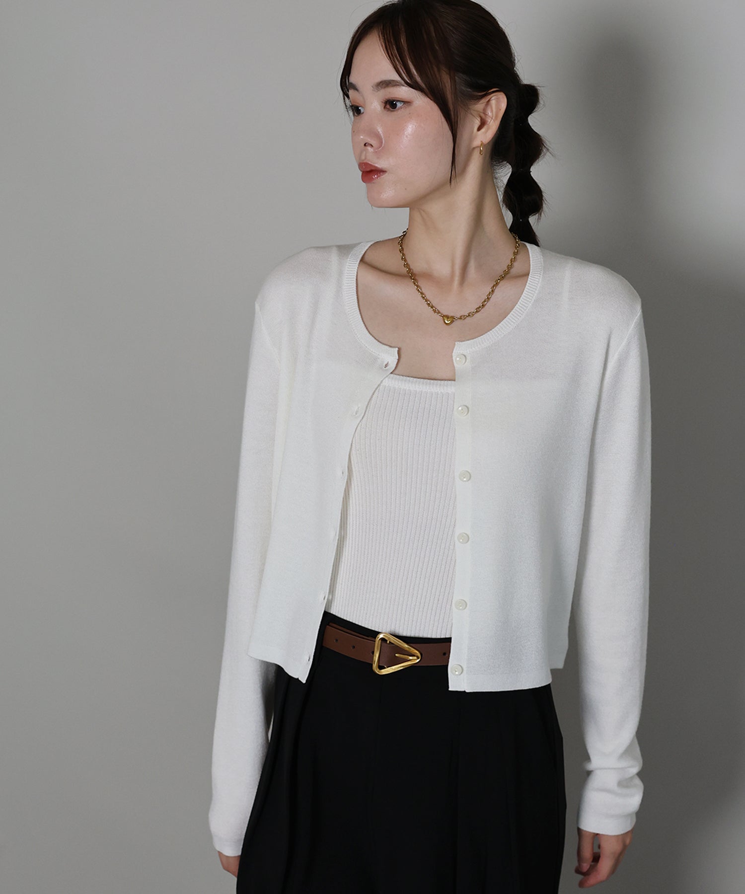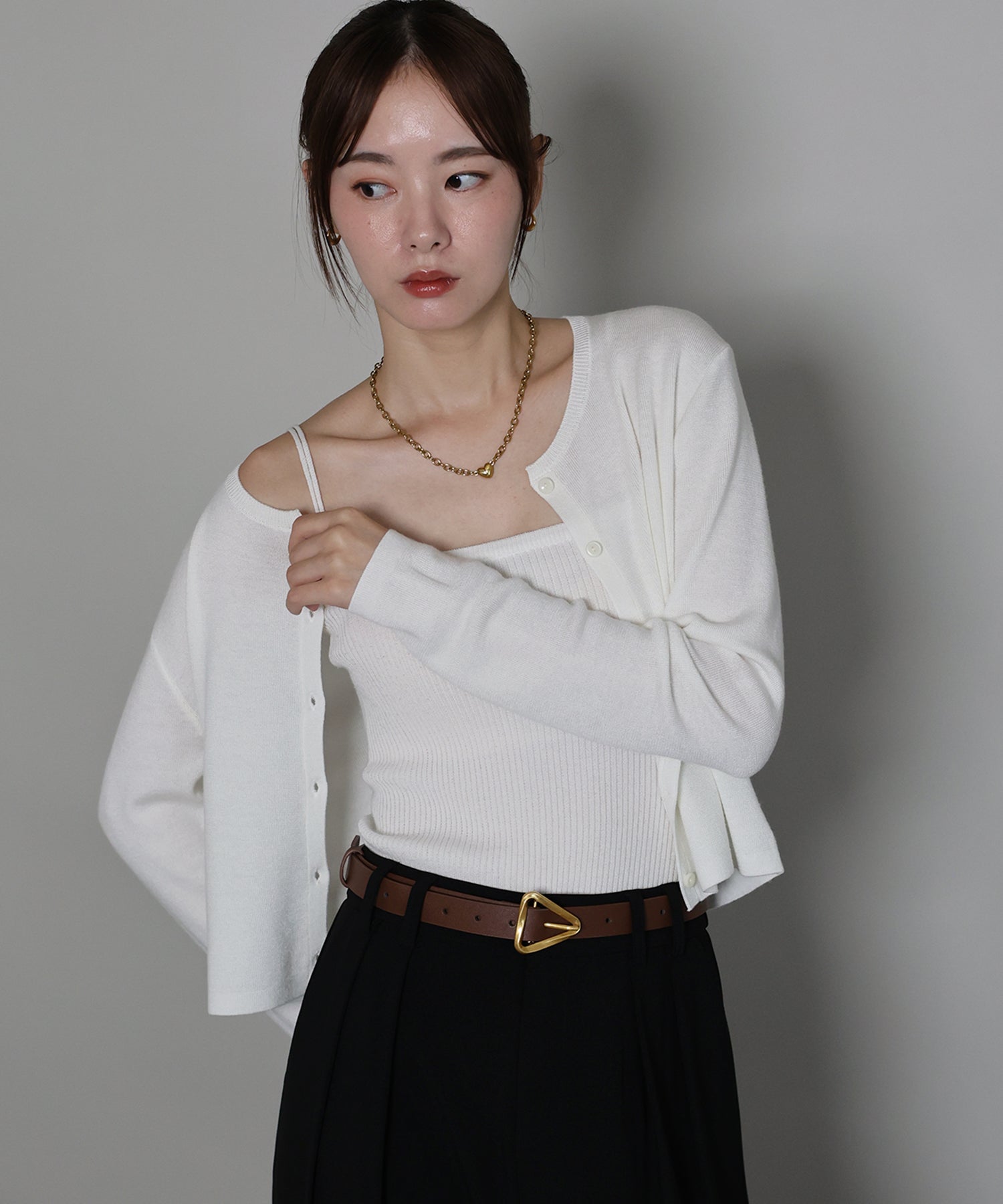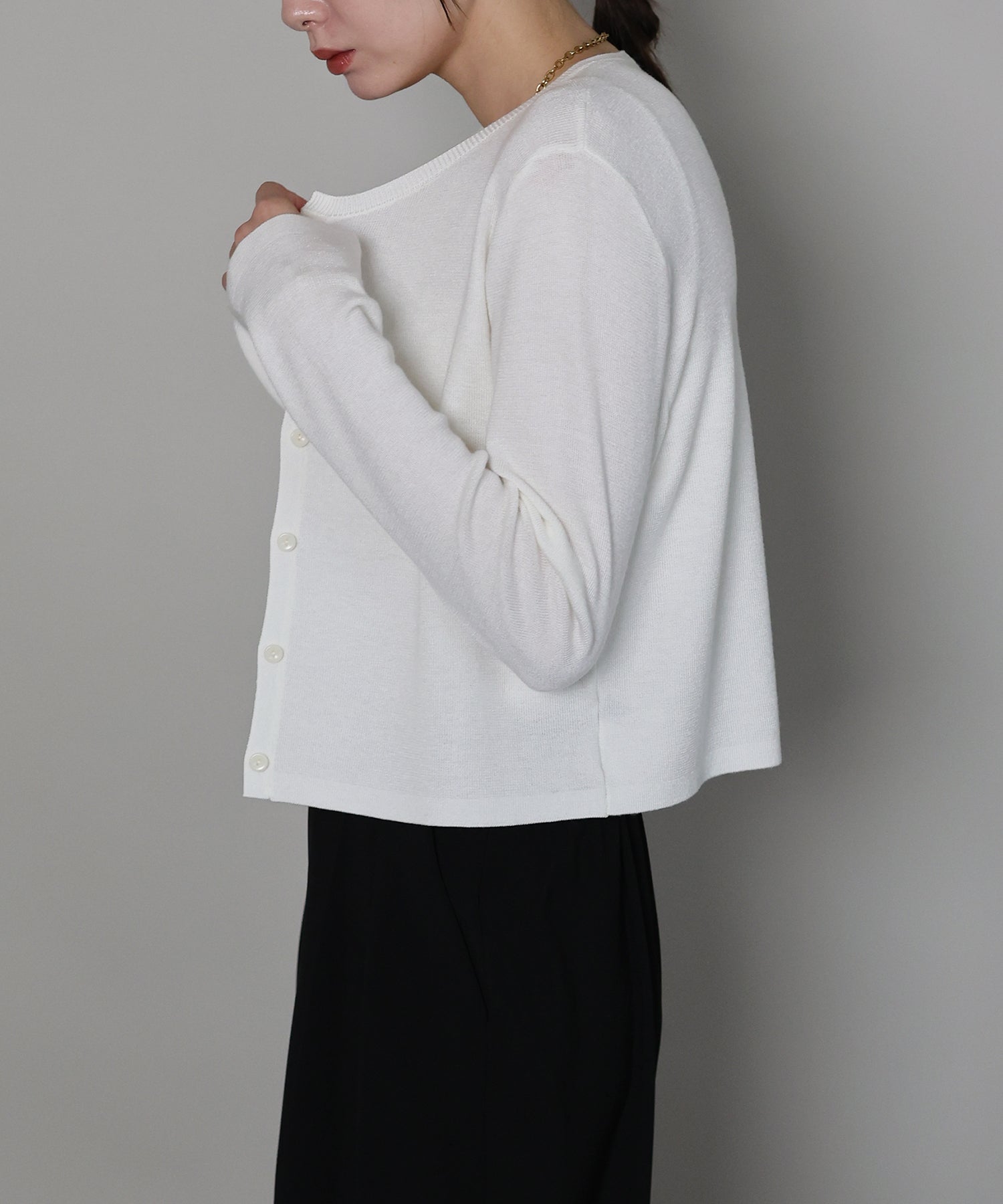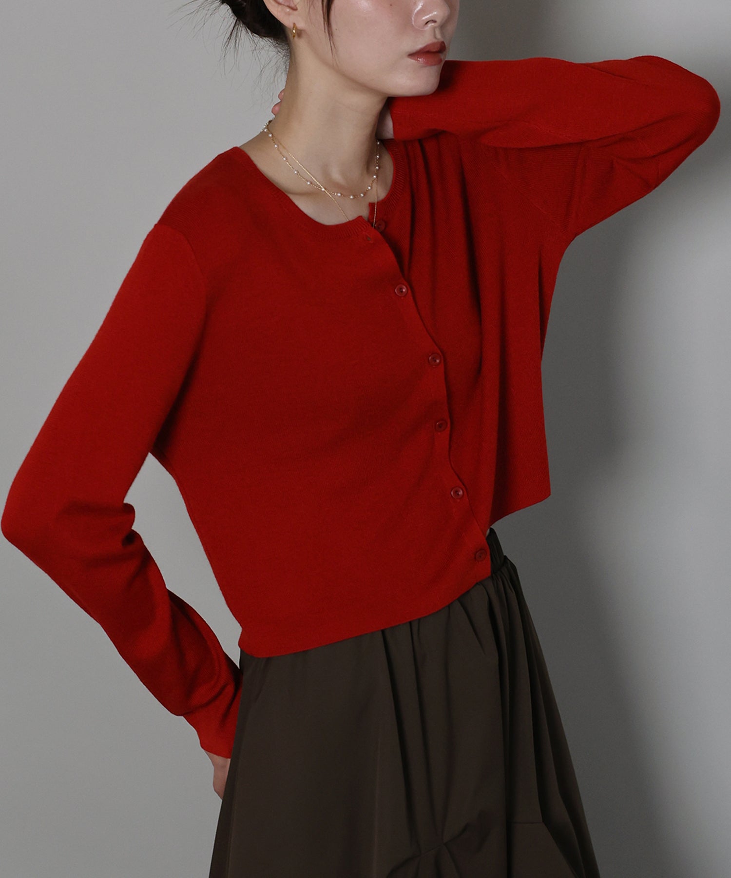 羽織りとしてはもちろん、トップスとしての着こなしもおすすめ。