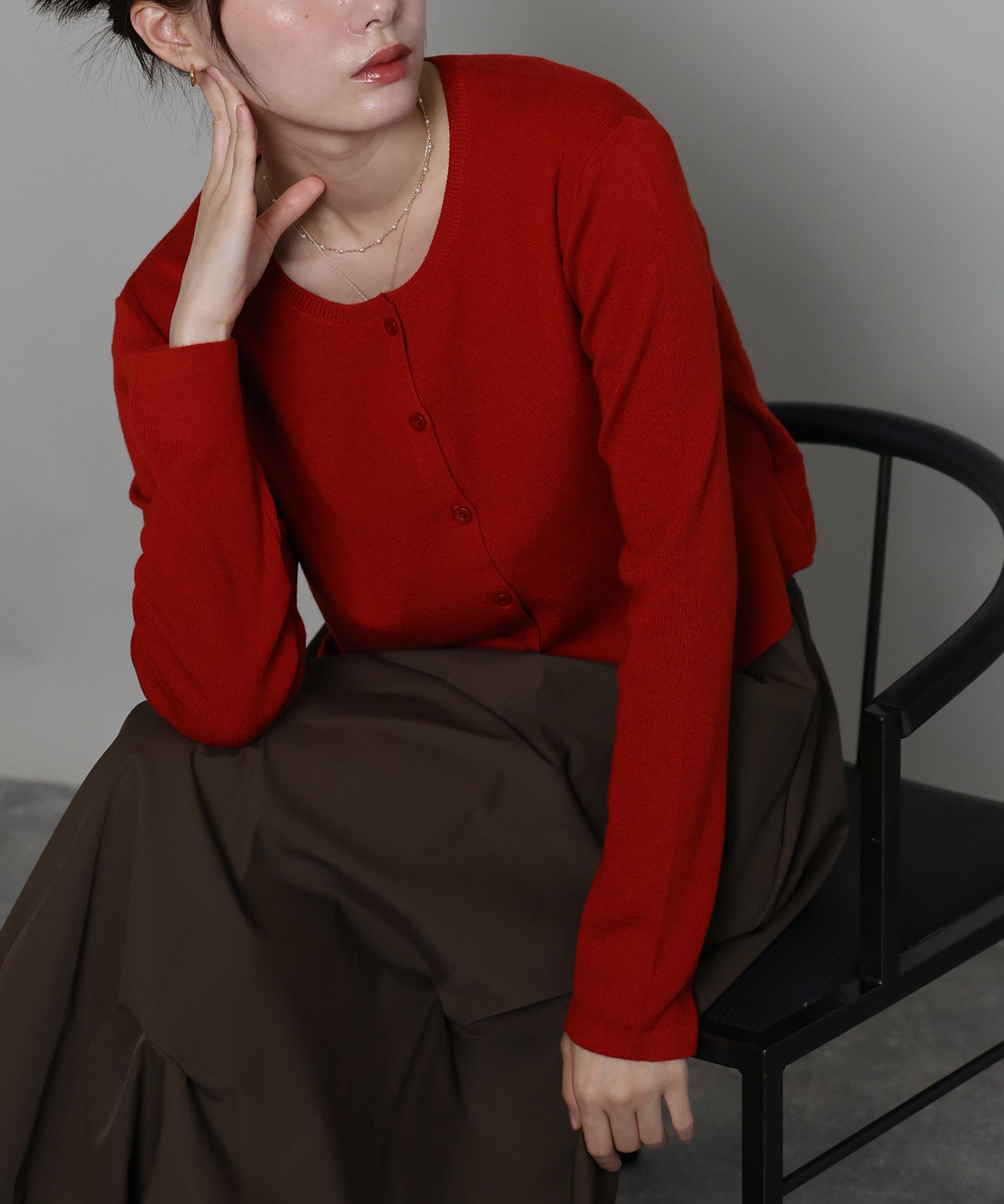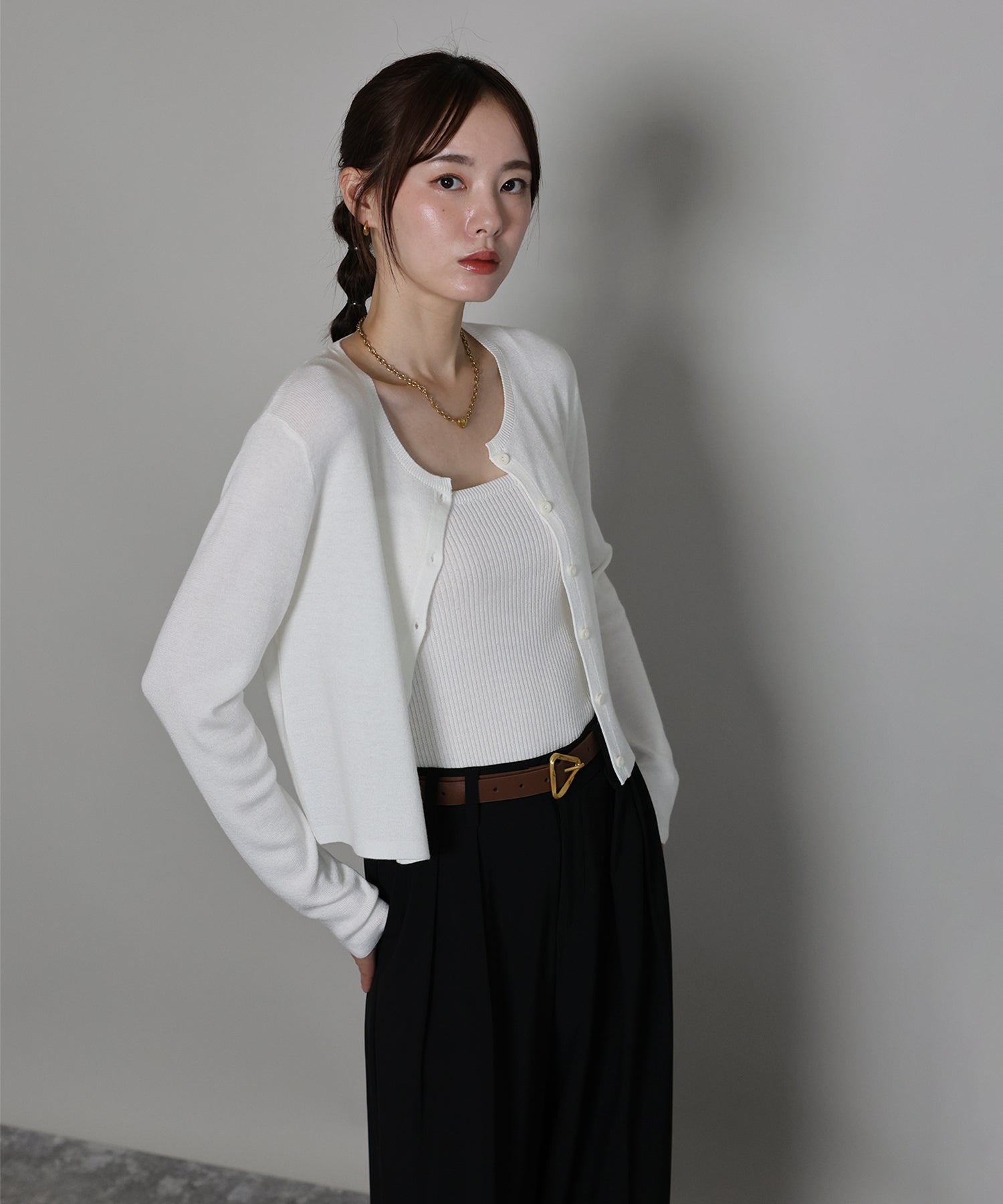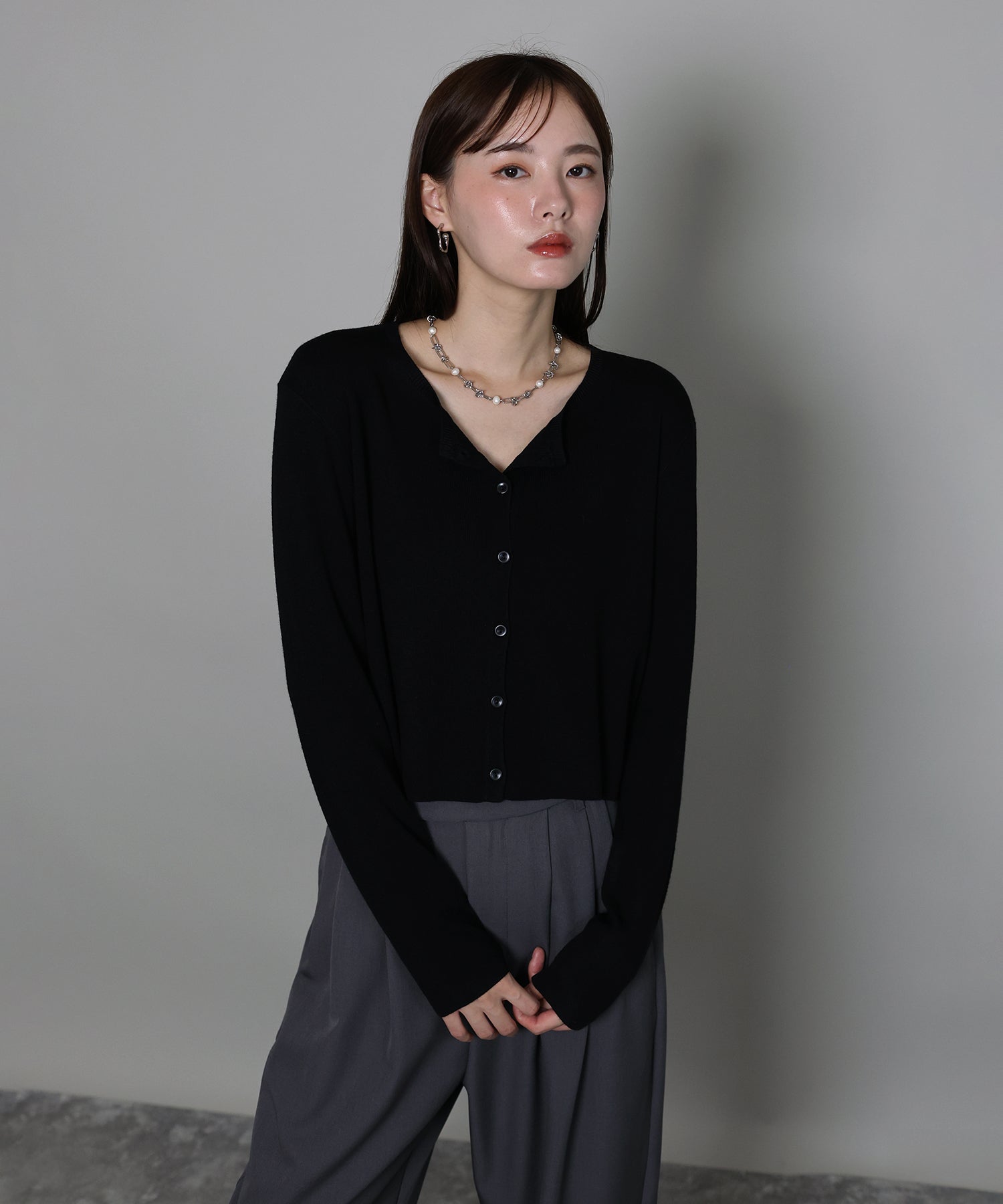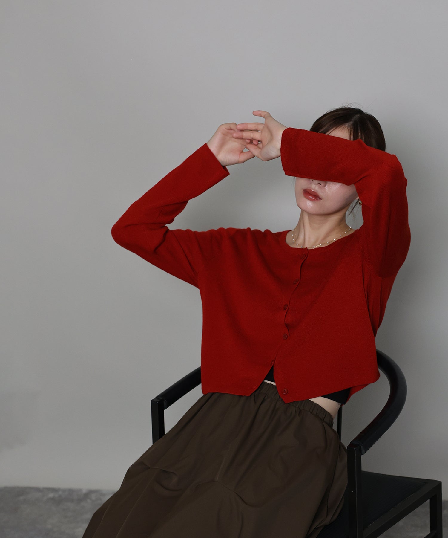 羽織りとしてはもちろん、トップスとしての着こなしもおすすめ。