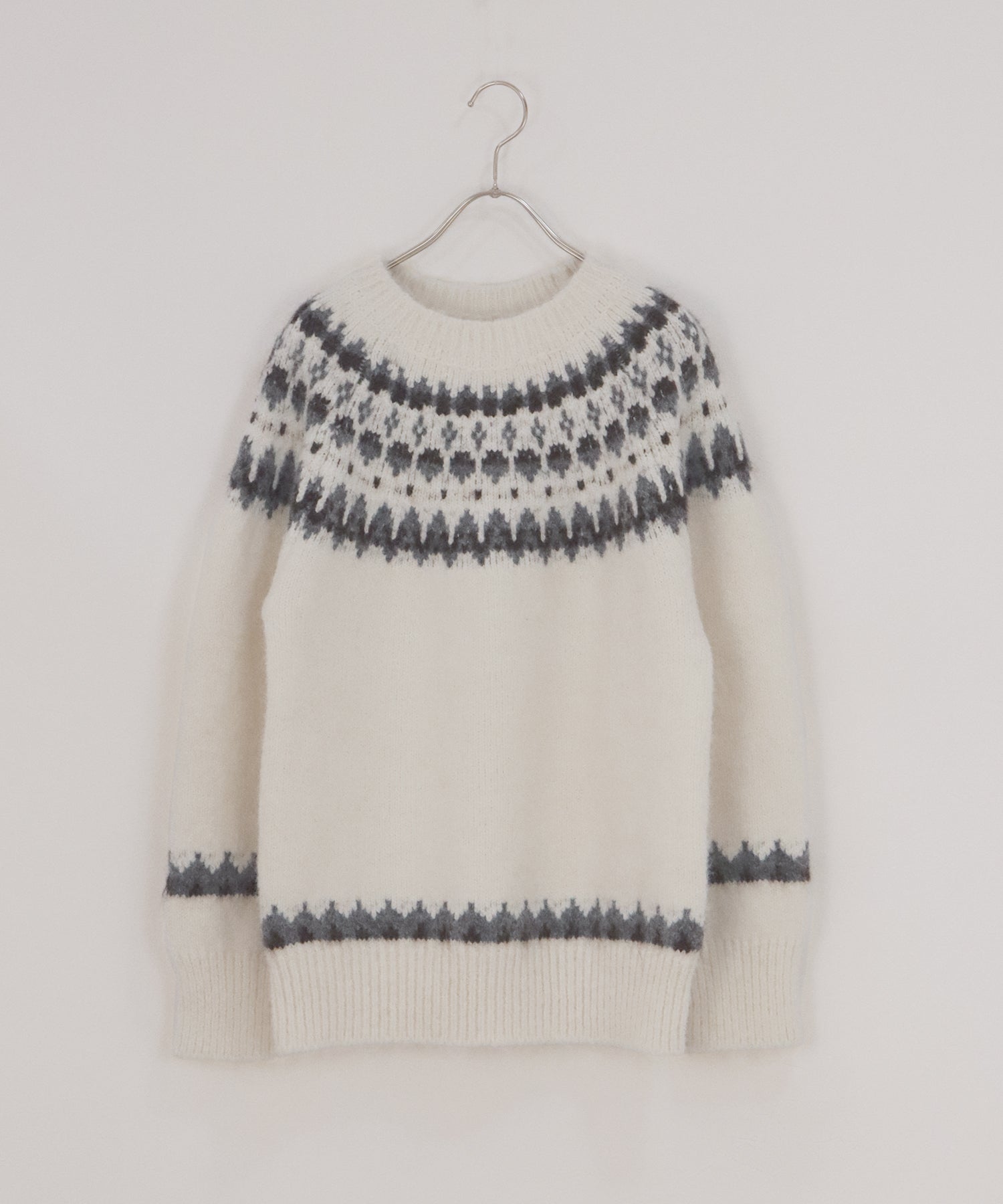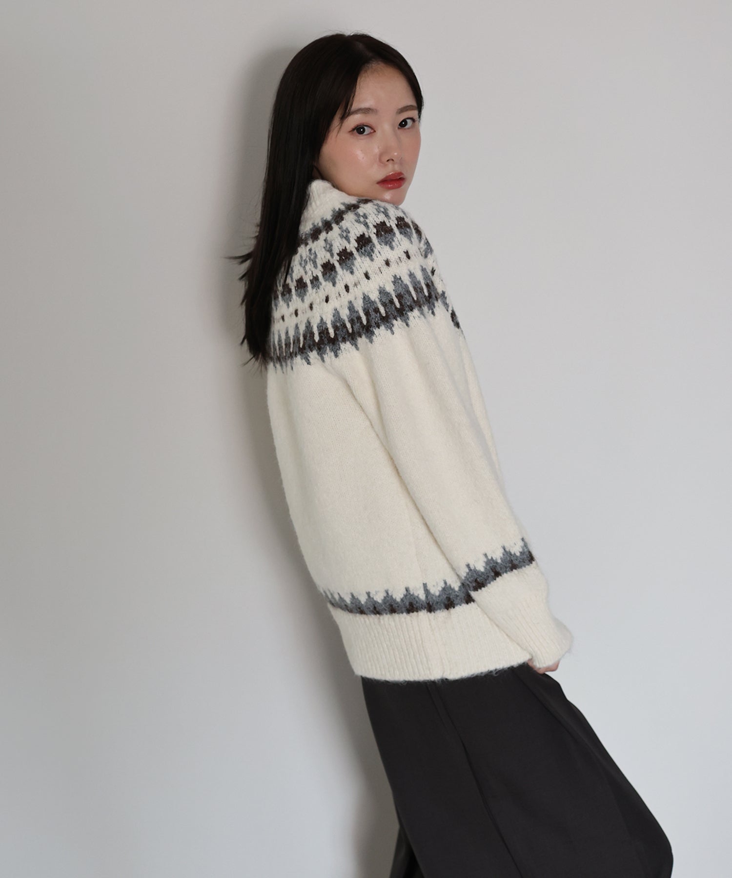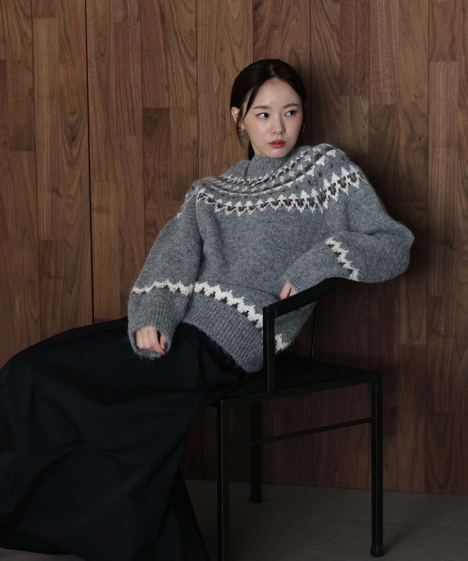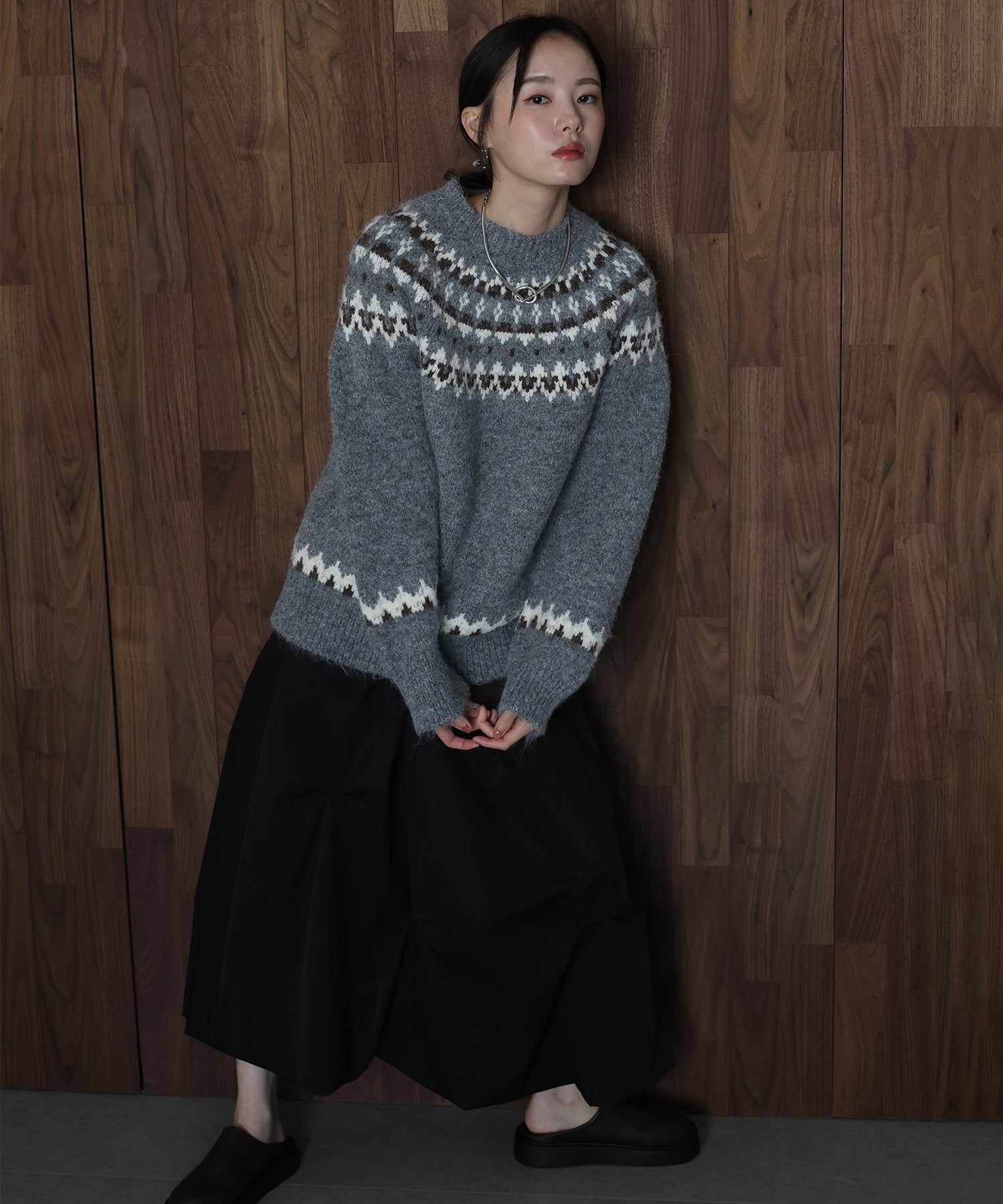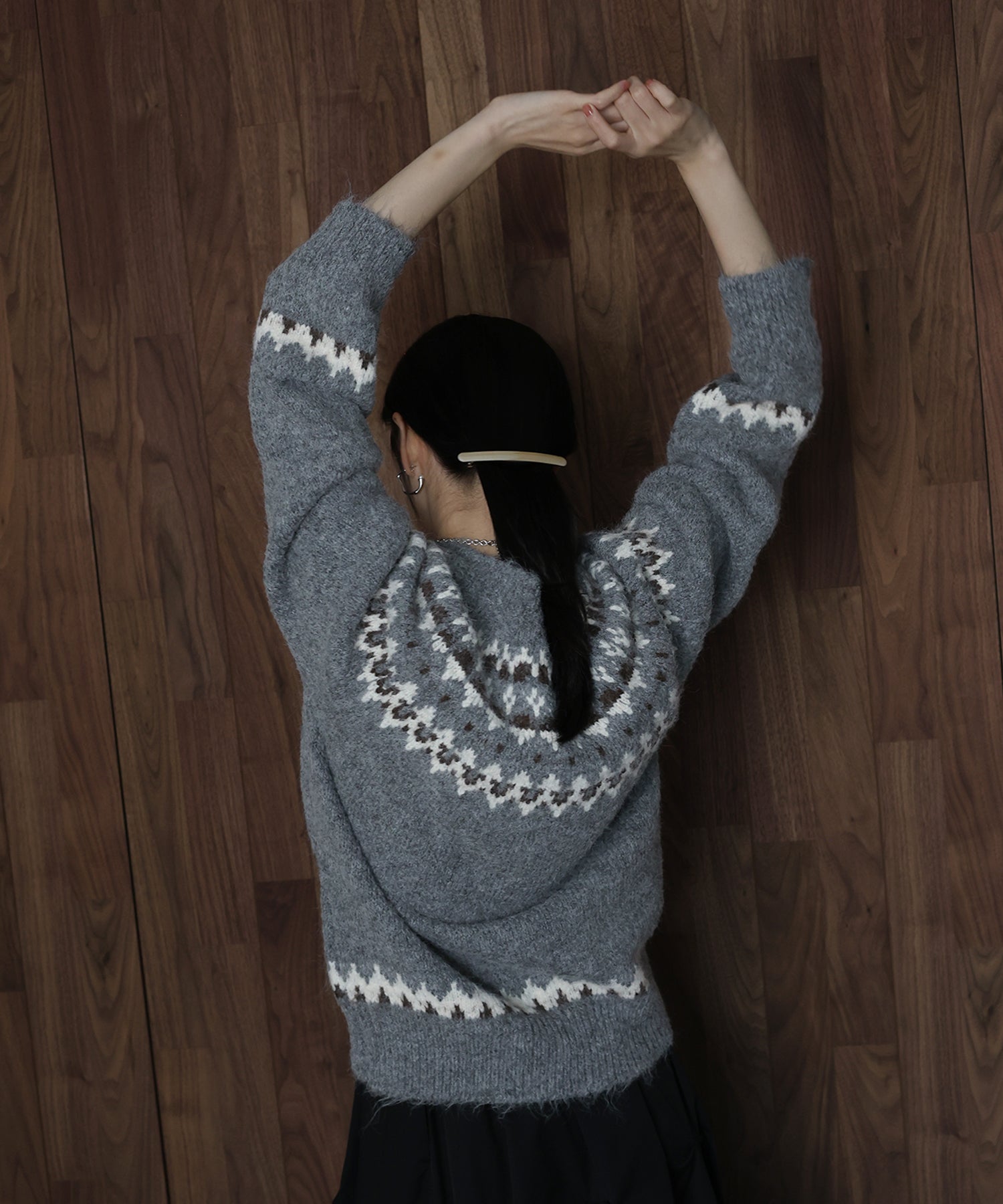 秋冬らしいノルディック調デザインが目を惹く、大人可愛いニットプルオーバー。