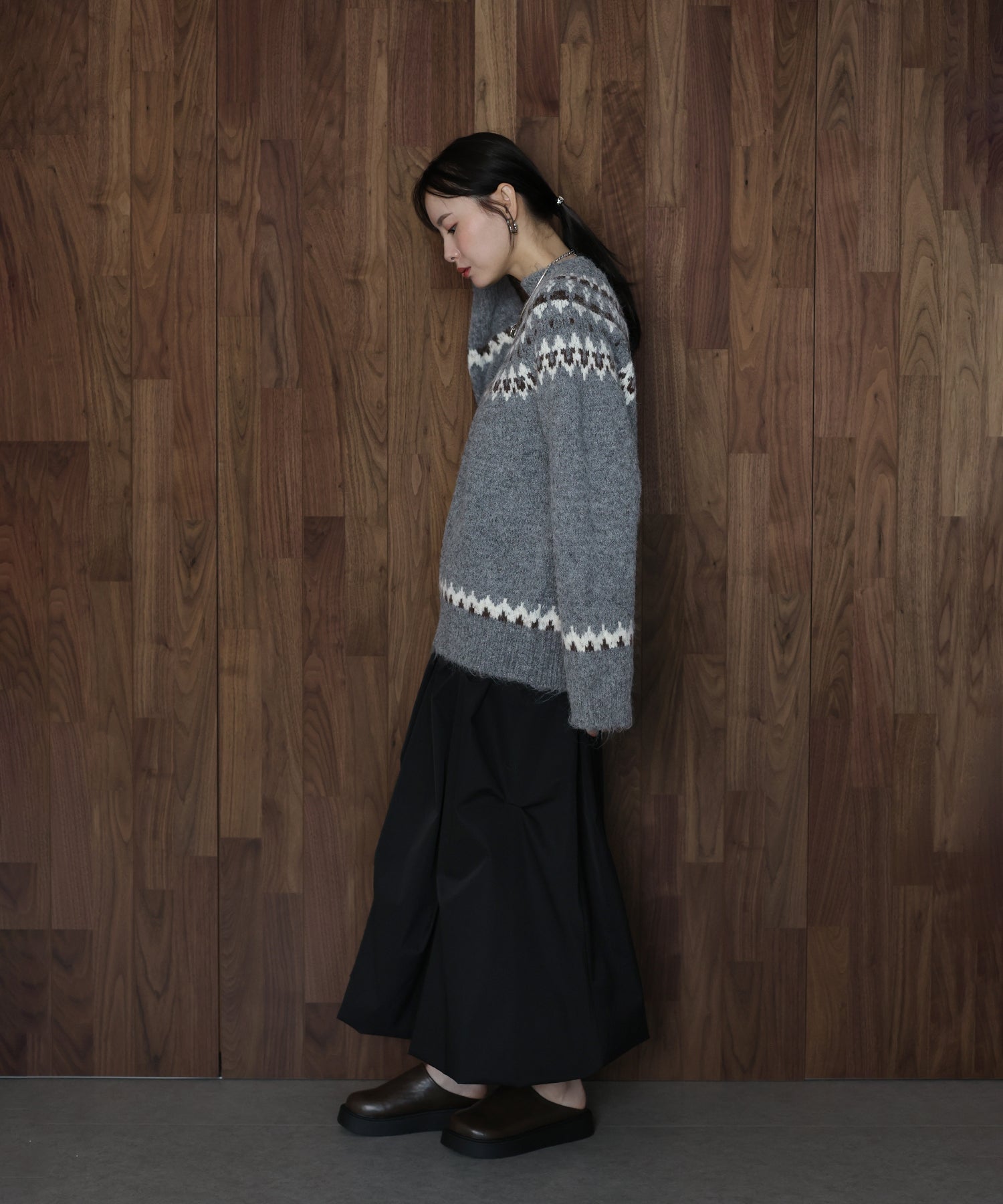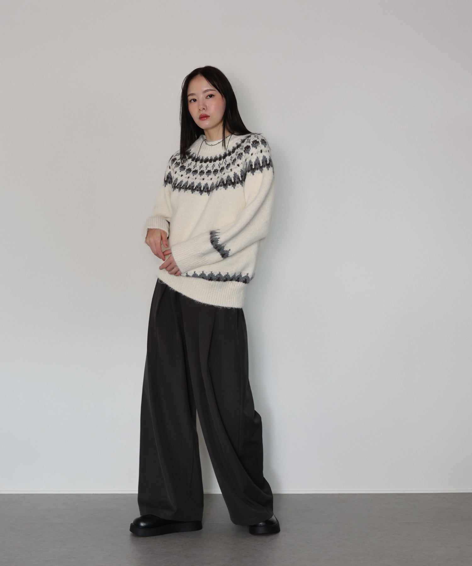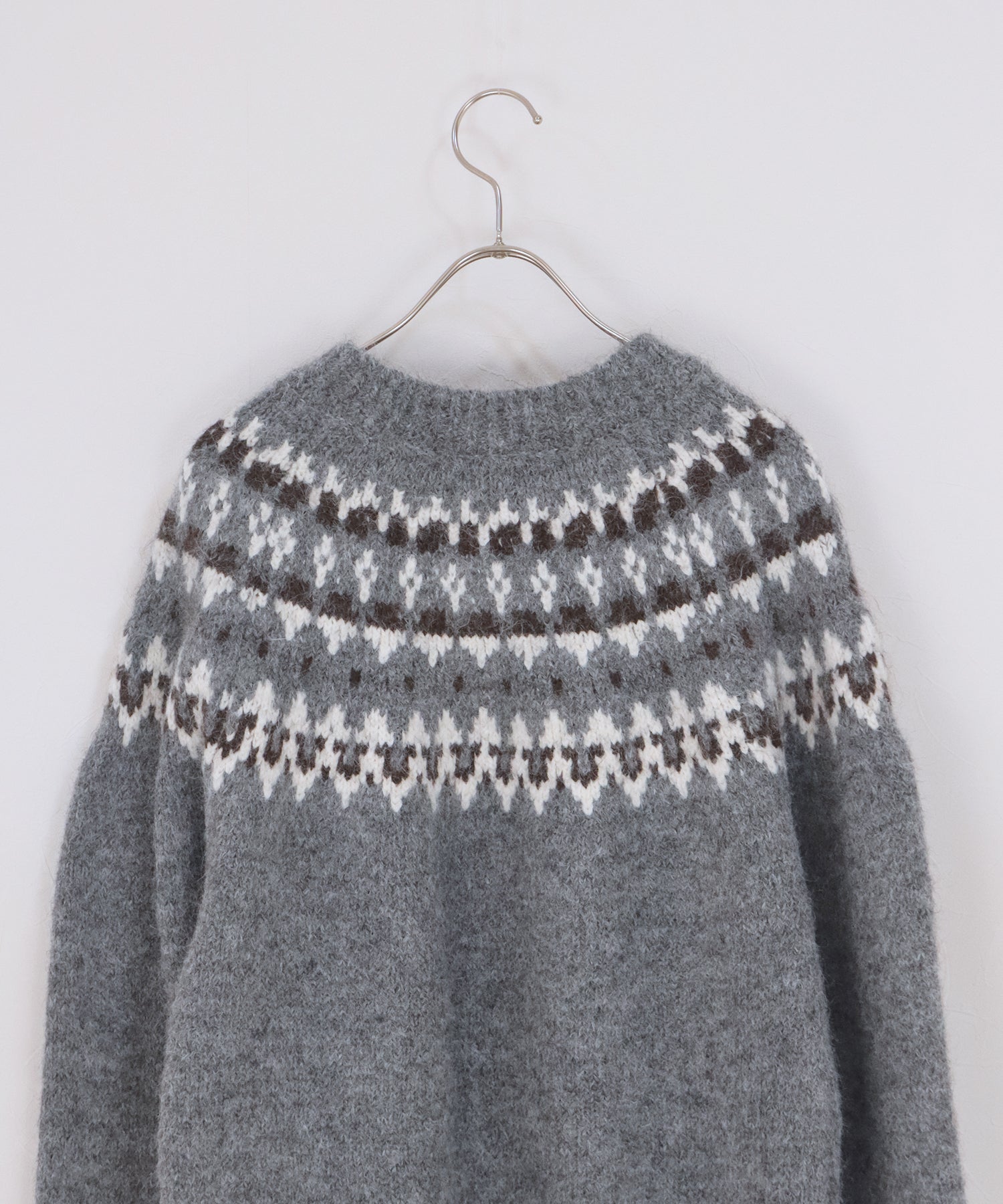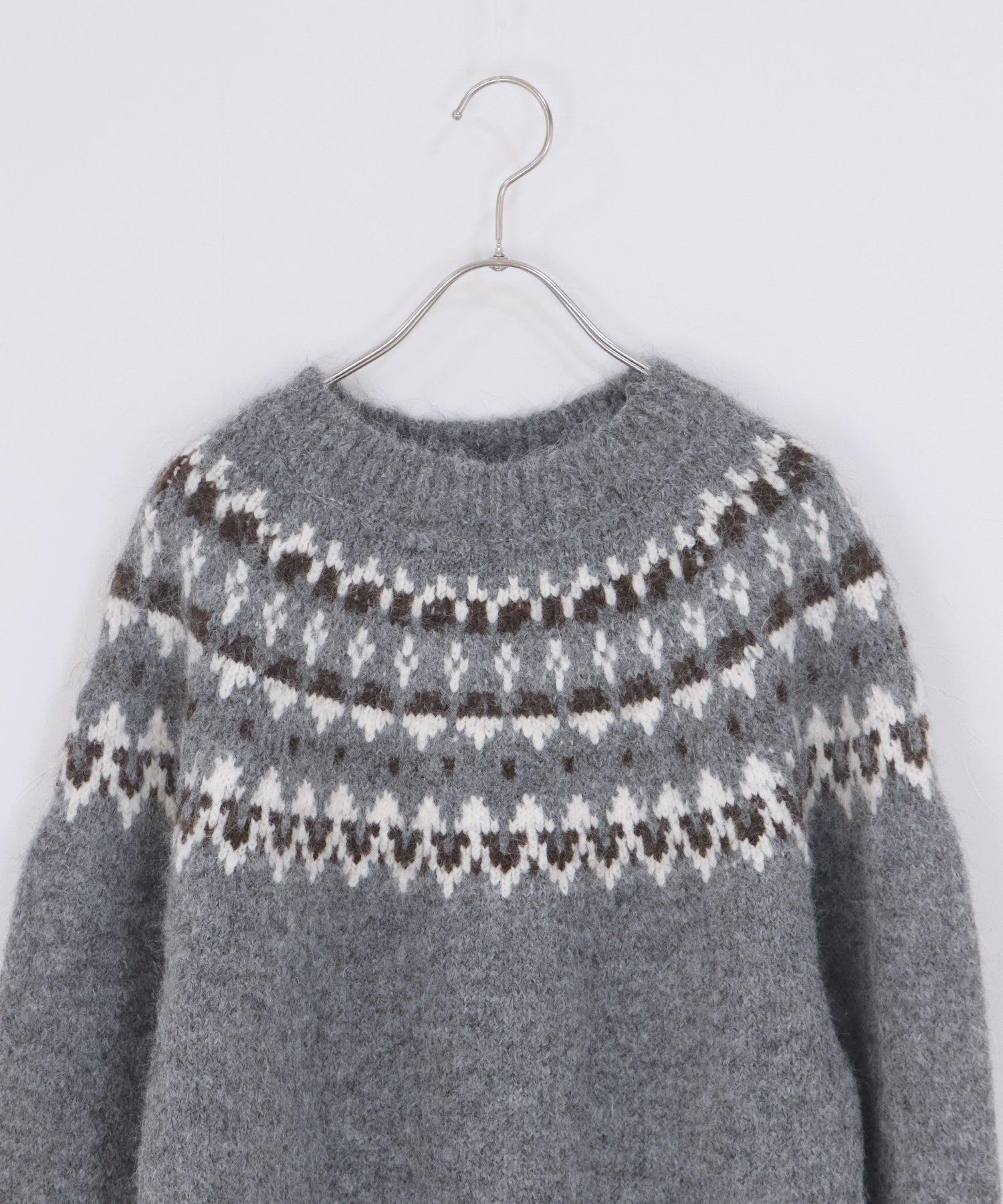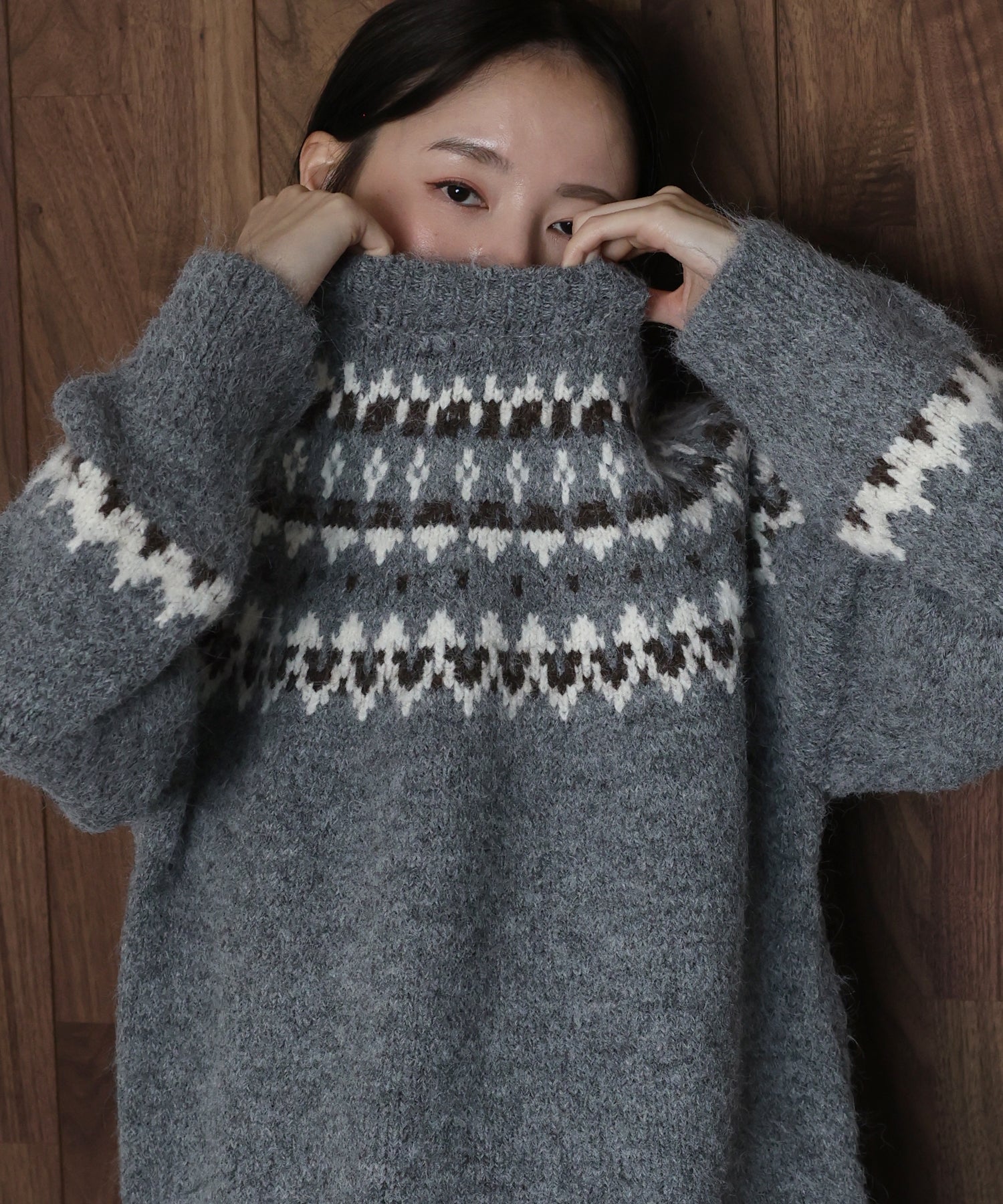 秋冬らしいノルディック調デザインが目を惹く、大人可愛いニットプルオーバー。