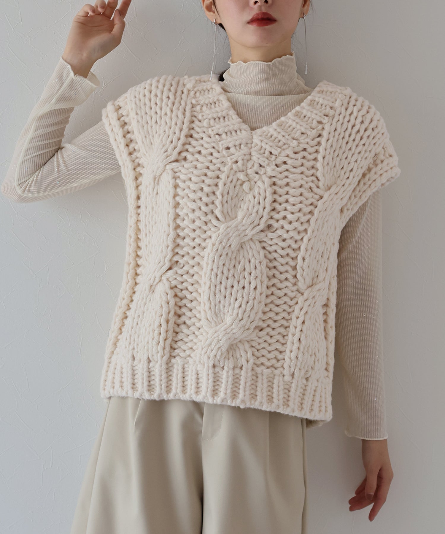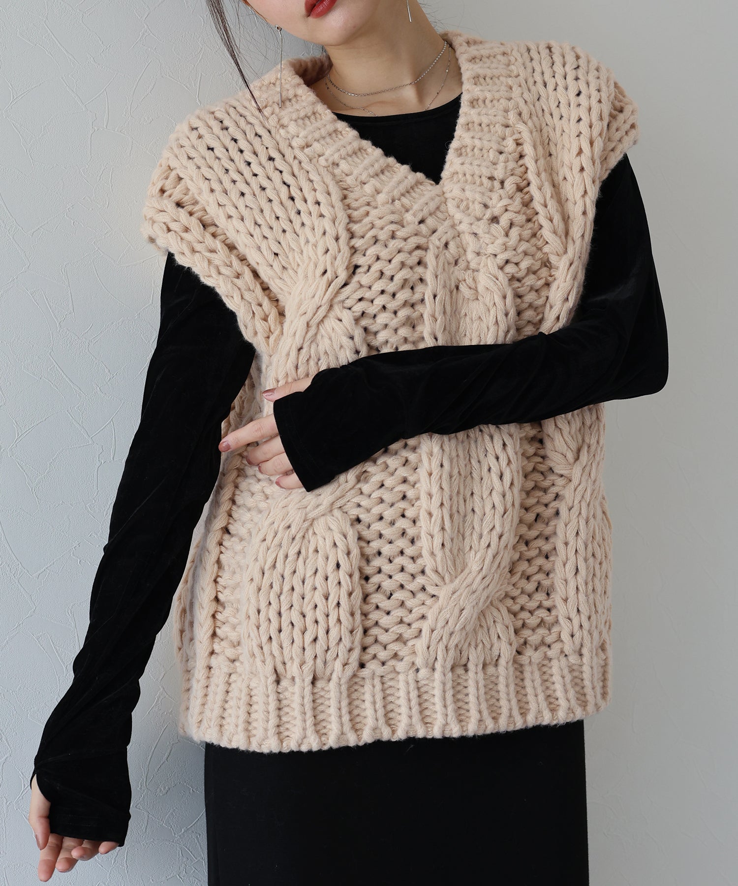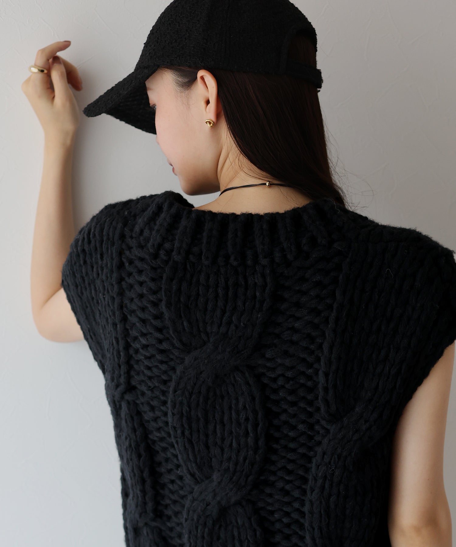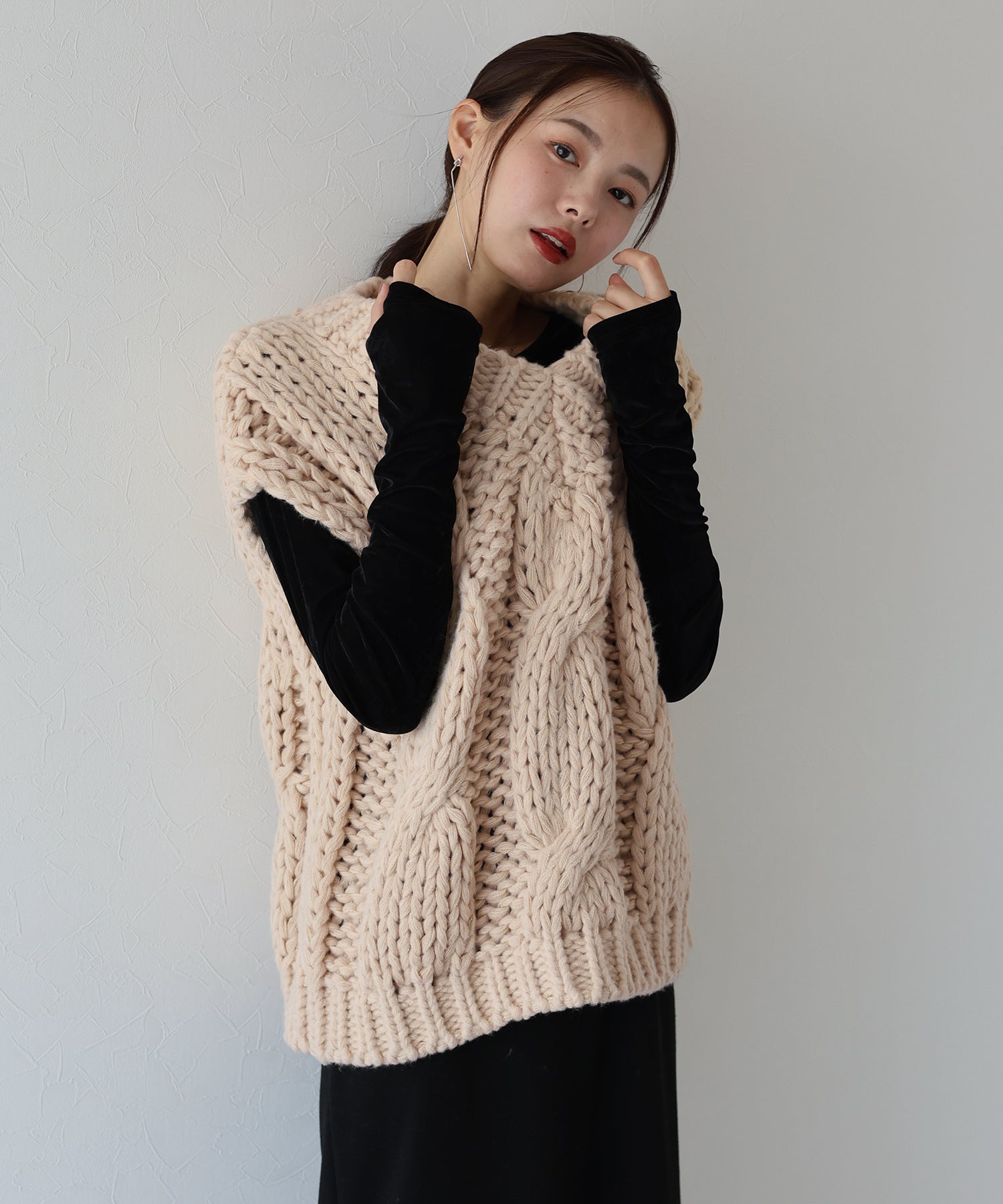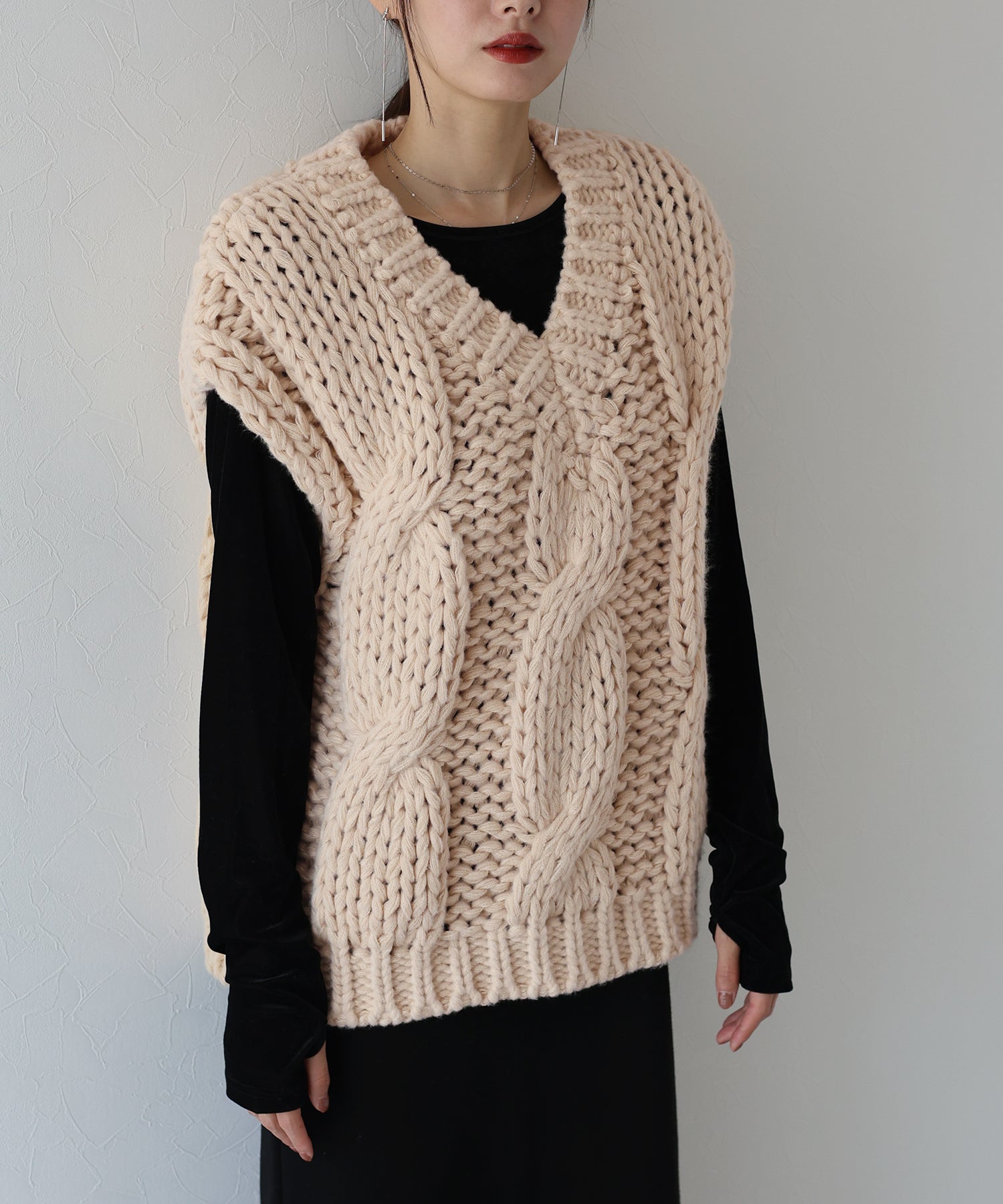 【TIME SALE】ケーブルオーバーニットベスト[J by blue]