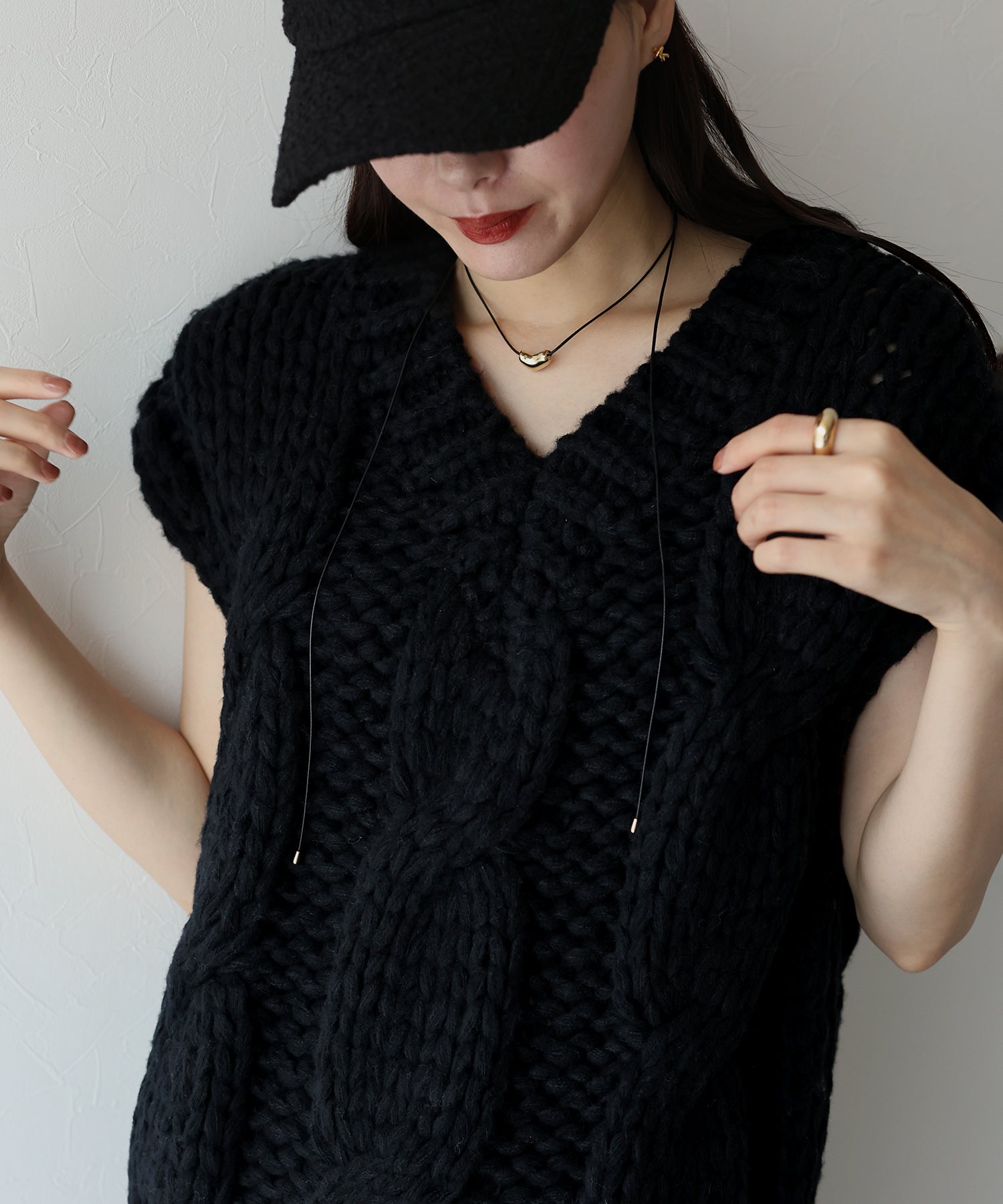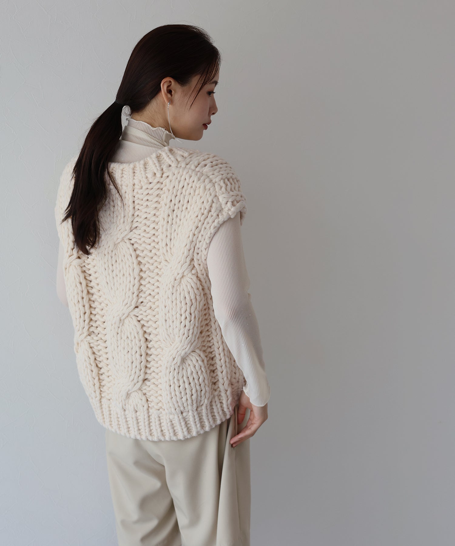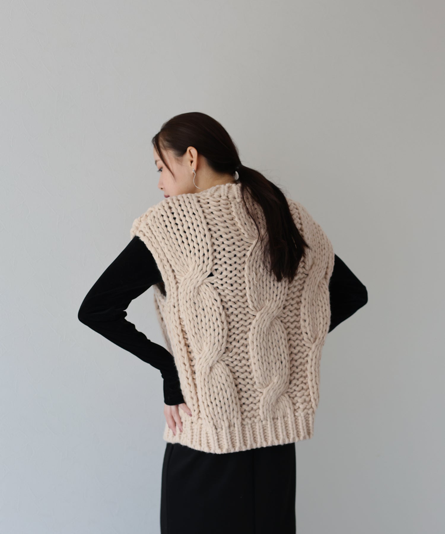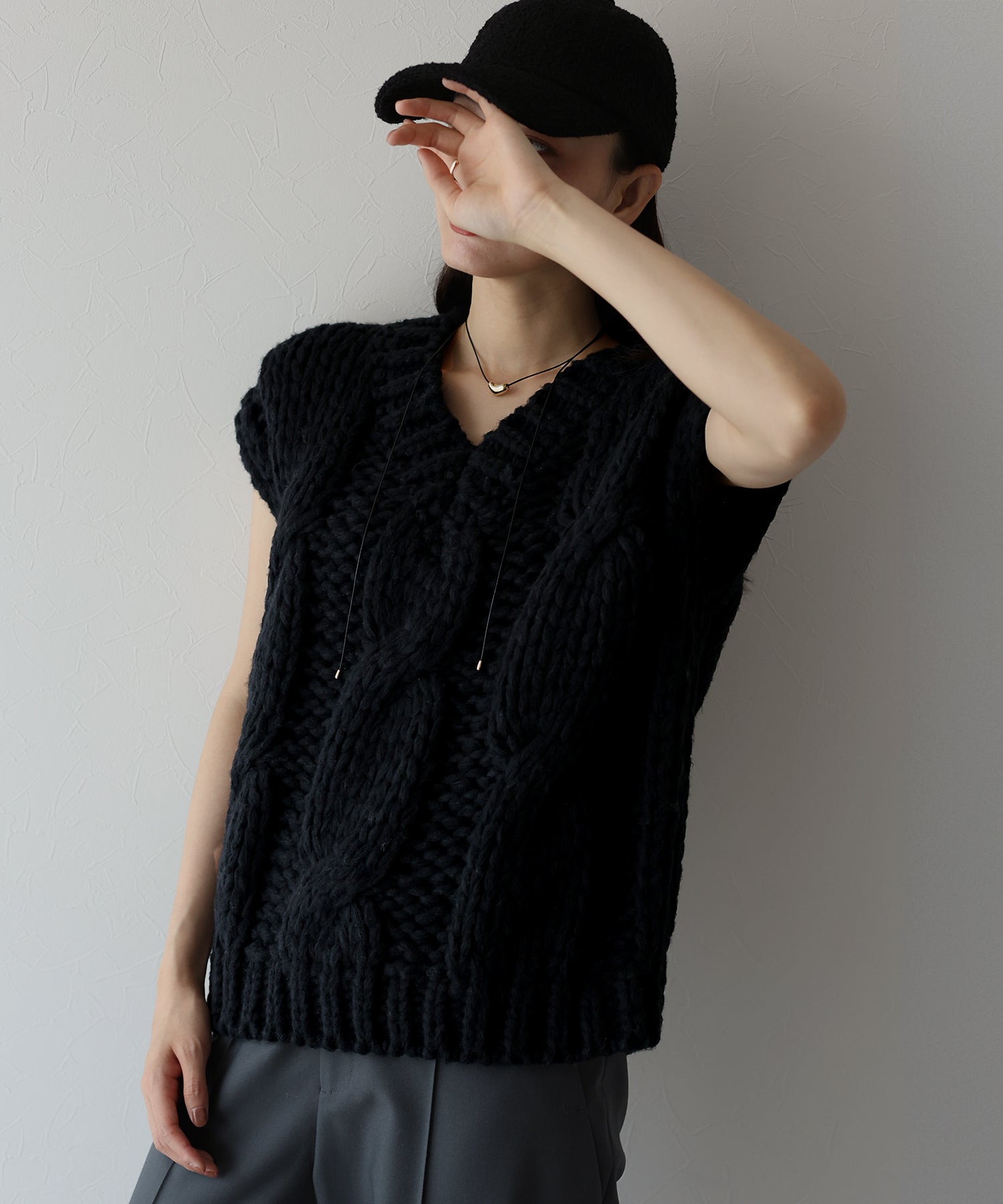 【TIME SALE】ケーブルオーバーニットベスト[J by blue]