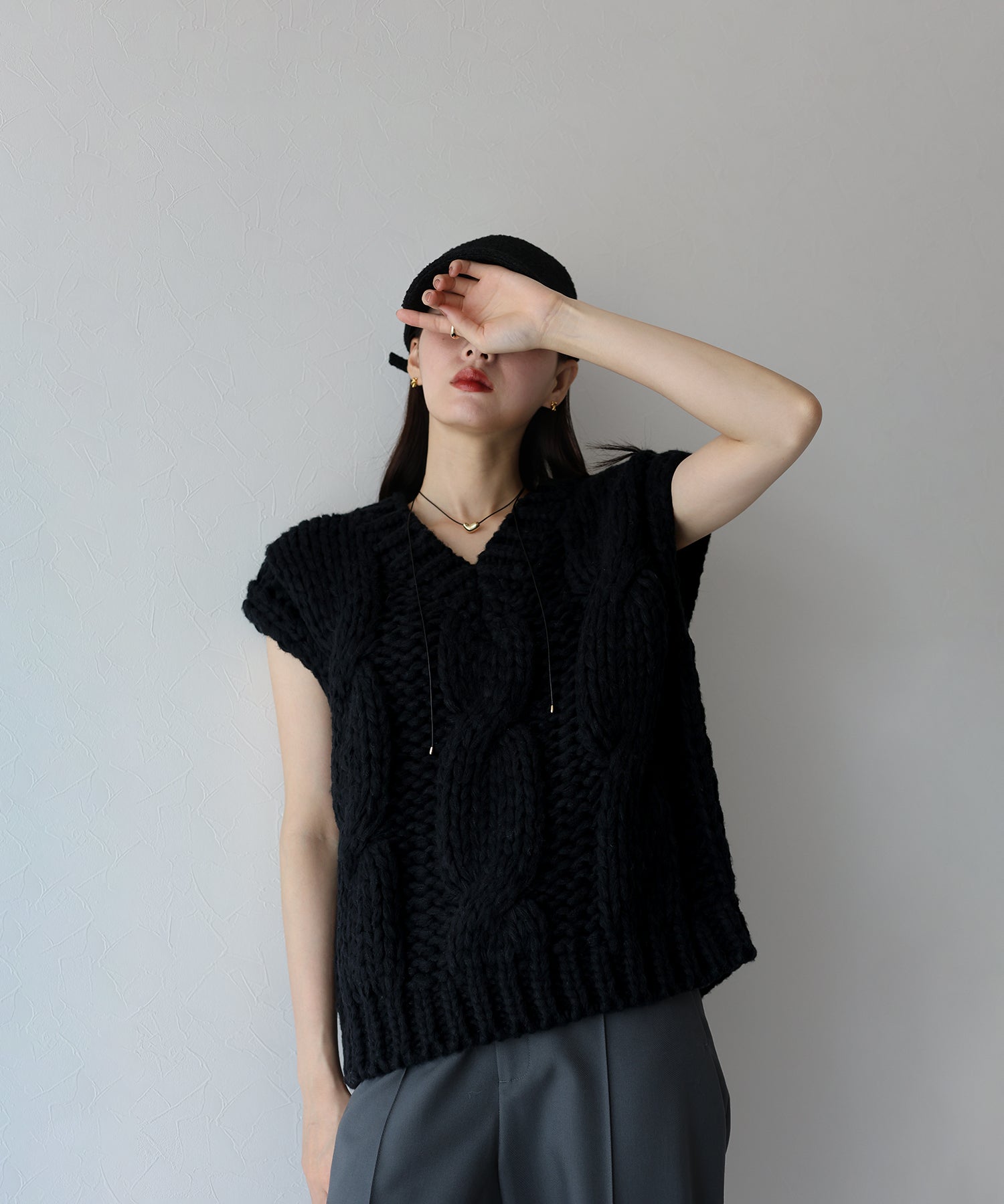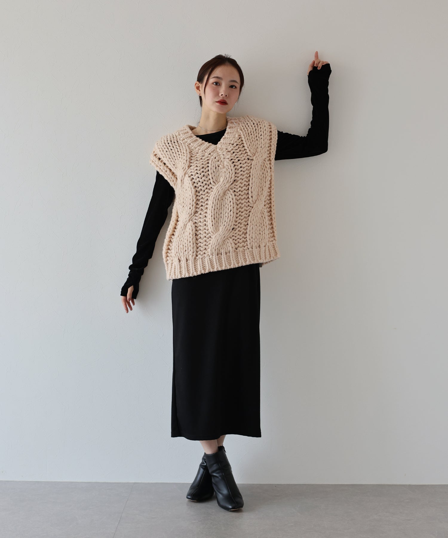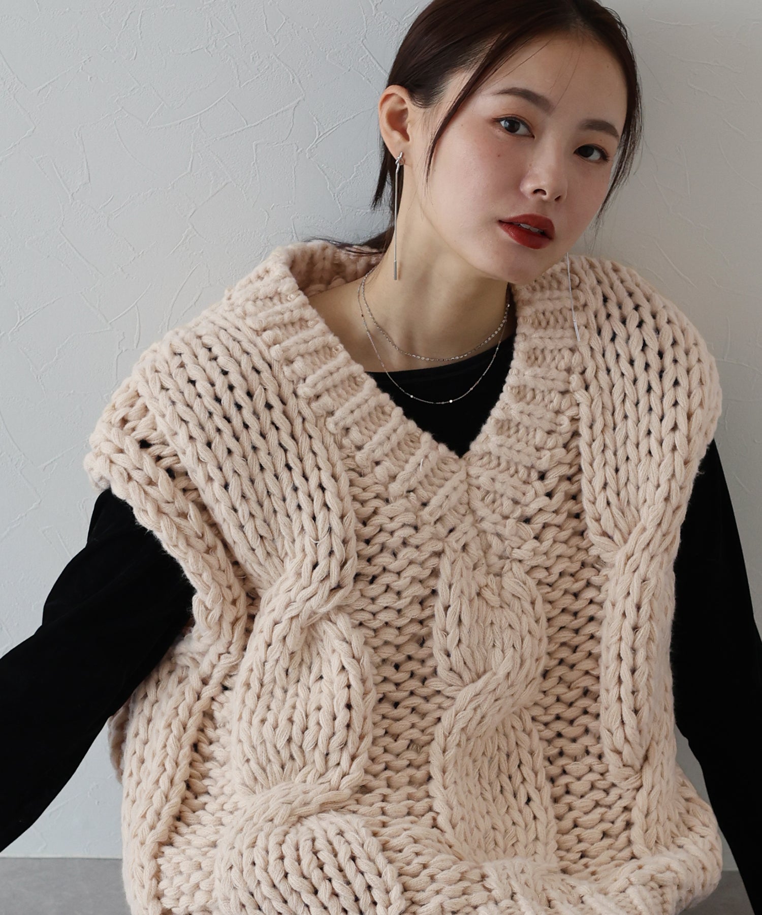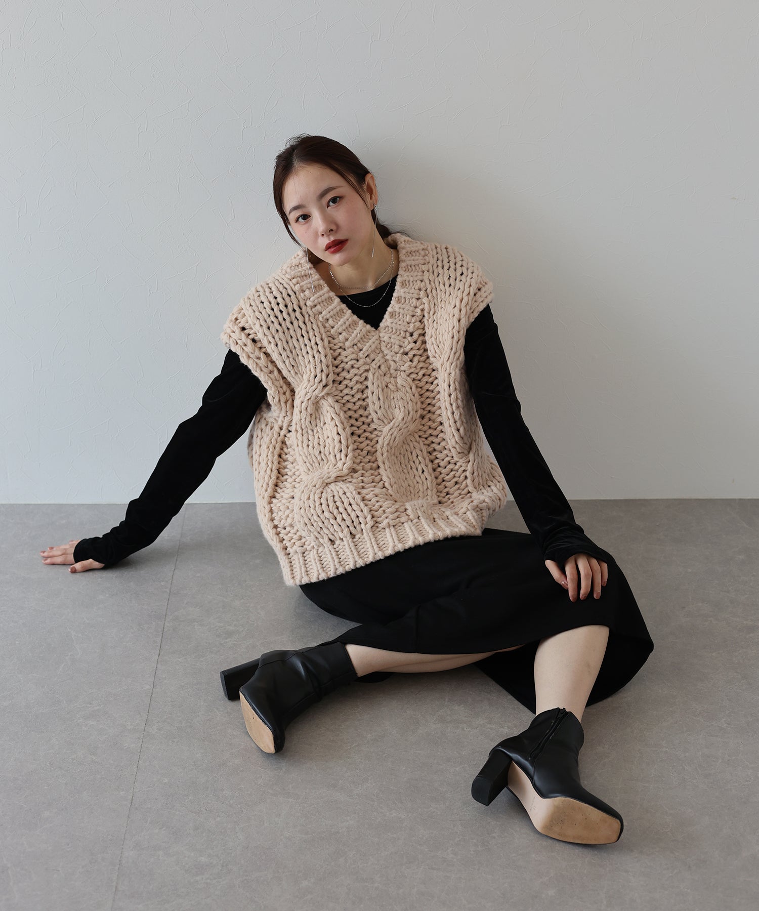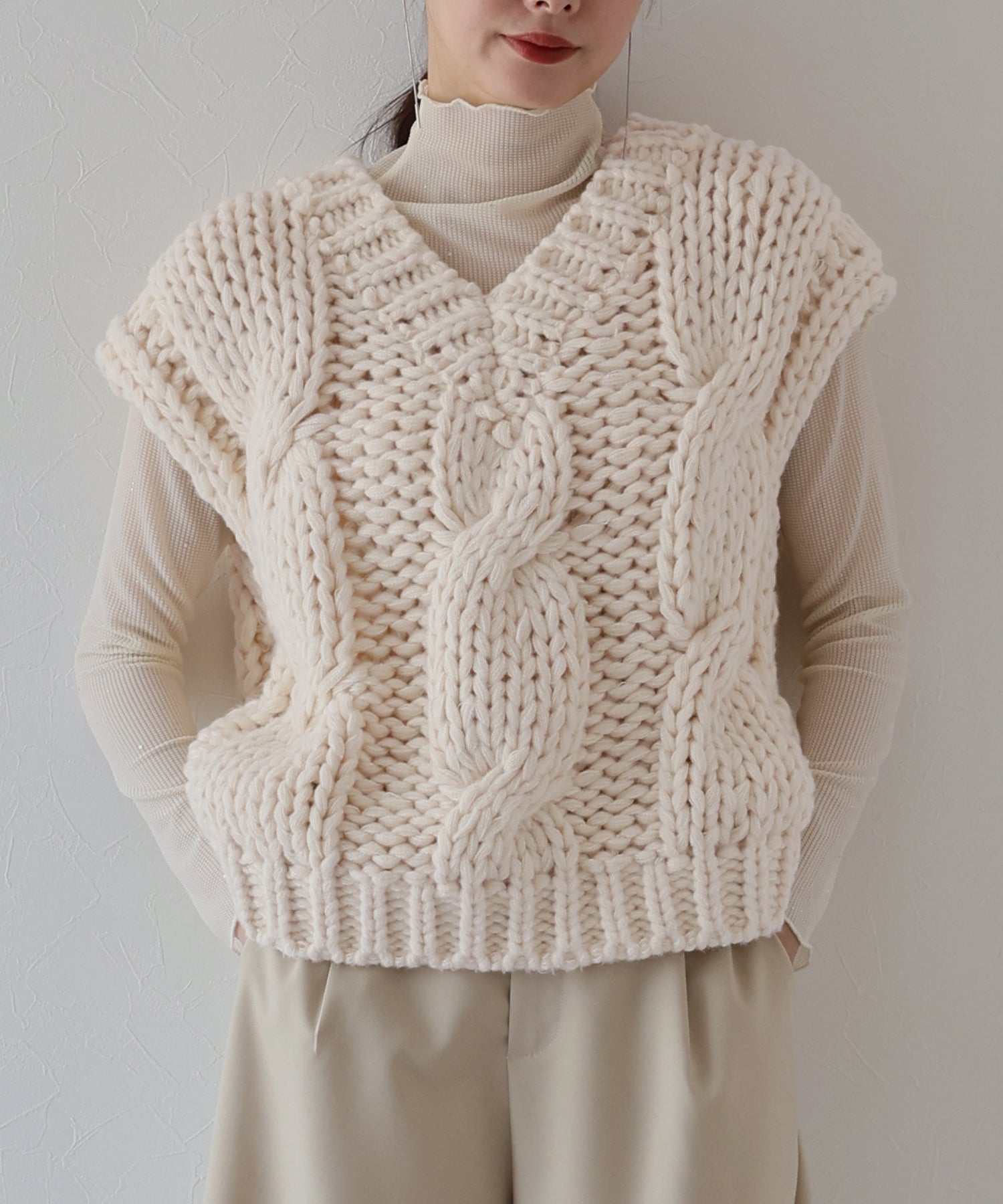 【TIME SALE】ケーブルオーバーニットベスト[J by blue]