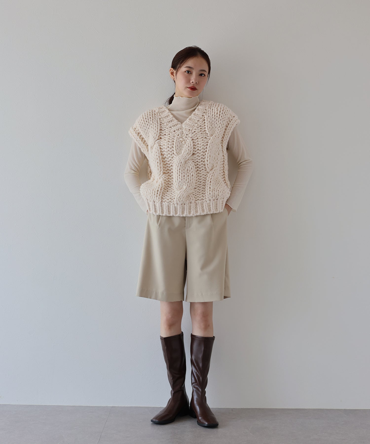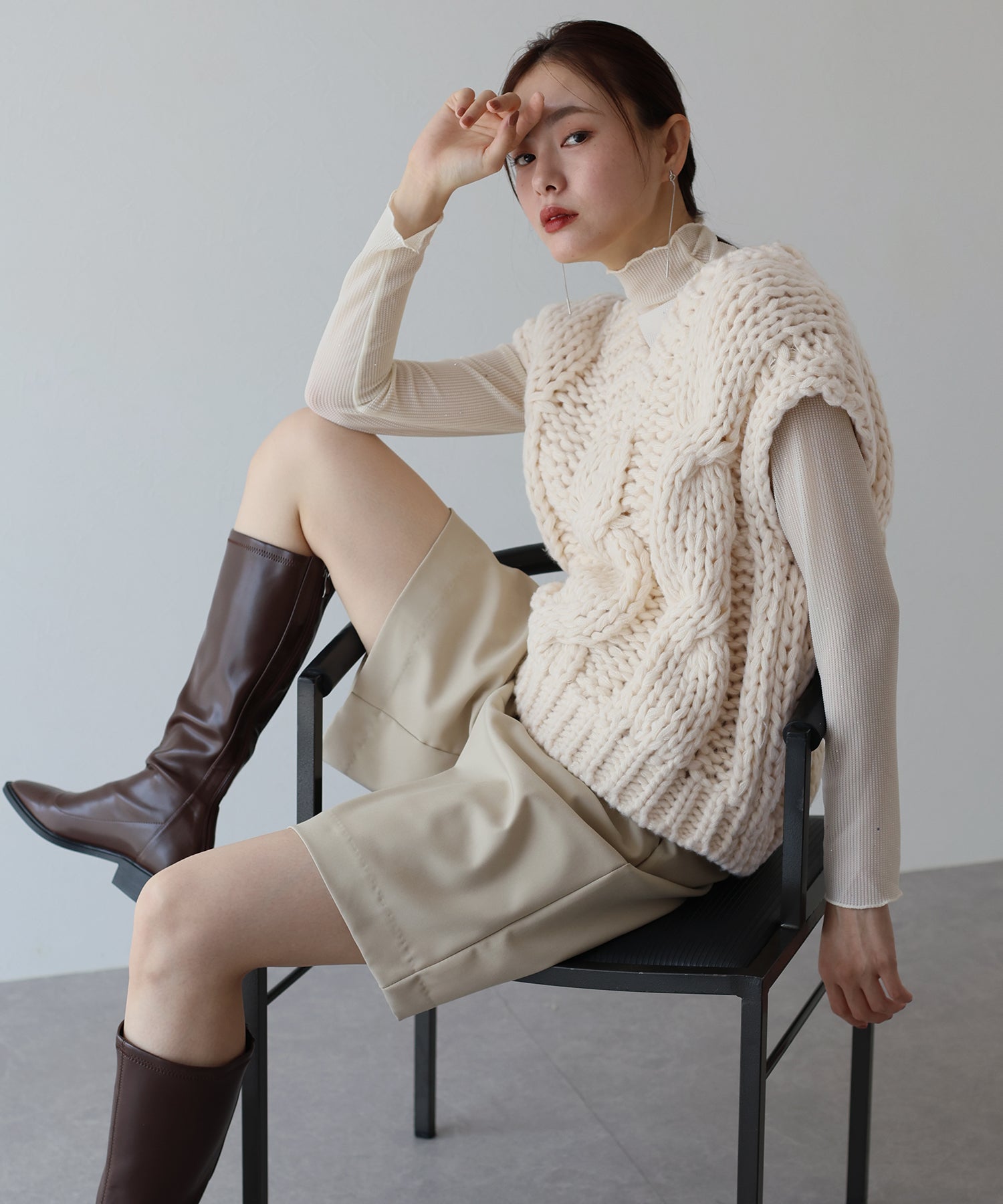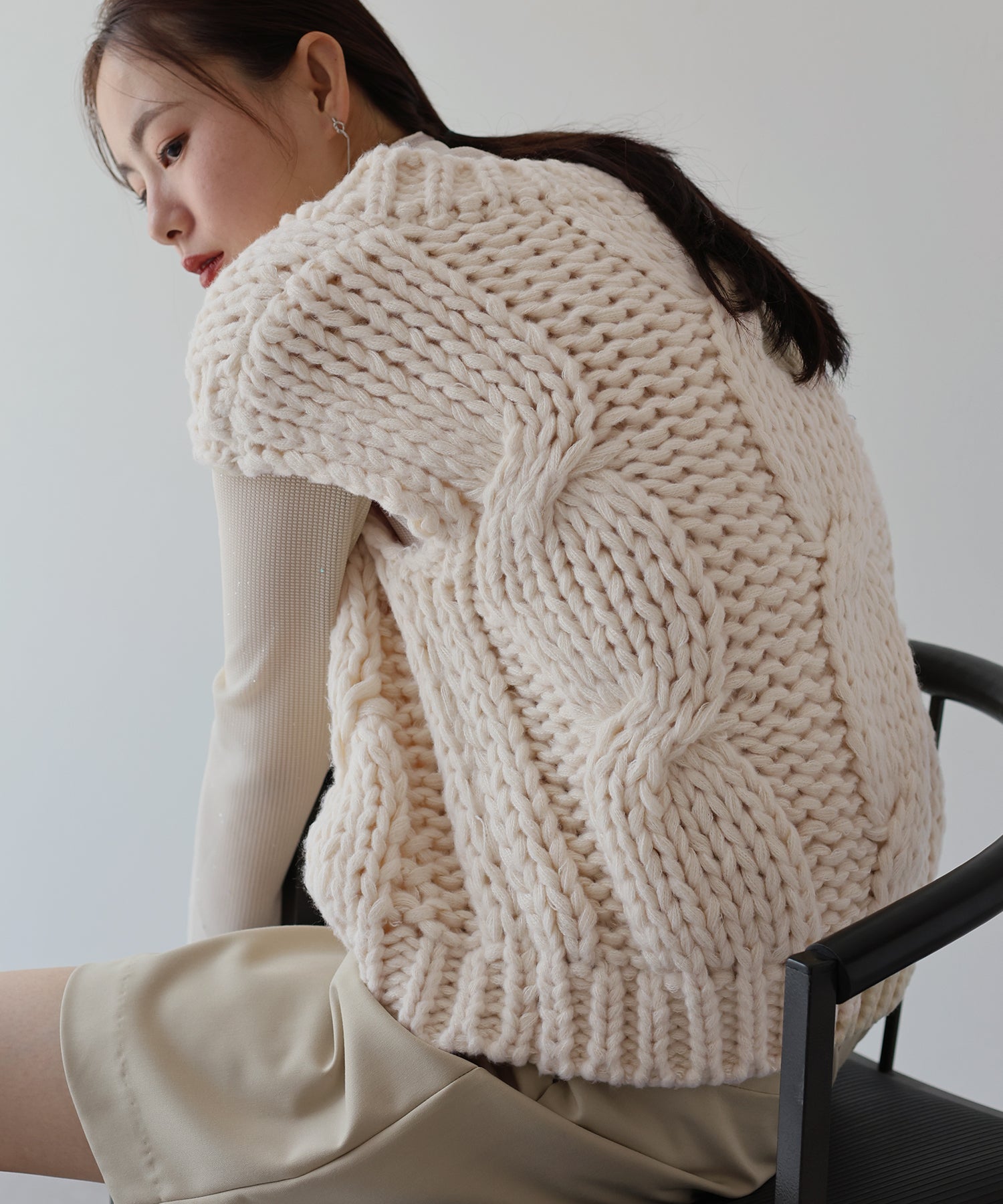 いつものコーデに取り入れるだけで、ざっくりとした立体感のあるケーブル編みが季節感を演出し、