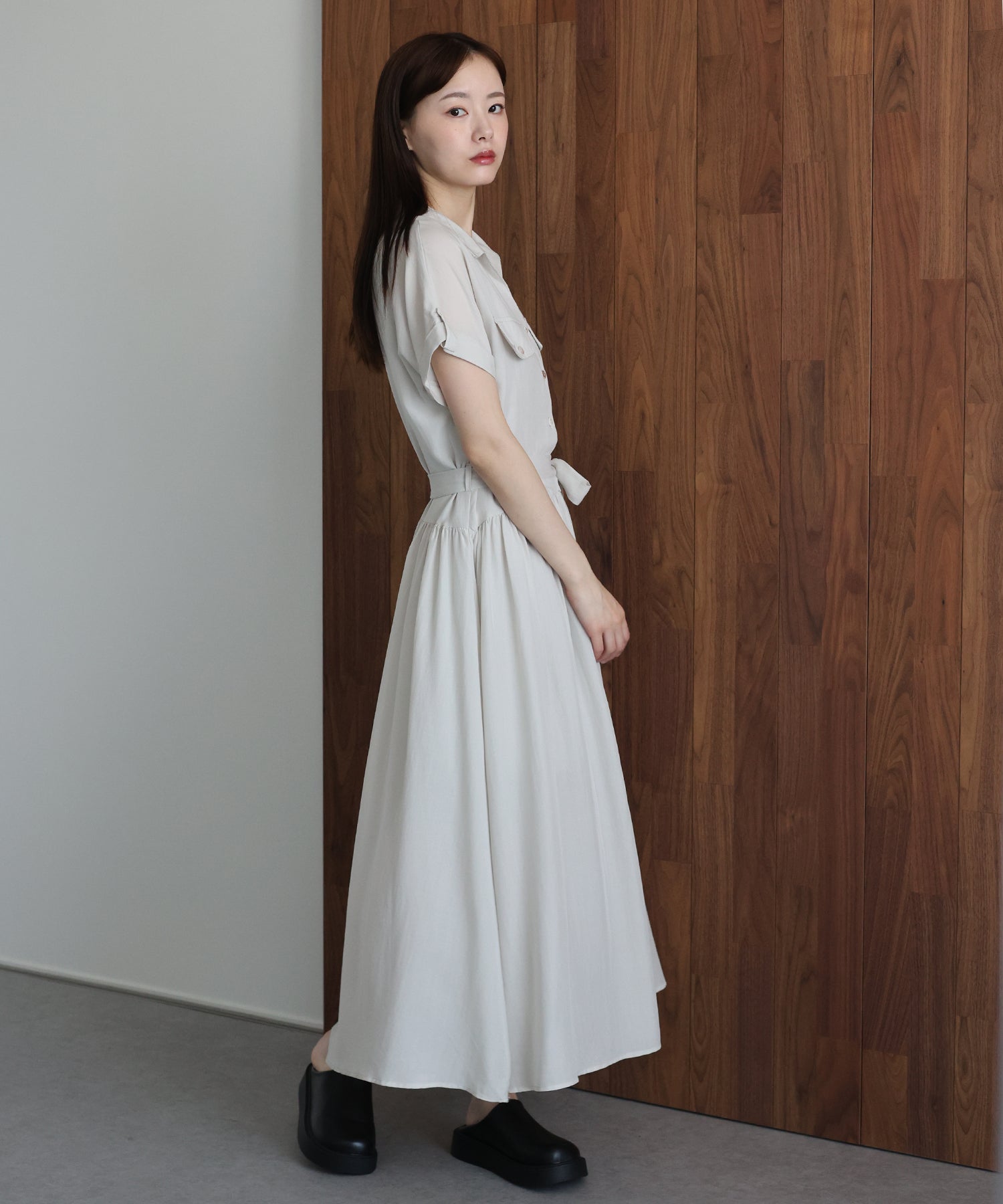 凛とした清涼感。シルエットを自在に操る、リネンライクスキッパーワンピース