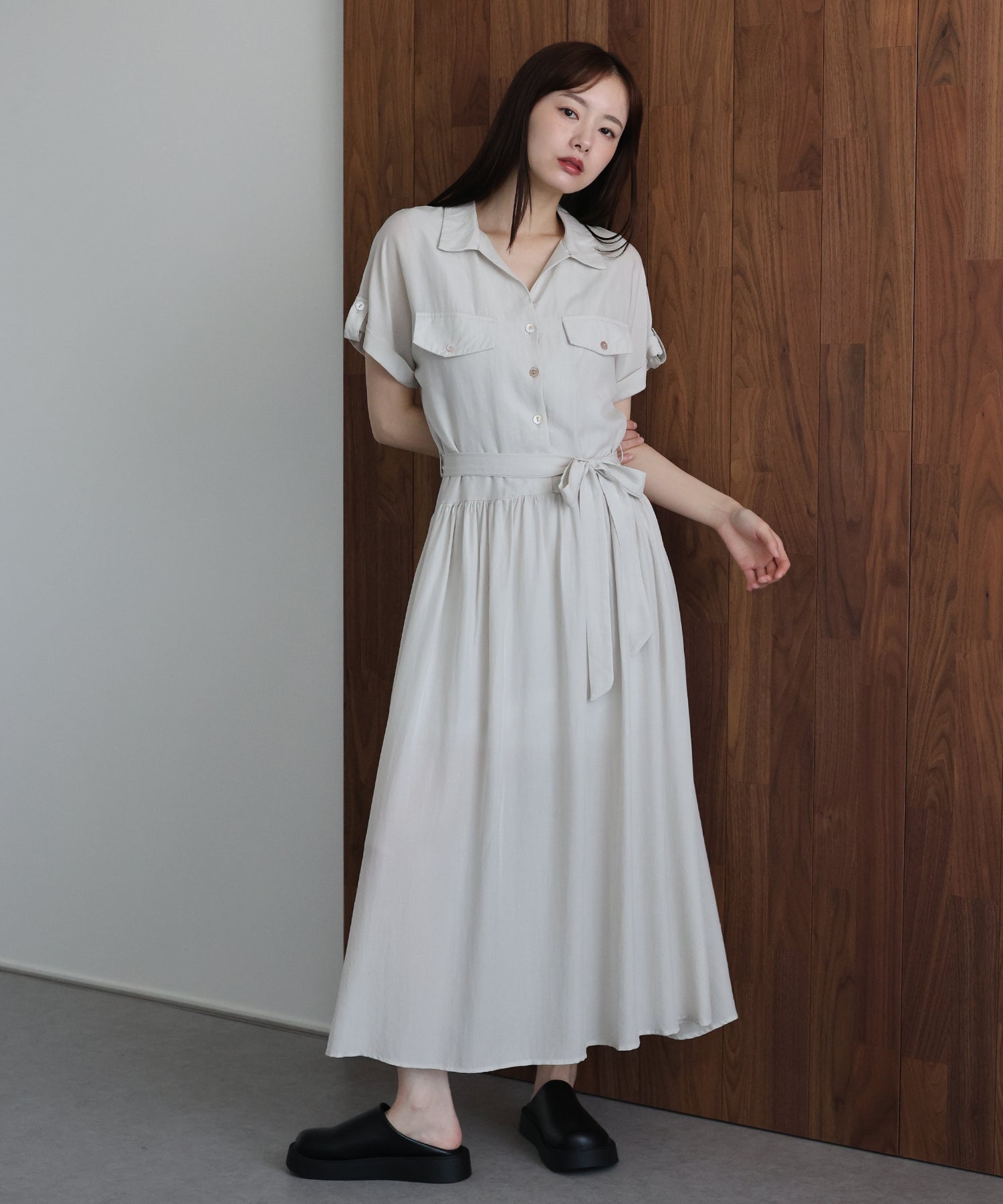 【早割5%OFF】スキッパーネックシャツワンピース