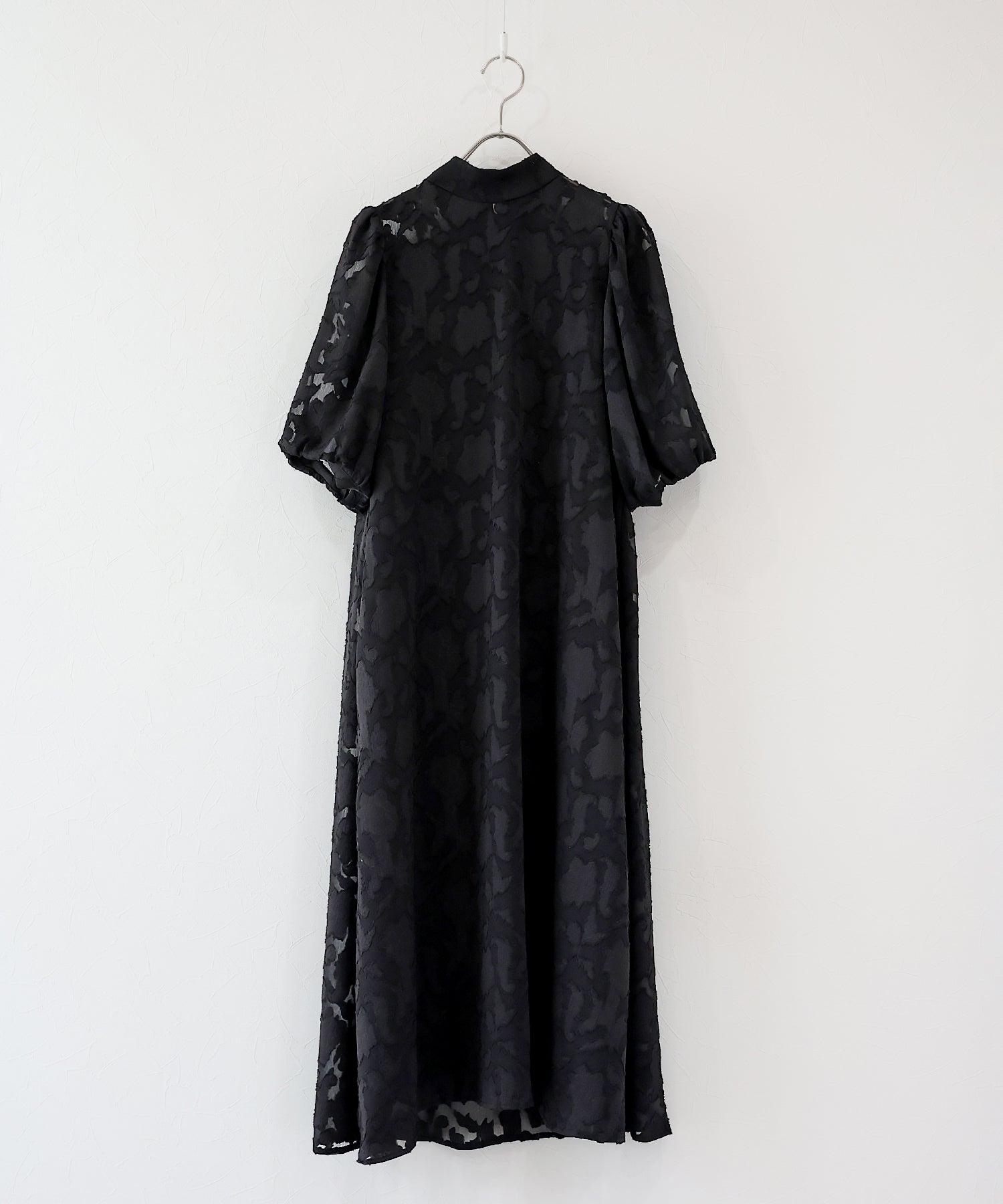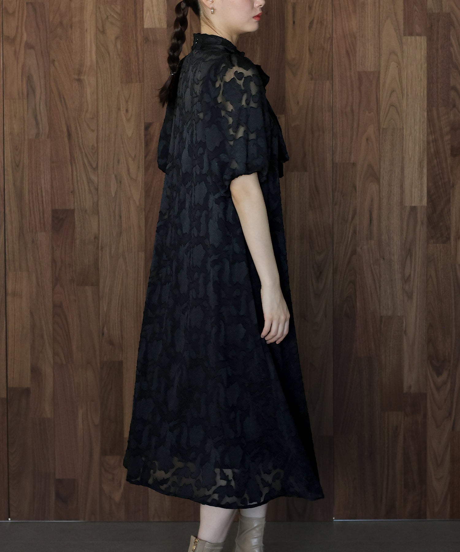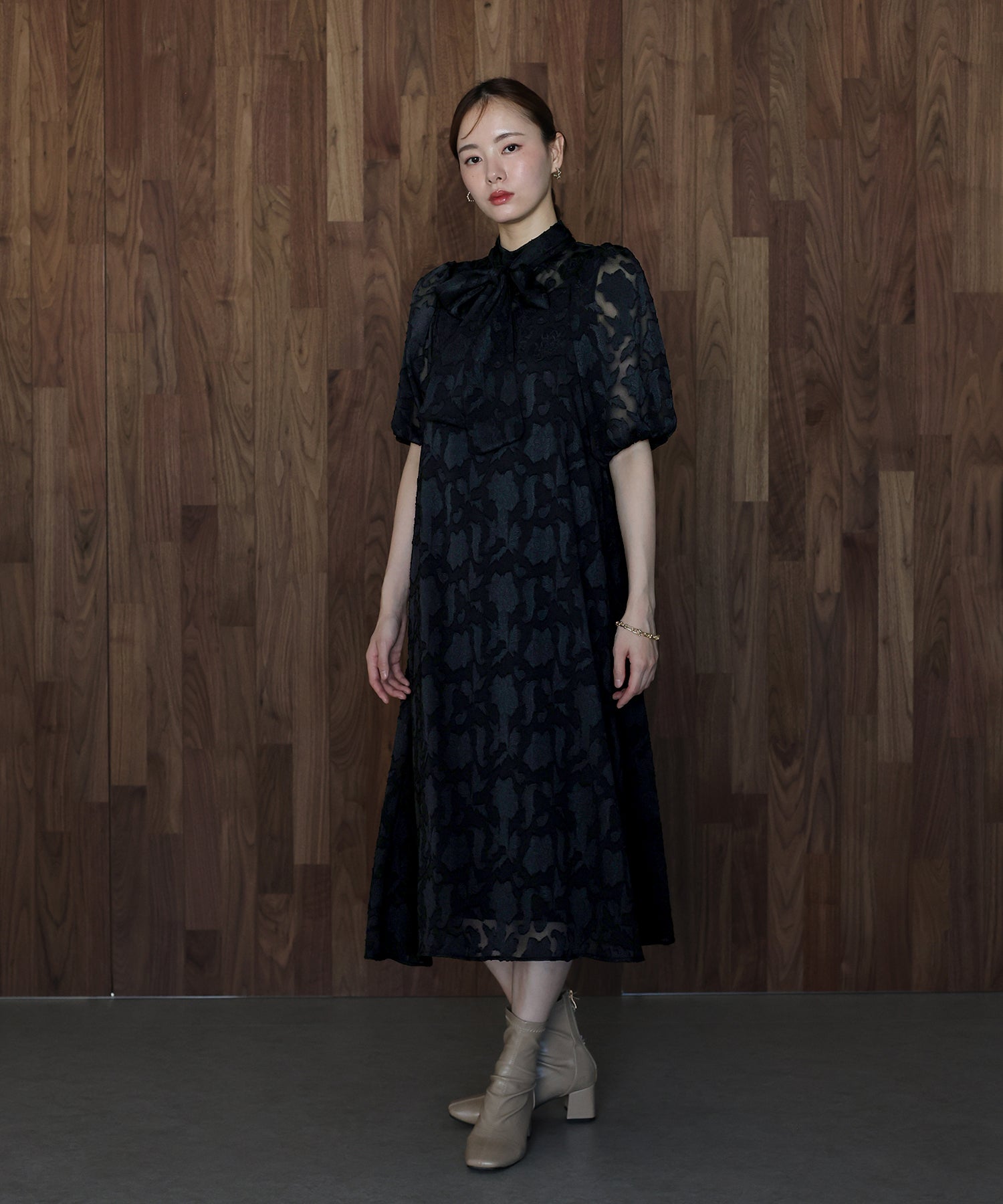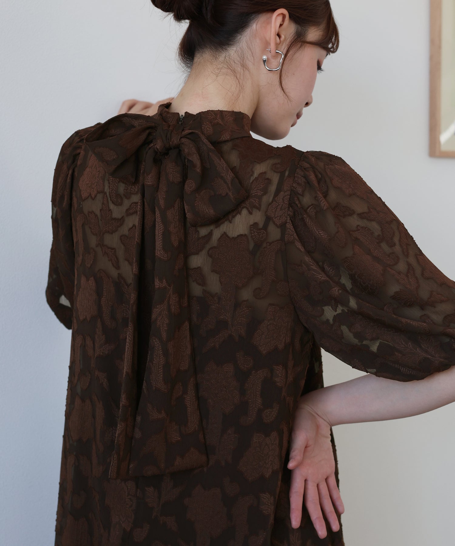 쉬폰 자카드가 적당한 투명감과 입체감을 연출해주는 백 리본 롱 길이 원피스 파티 원피스 결혼식 원피스