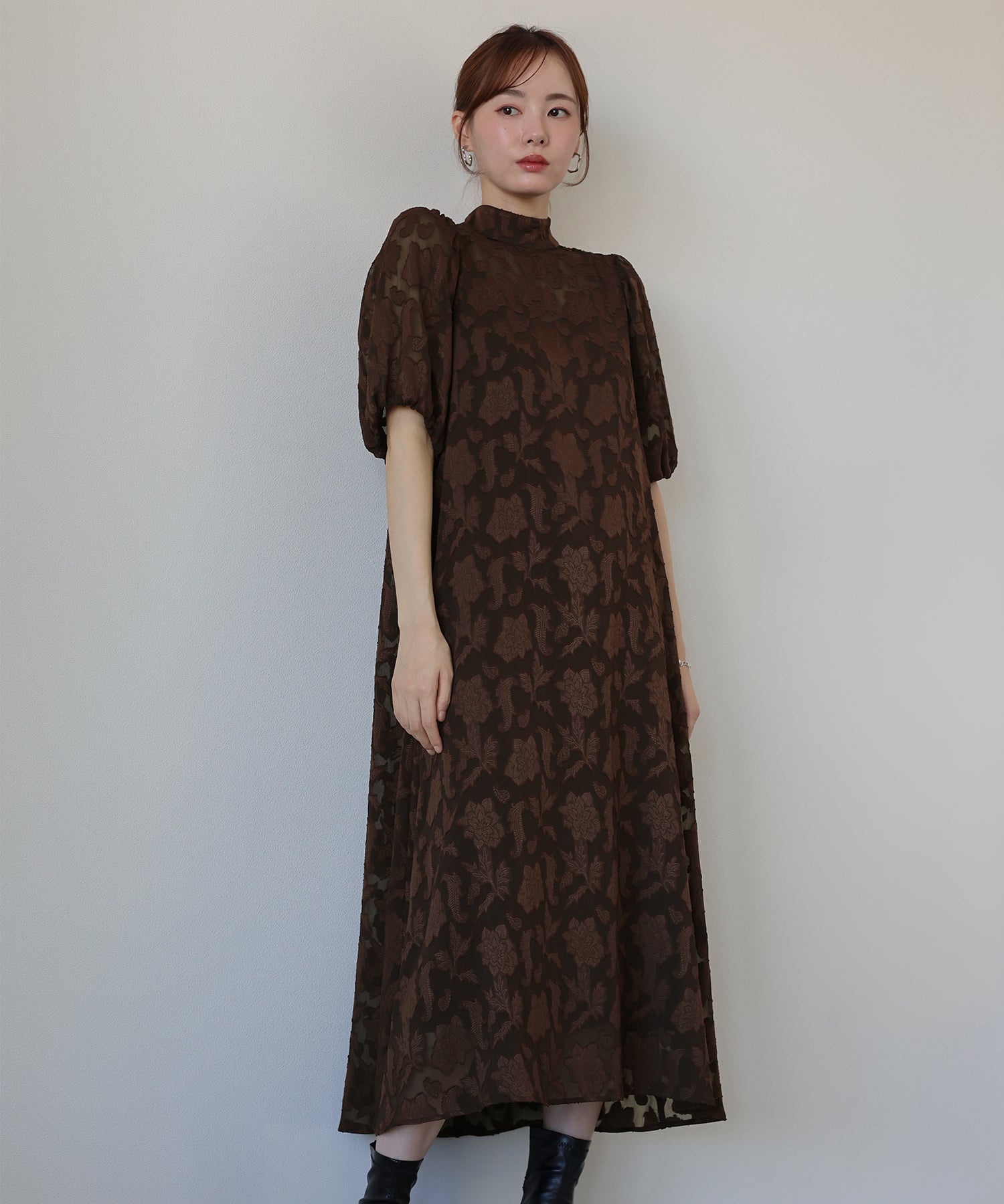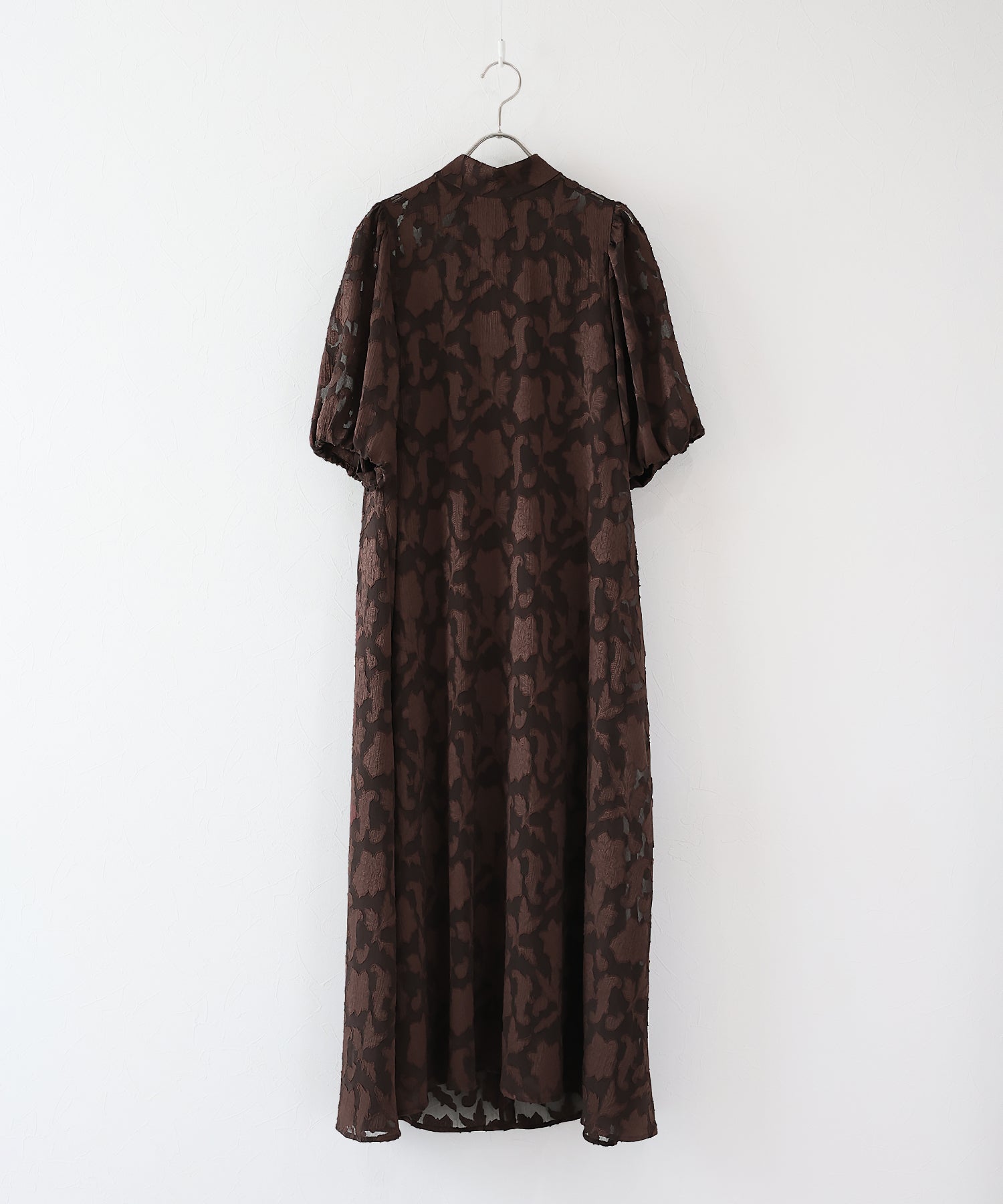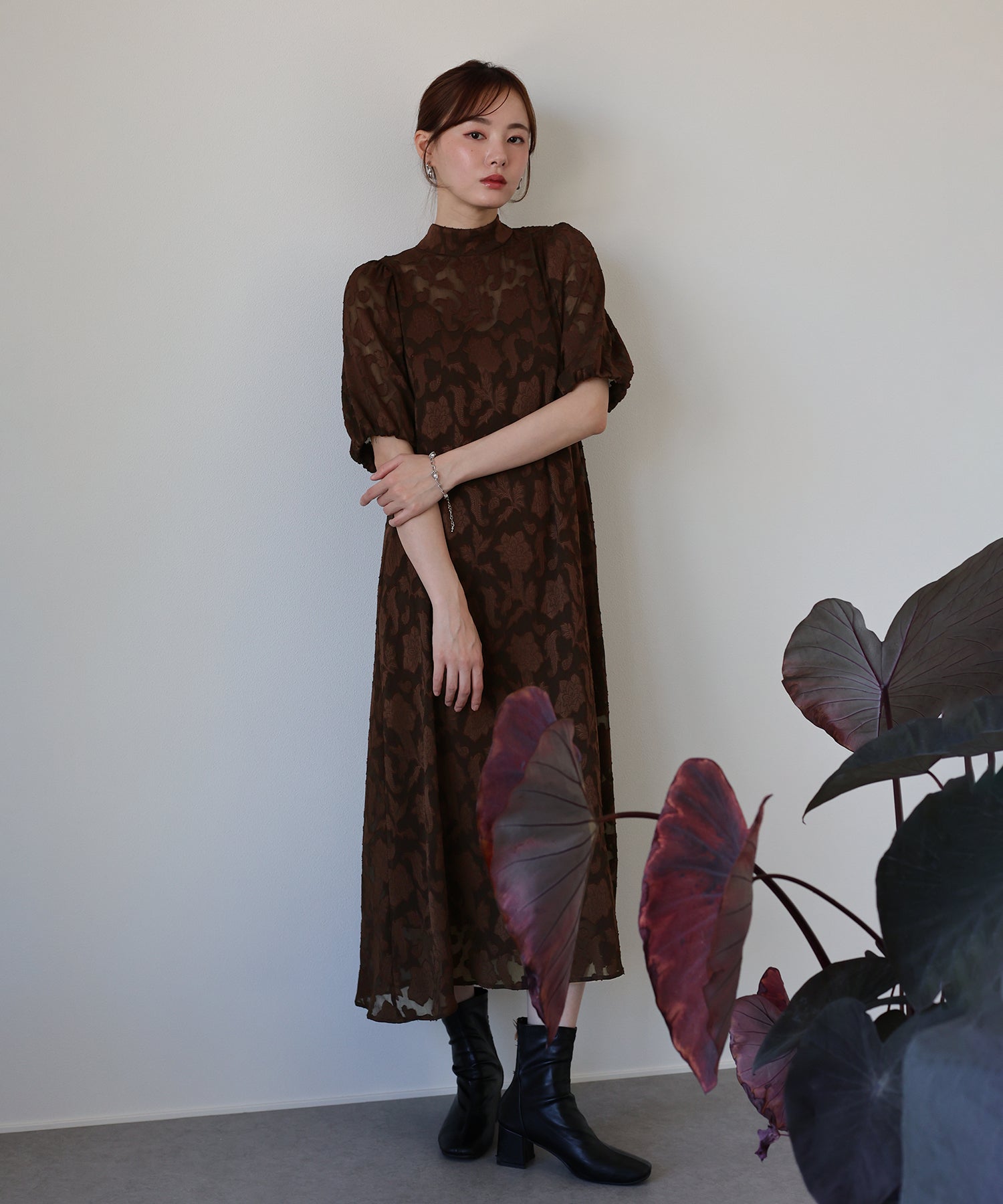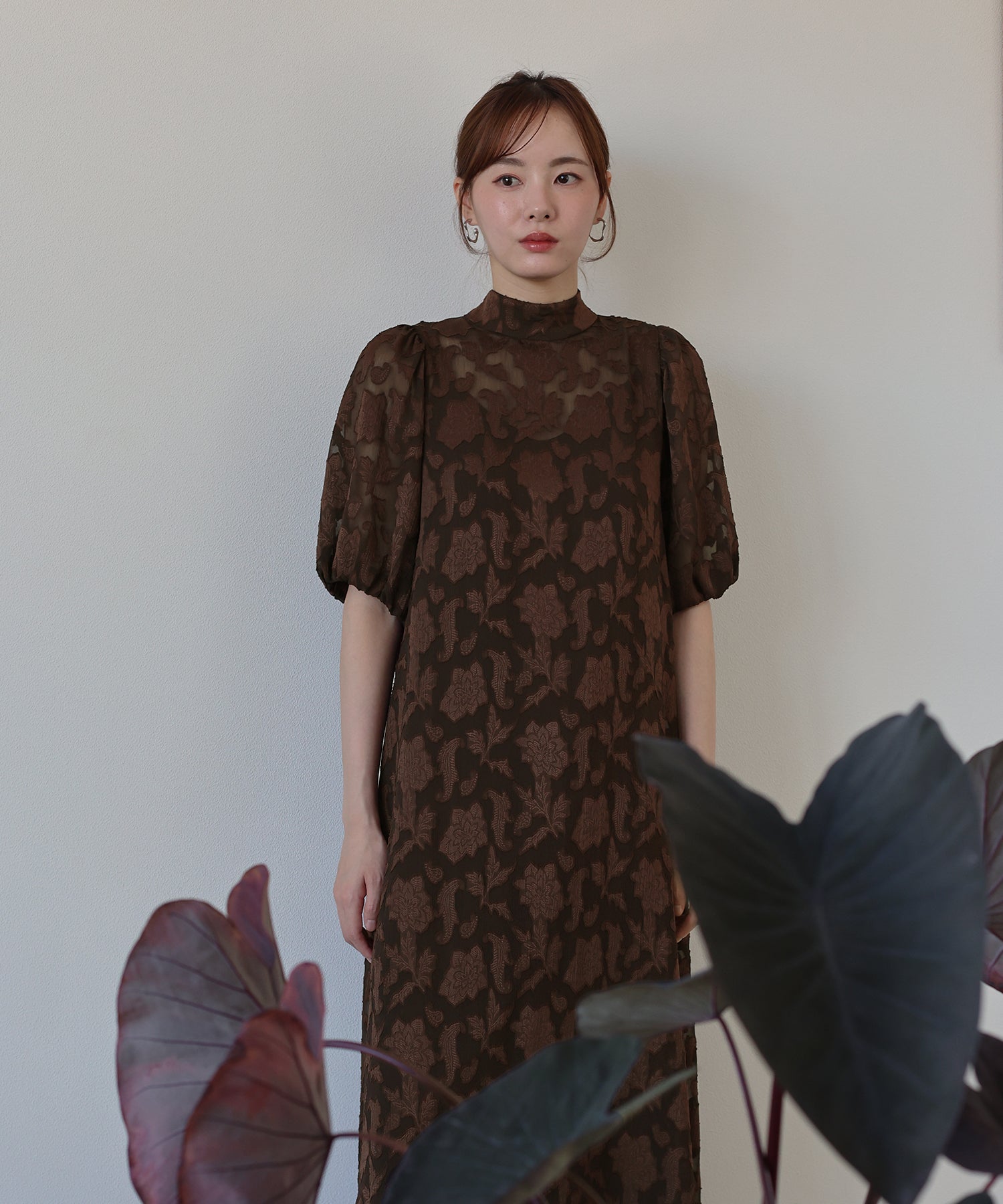 쉬폰의 부드러운 분위기가 감도는 꽃무늬 자카드 소재.