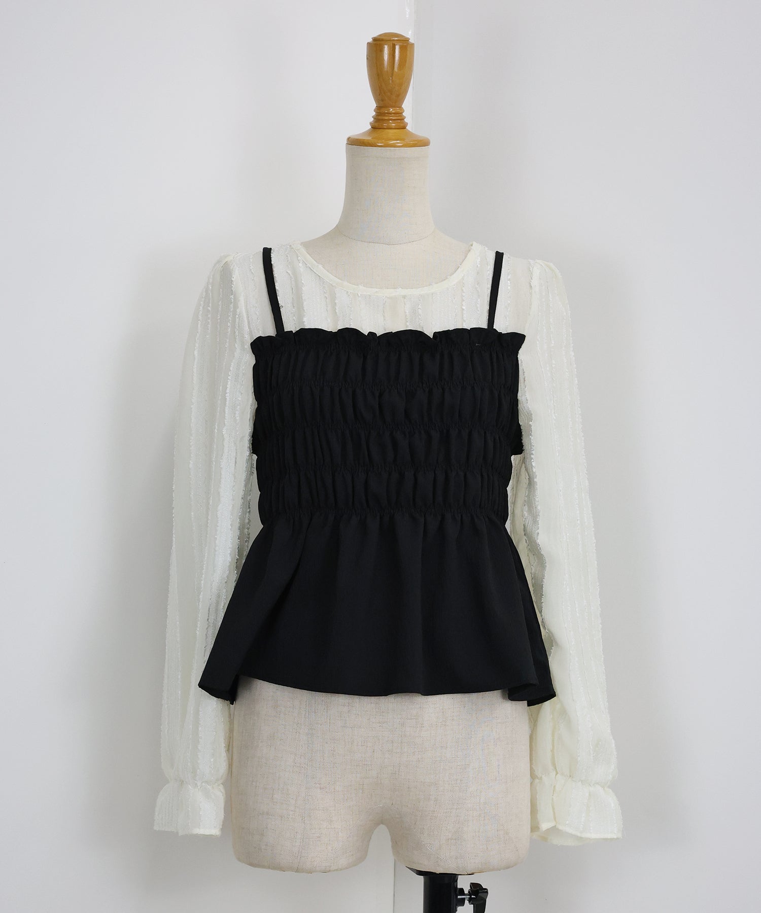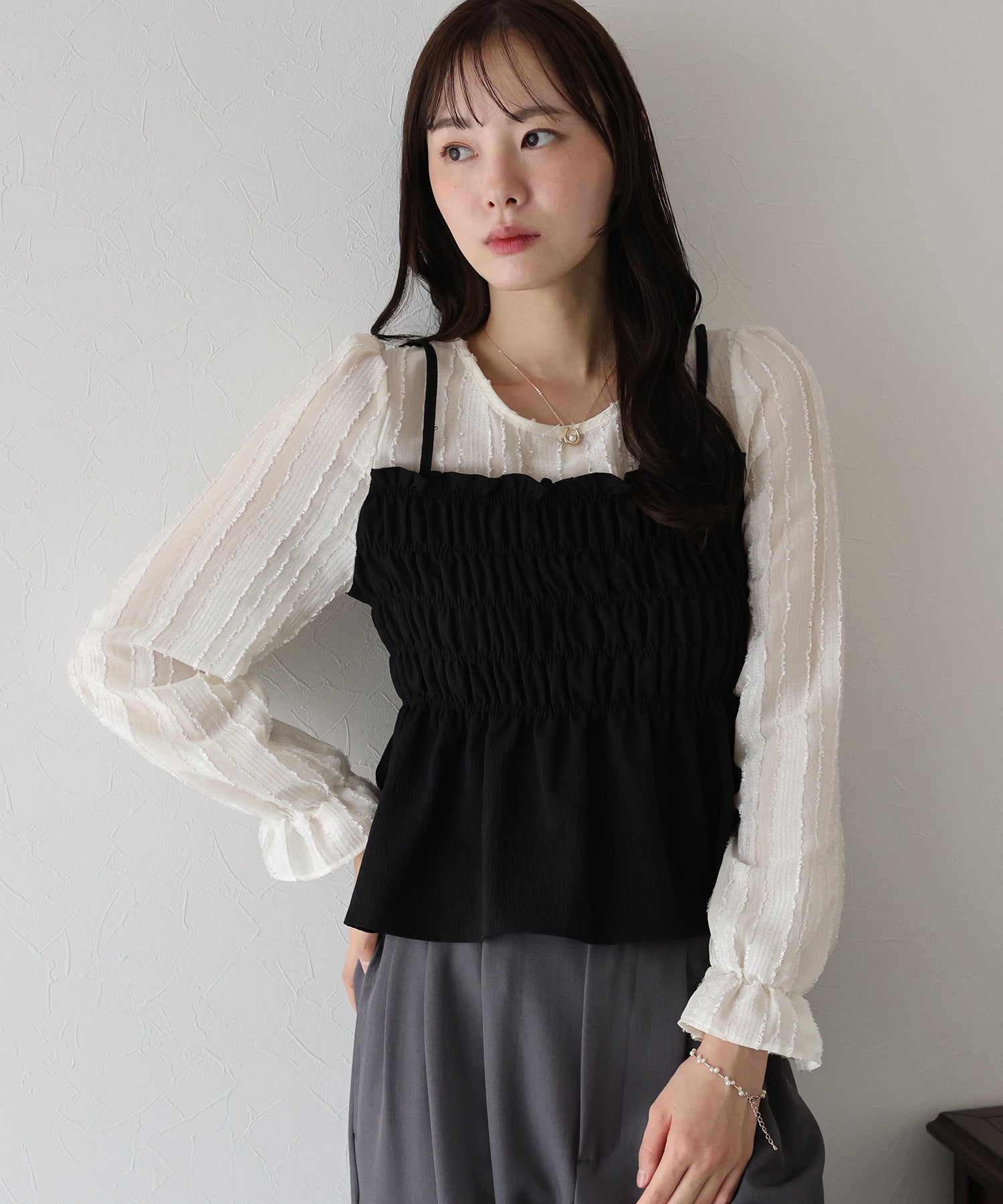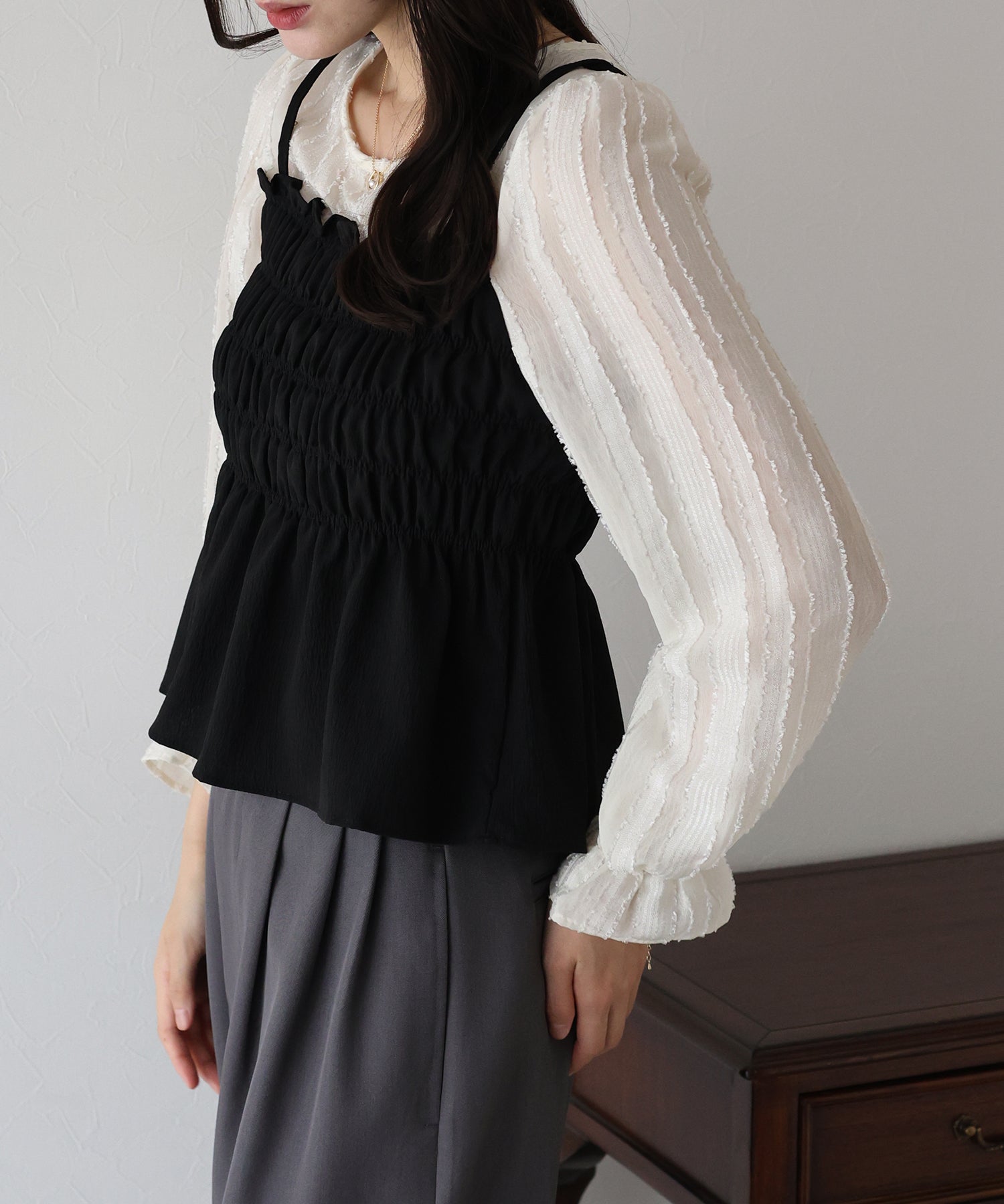 TIME SALE【TIME SALE】シャーリングビスチェレイヤードシャツ