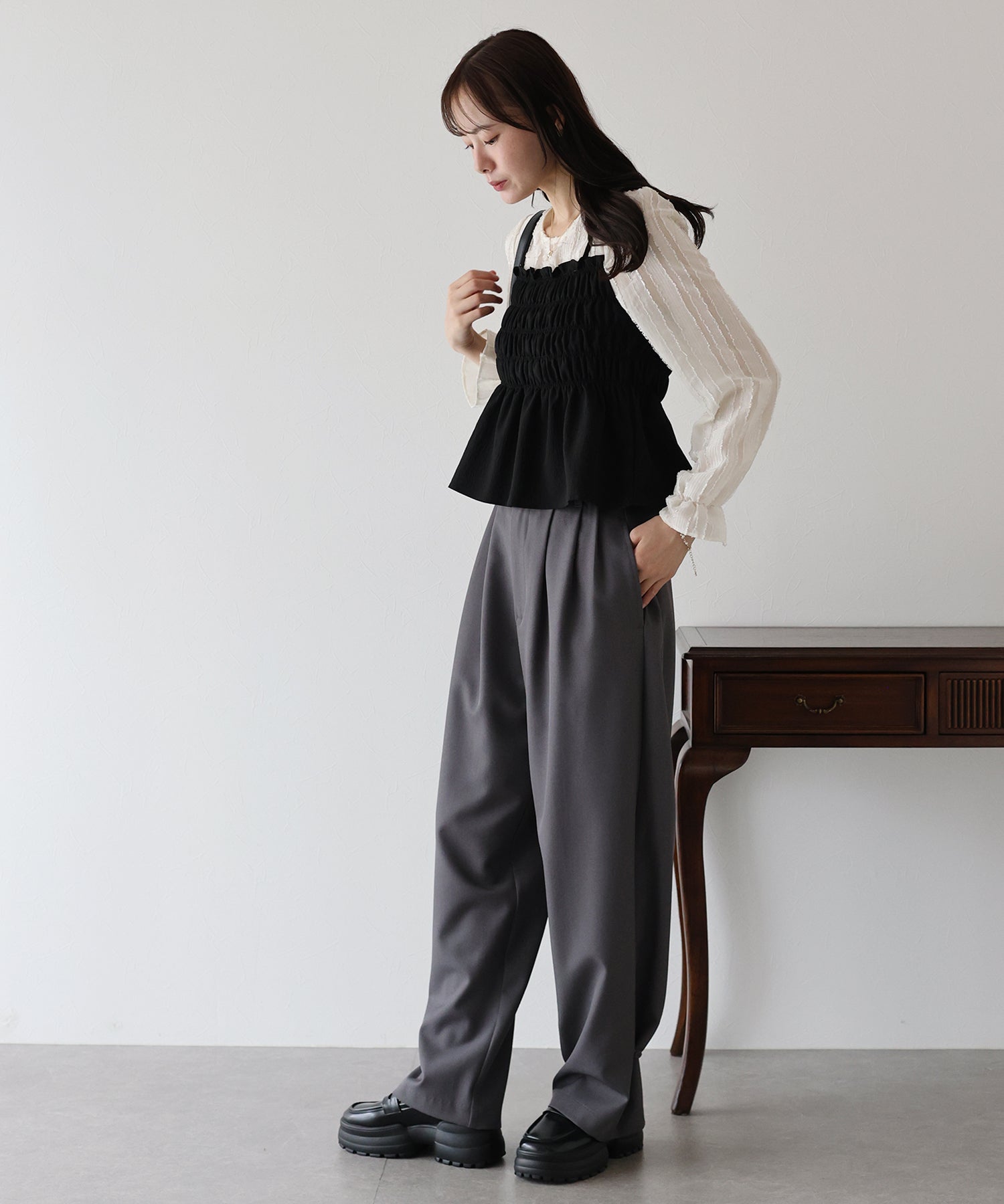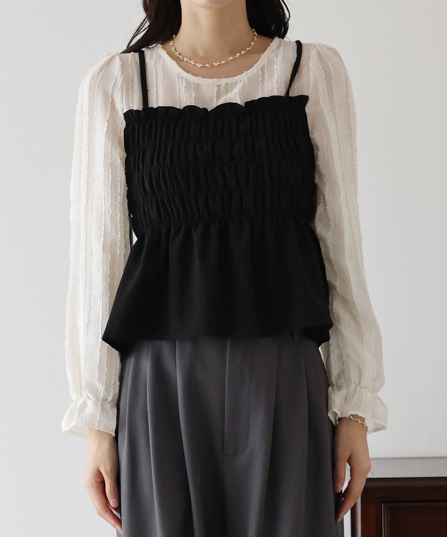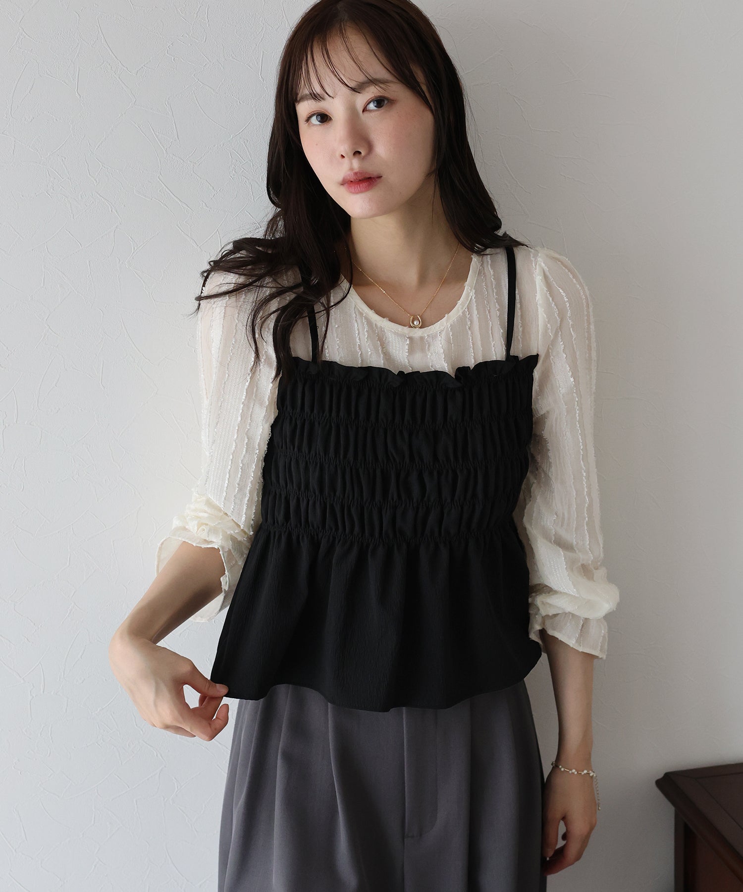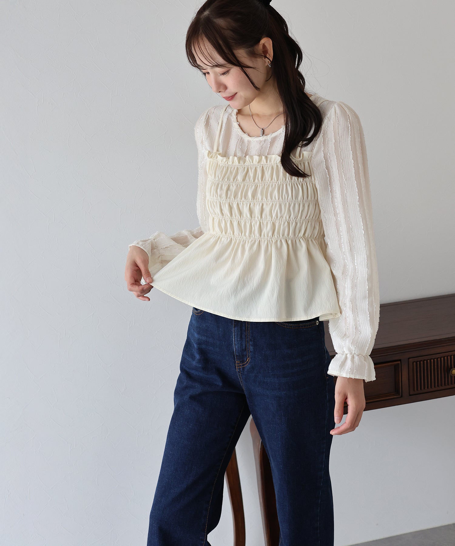 TIME SALE【TIME SALE】シャーリングビスチェレイヤードシャツ