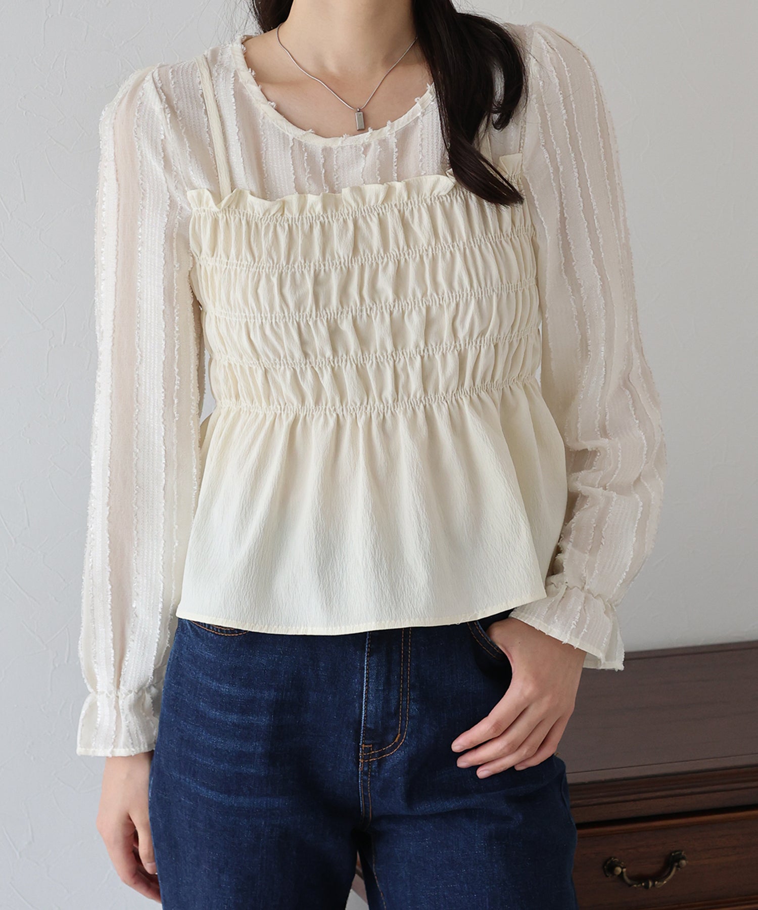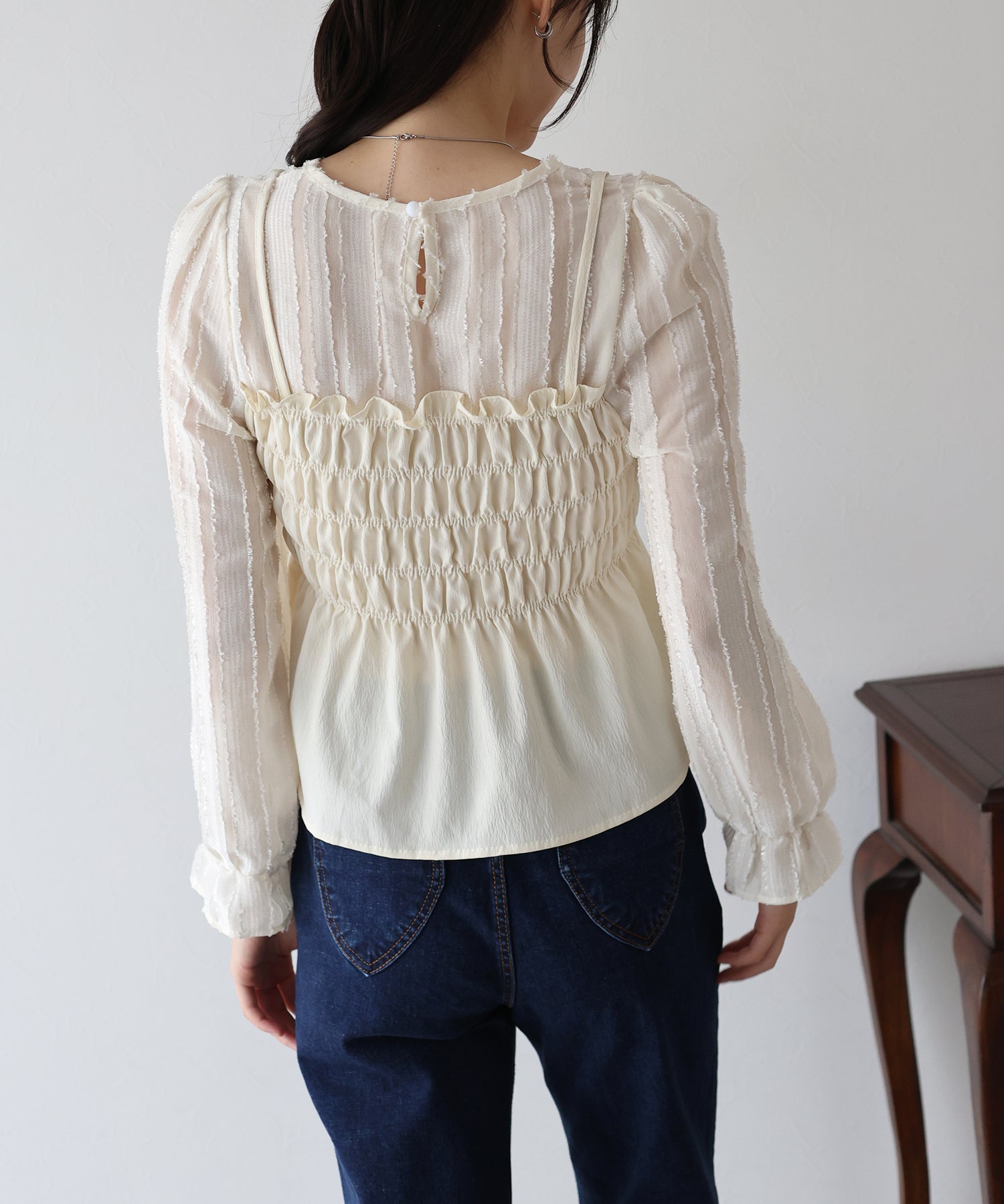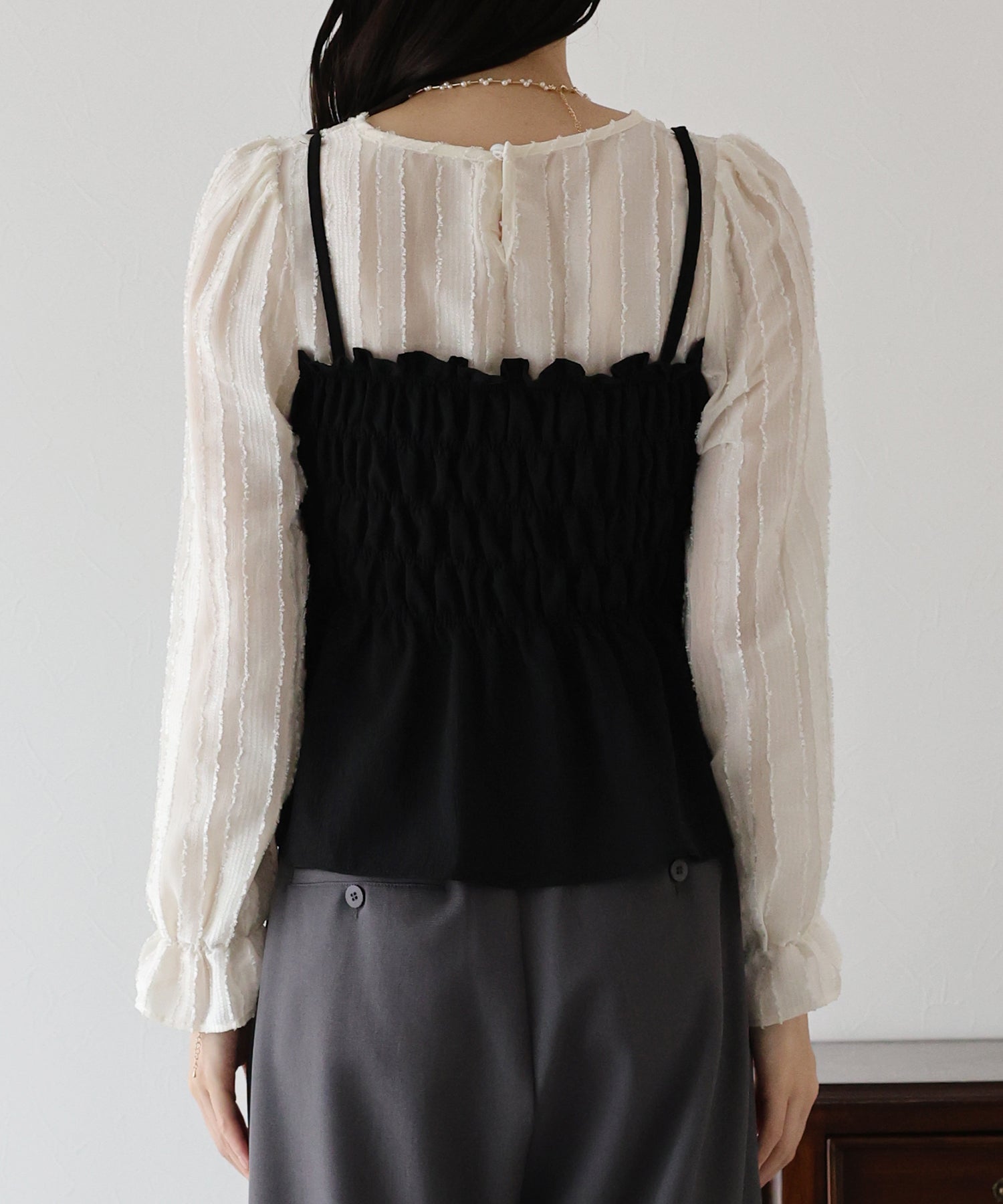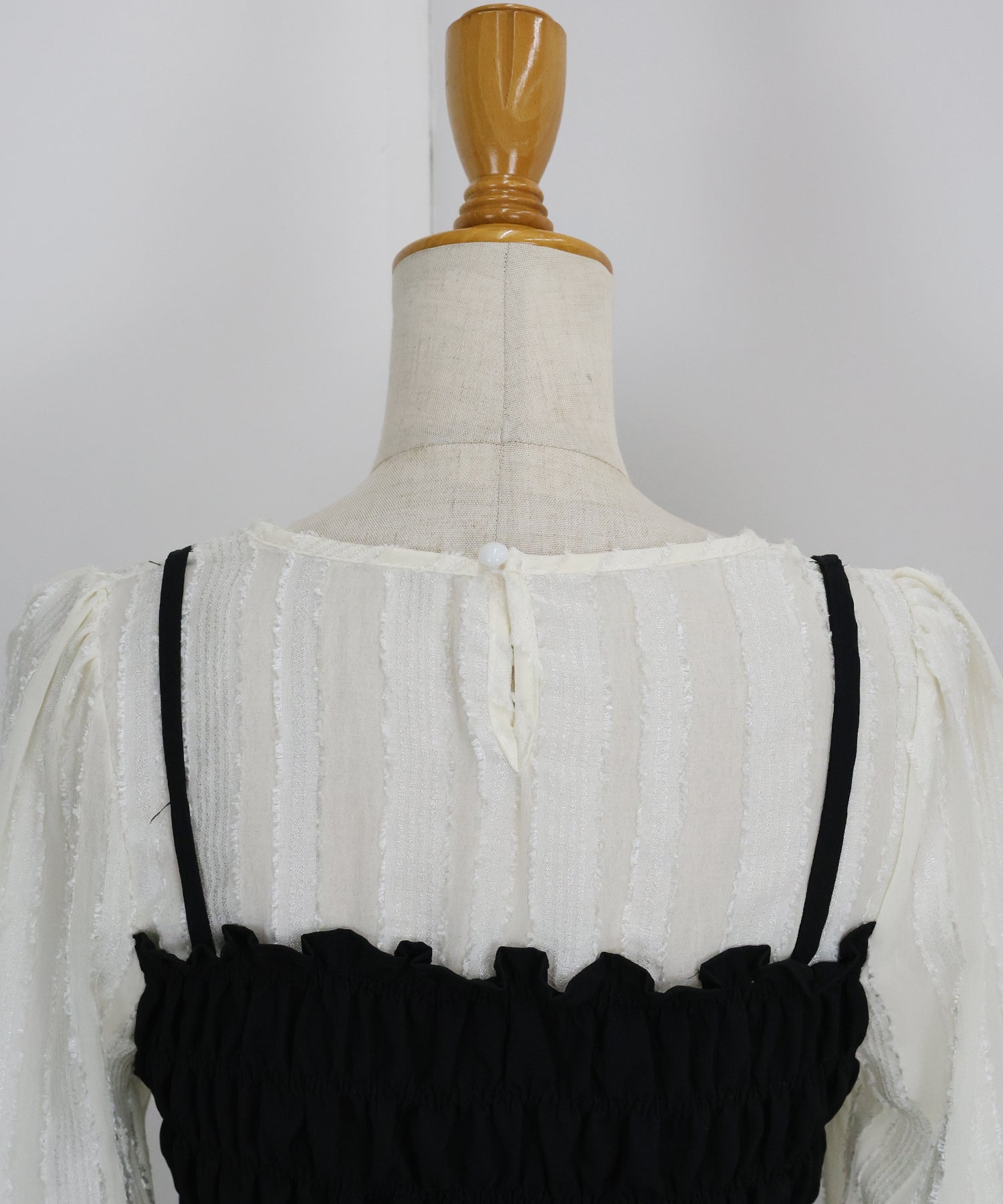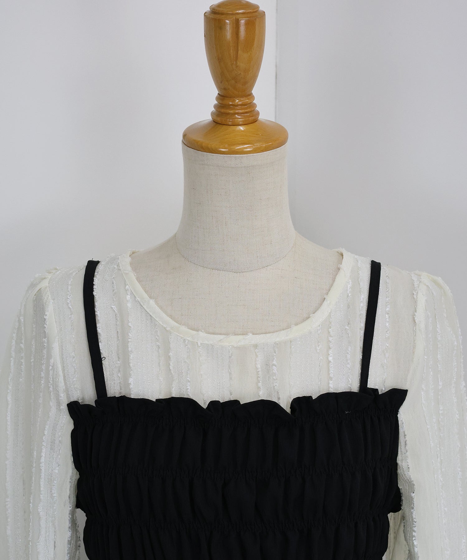 ストライプフリンジ×シャーリングビスチェがお洒落なドッキングブラウス