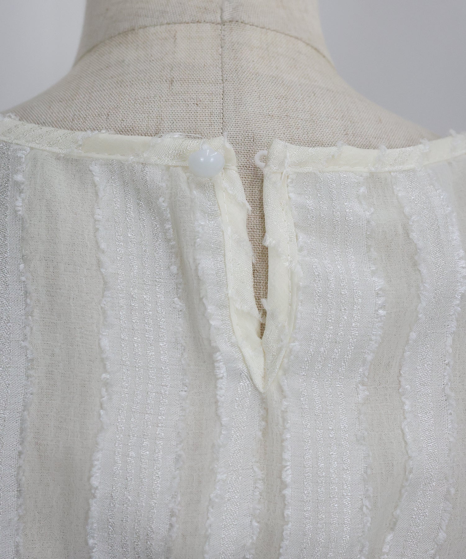 シャツ部分は立体感のあるストライプフリンジデザインで、可愛らしい印象をプラス。