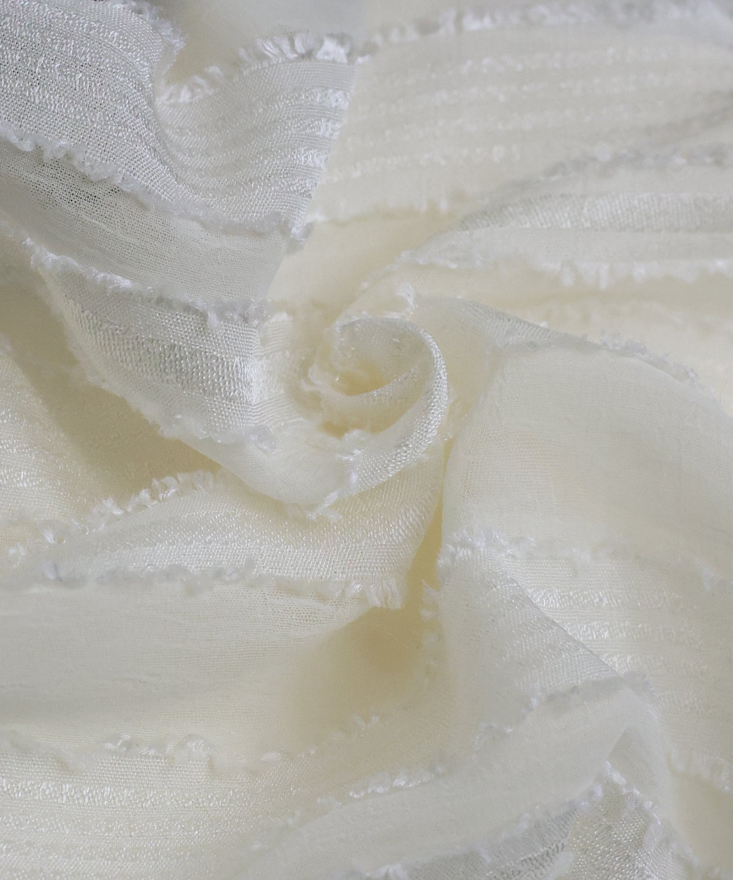 生地の表情が華やかさを引き立て、1枚で着映えする存在感があります。