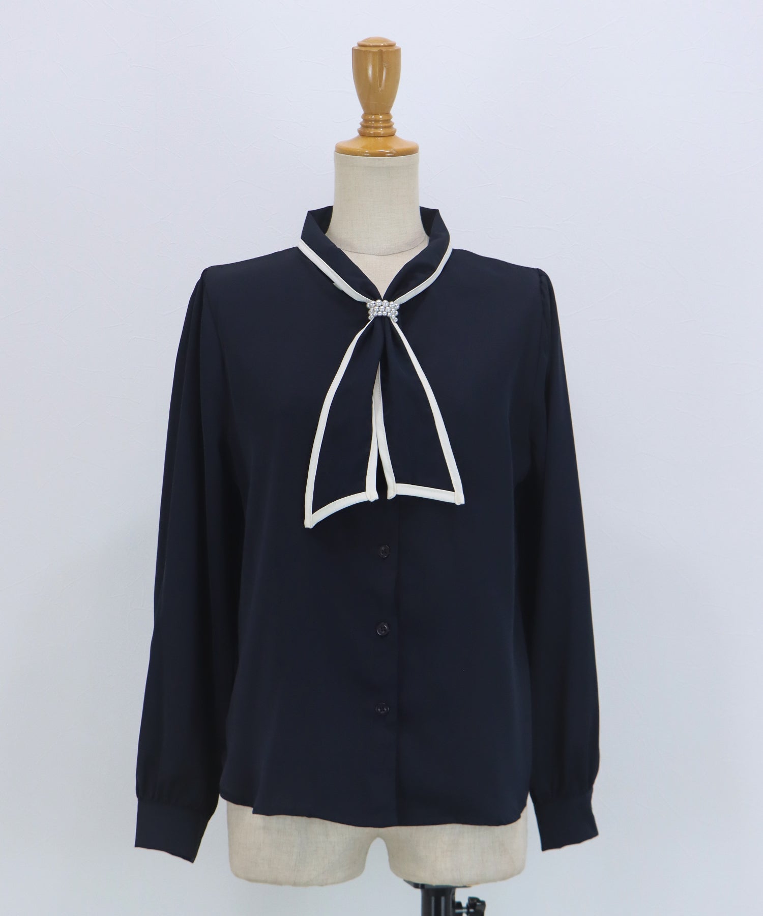 TIME SALE【早割5%OFF】パールバイカラーボウタイブラウス