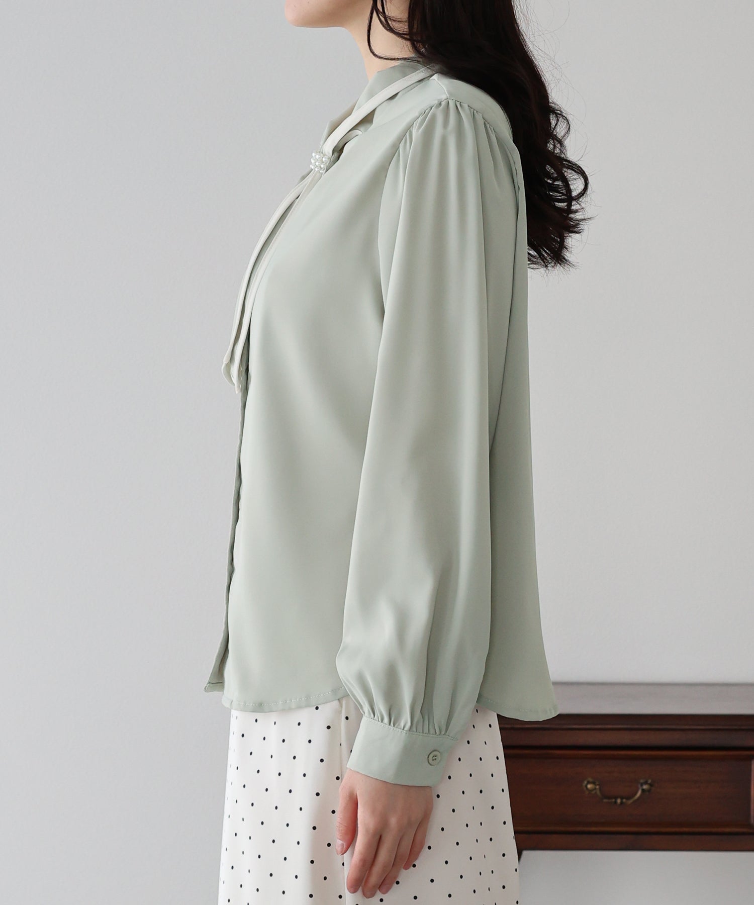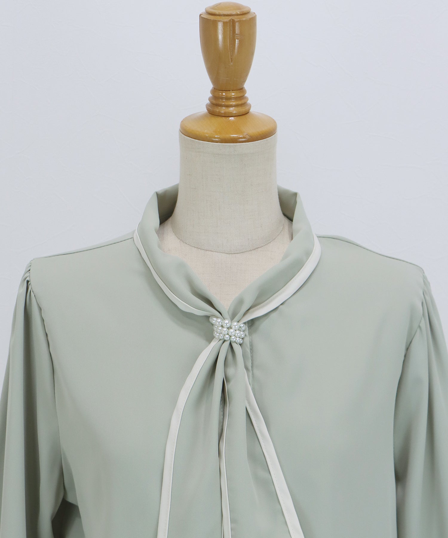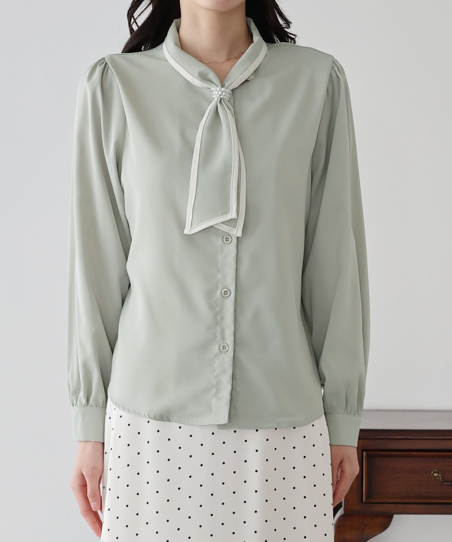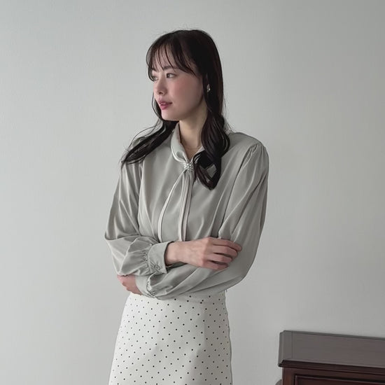 パールモチーフリボンブラウス