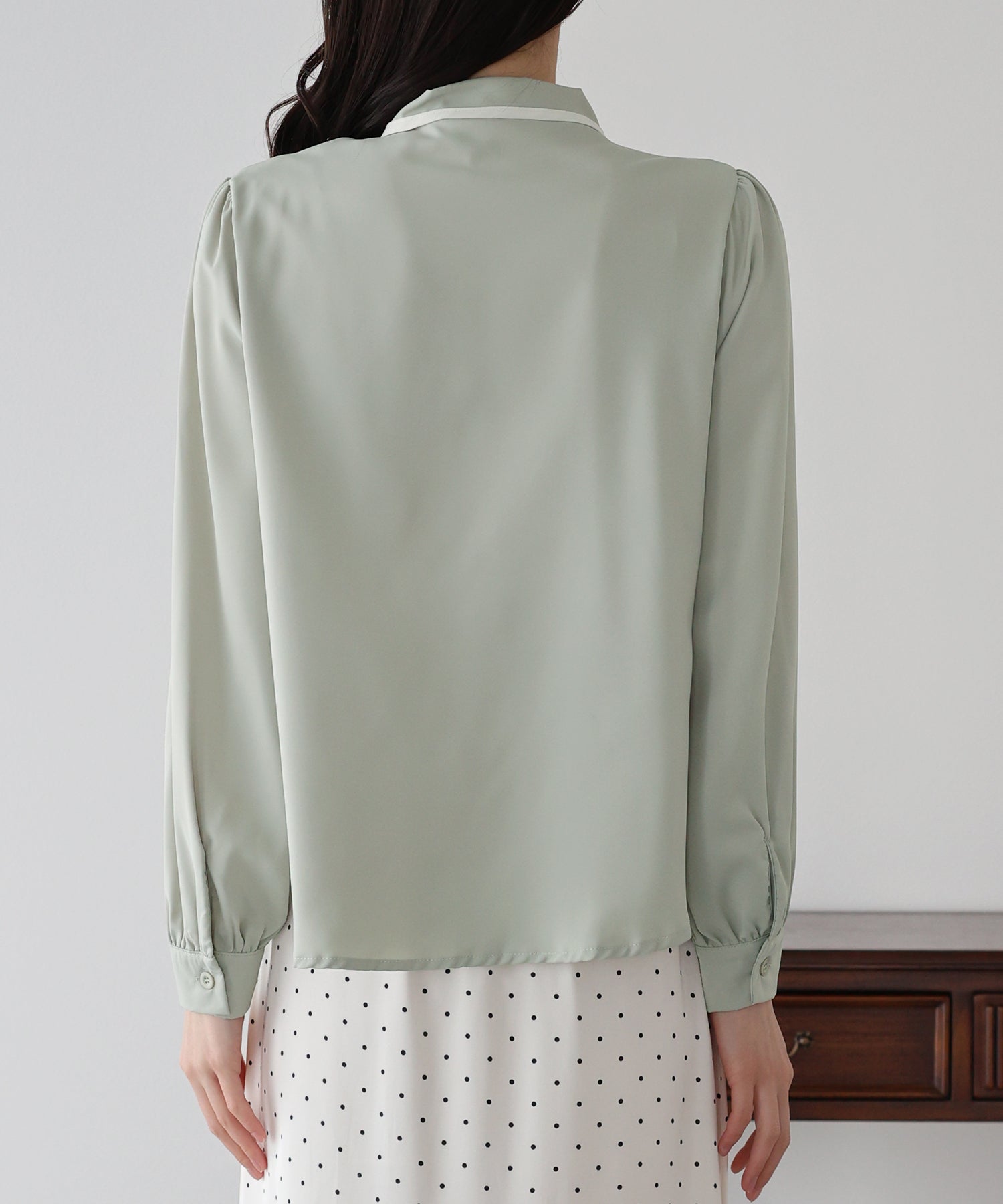 【早割5%OFF】パールバイカラーボウタイブラウス