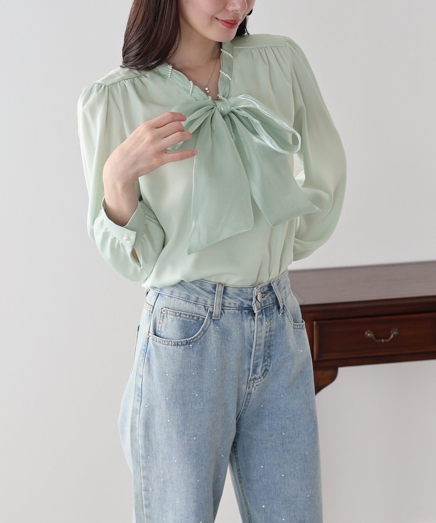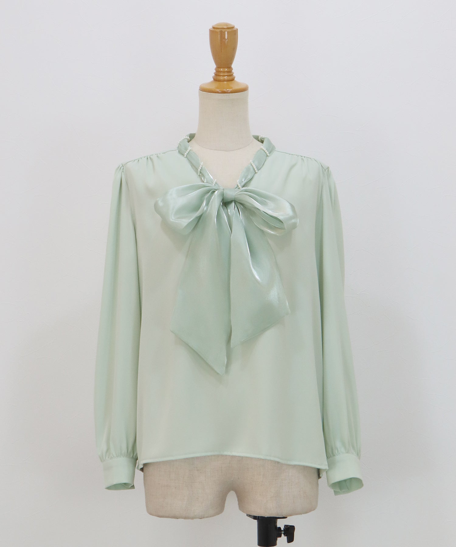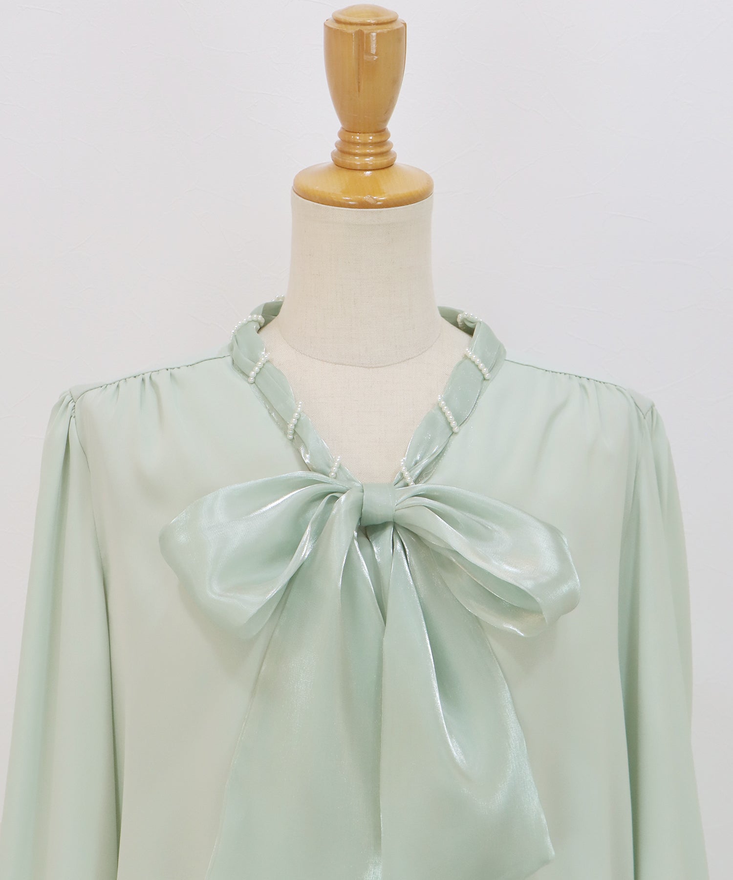 パールモチーフリボンブラウス