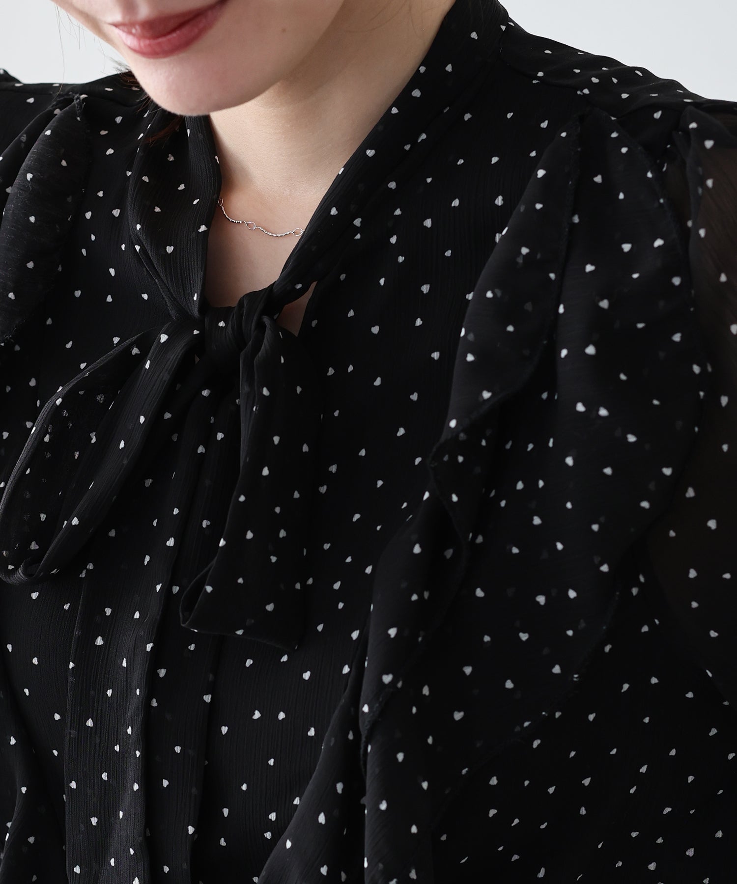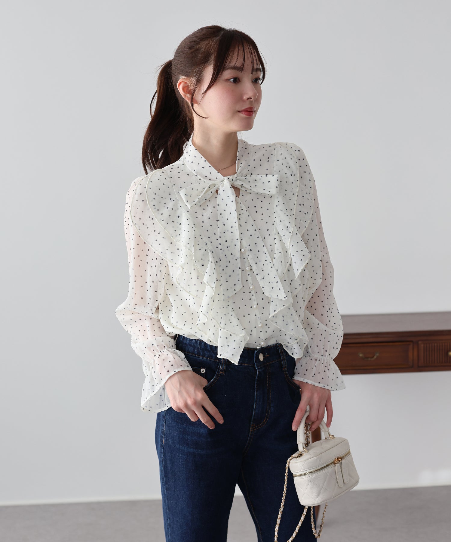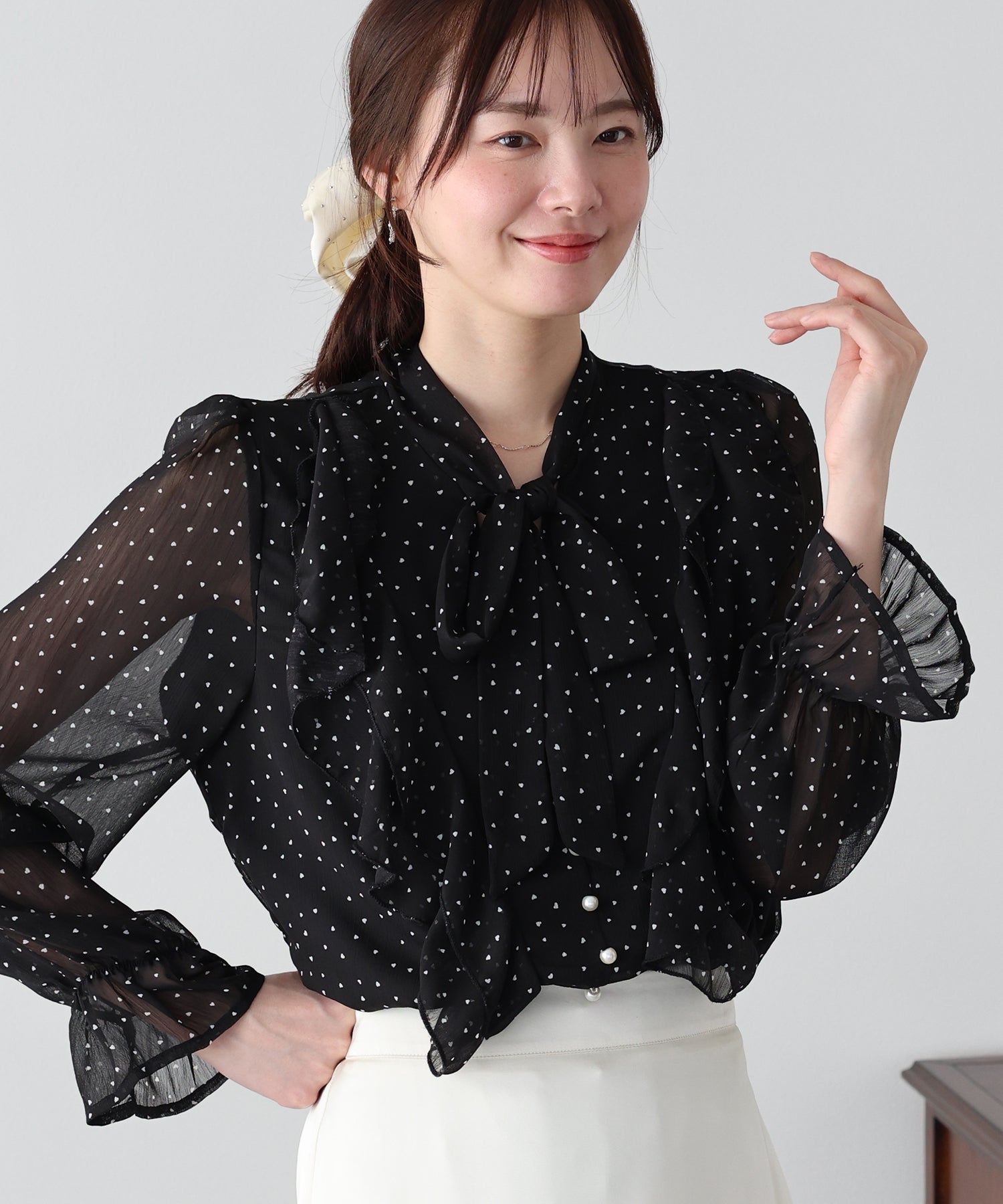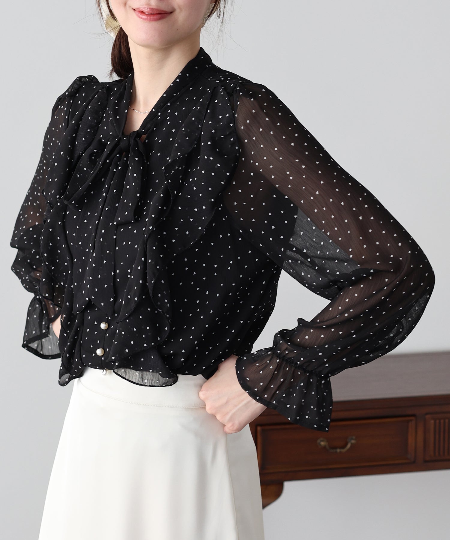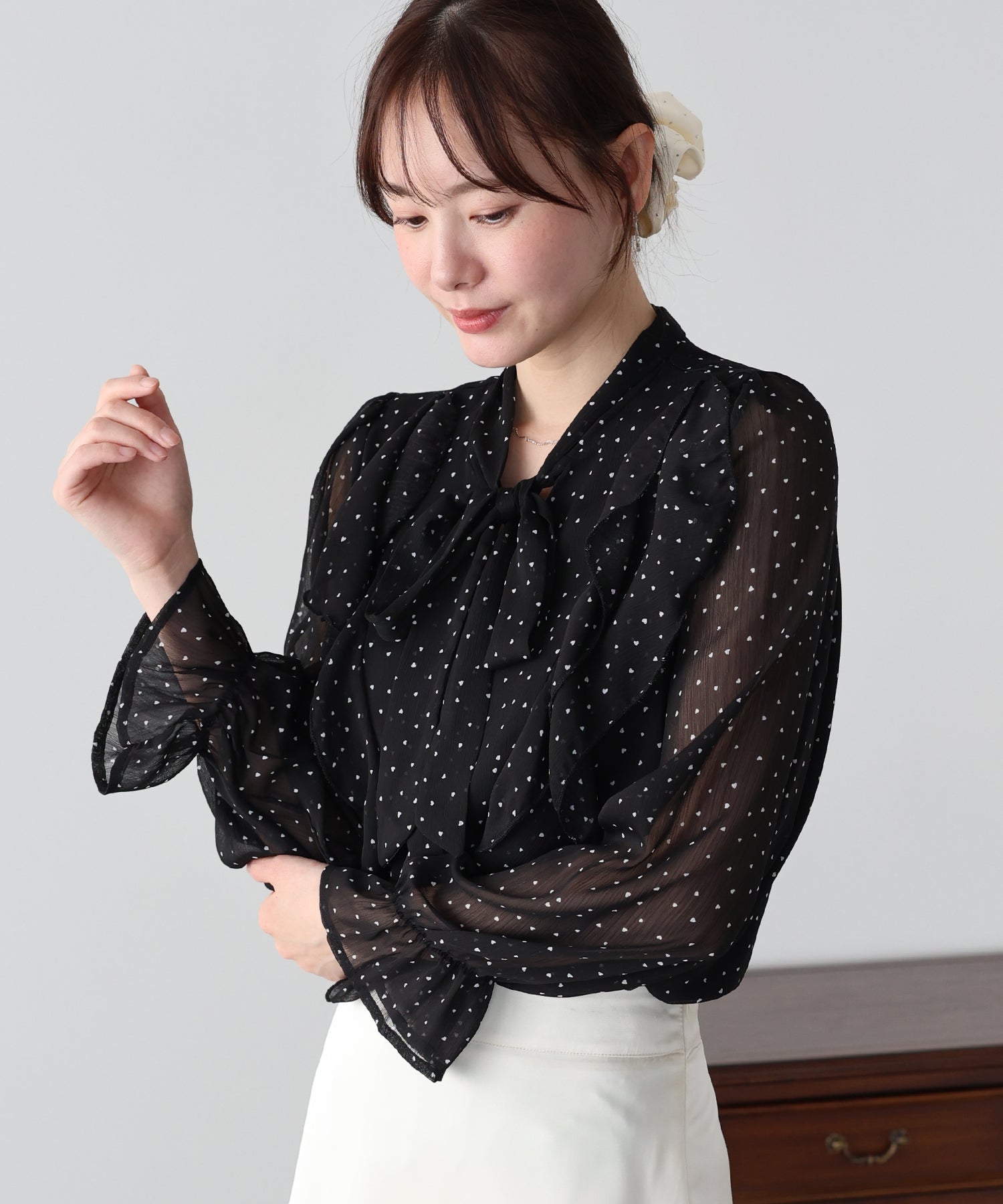 ハートドット×ボウタイが大人かわいいシアーフリルブラウス