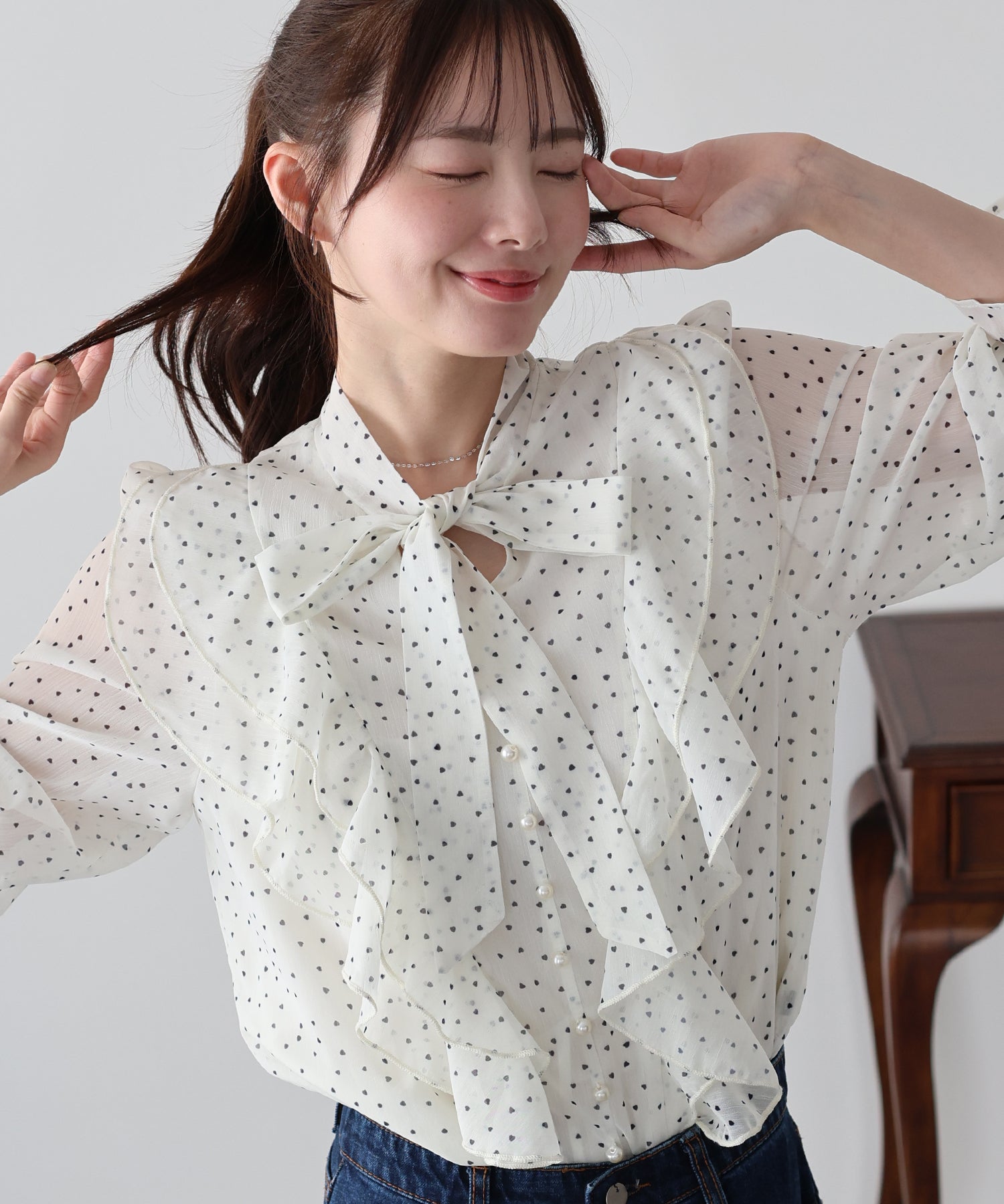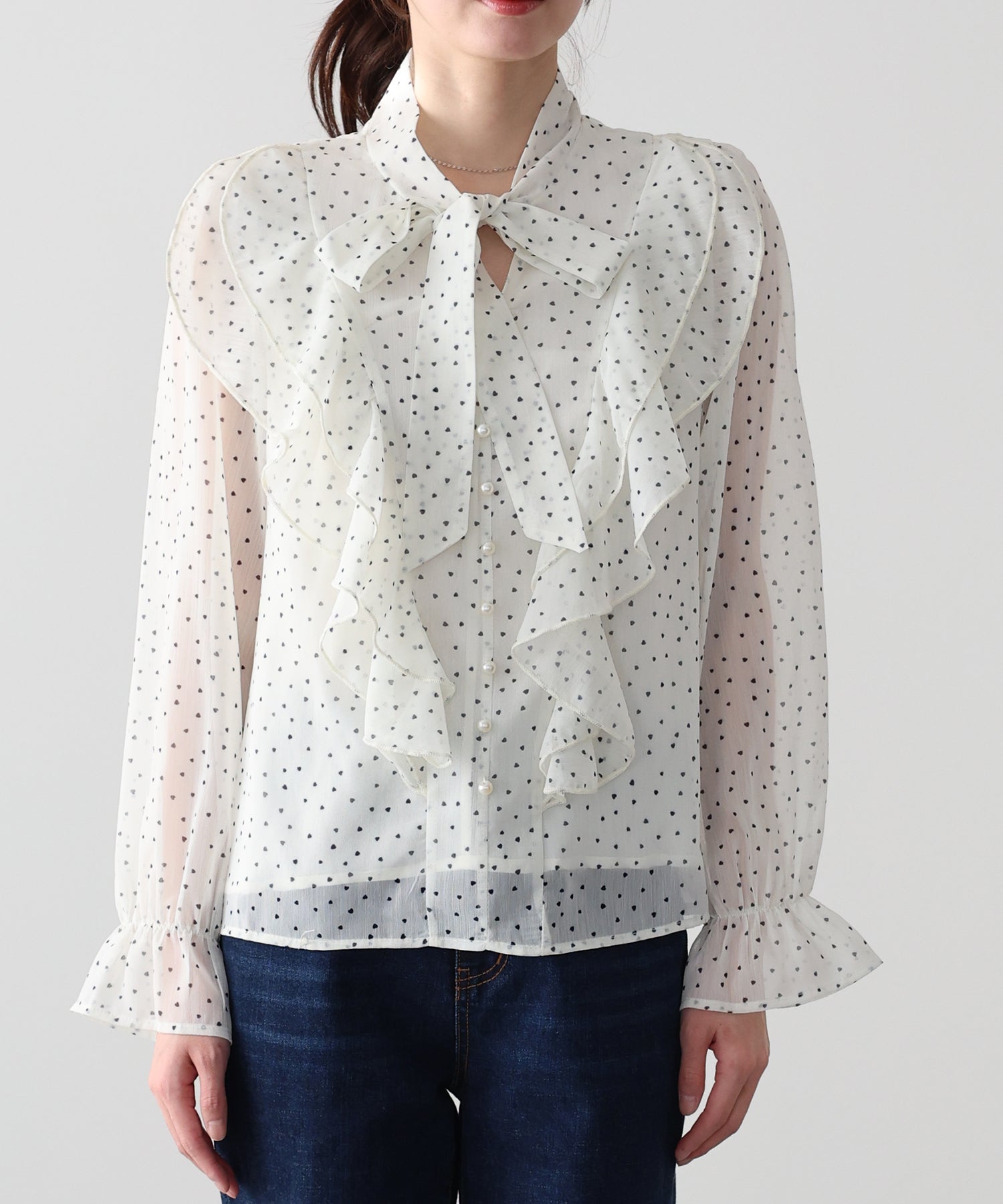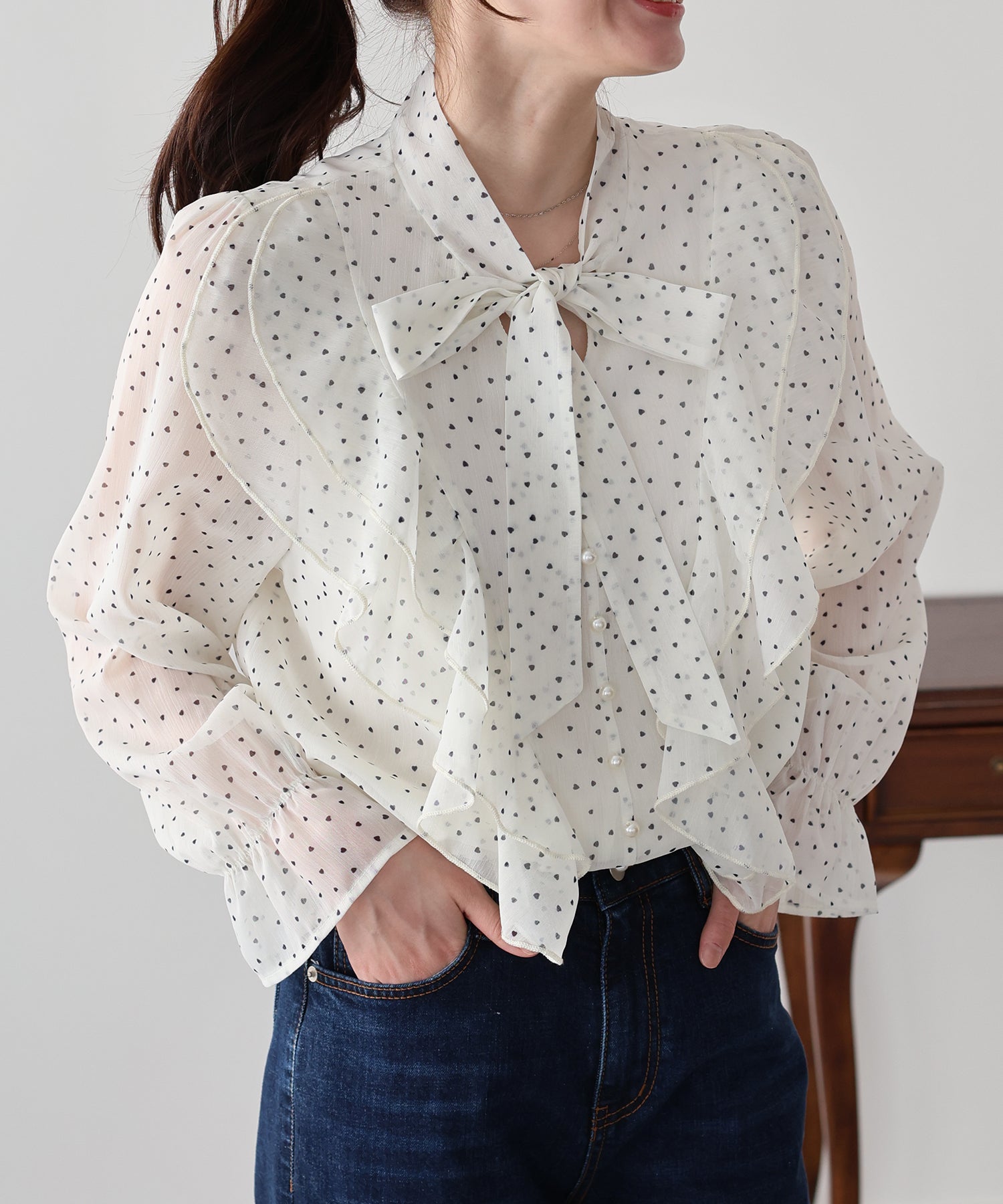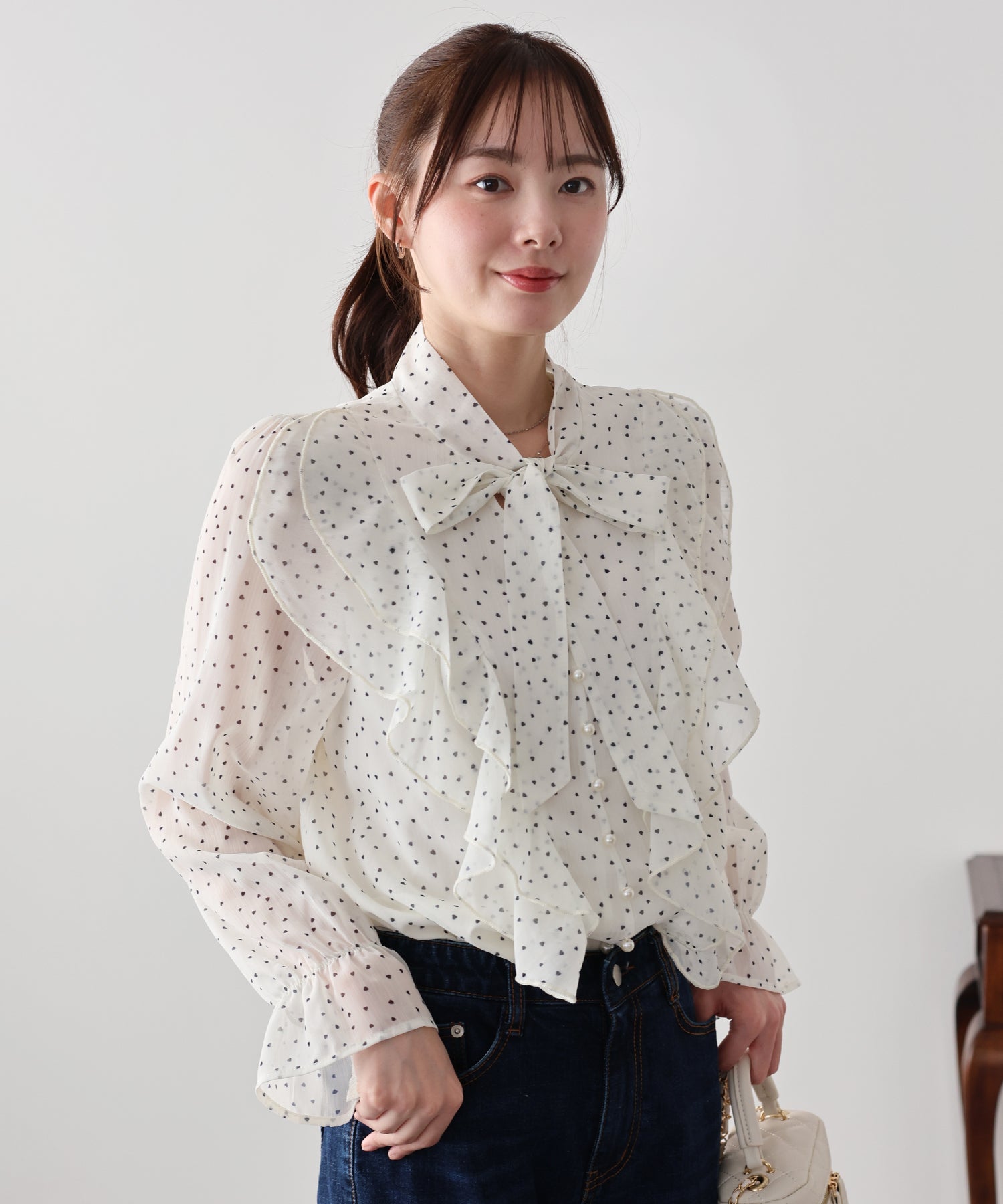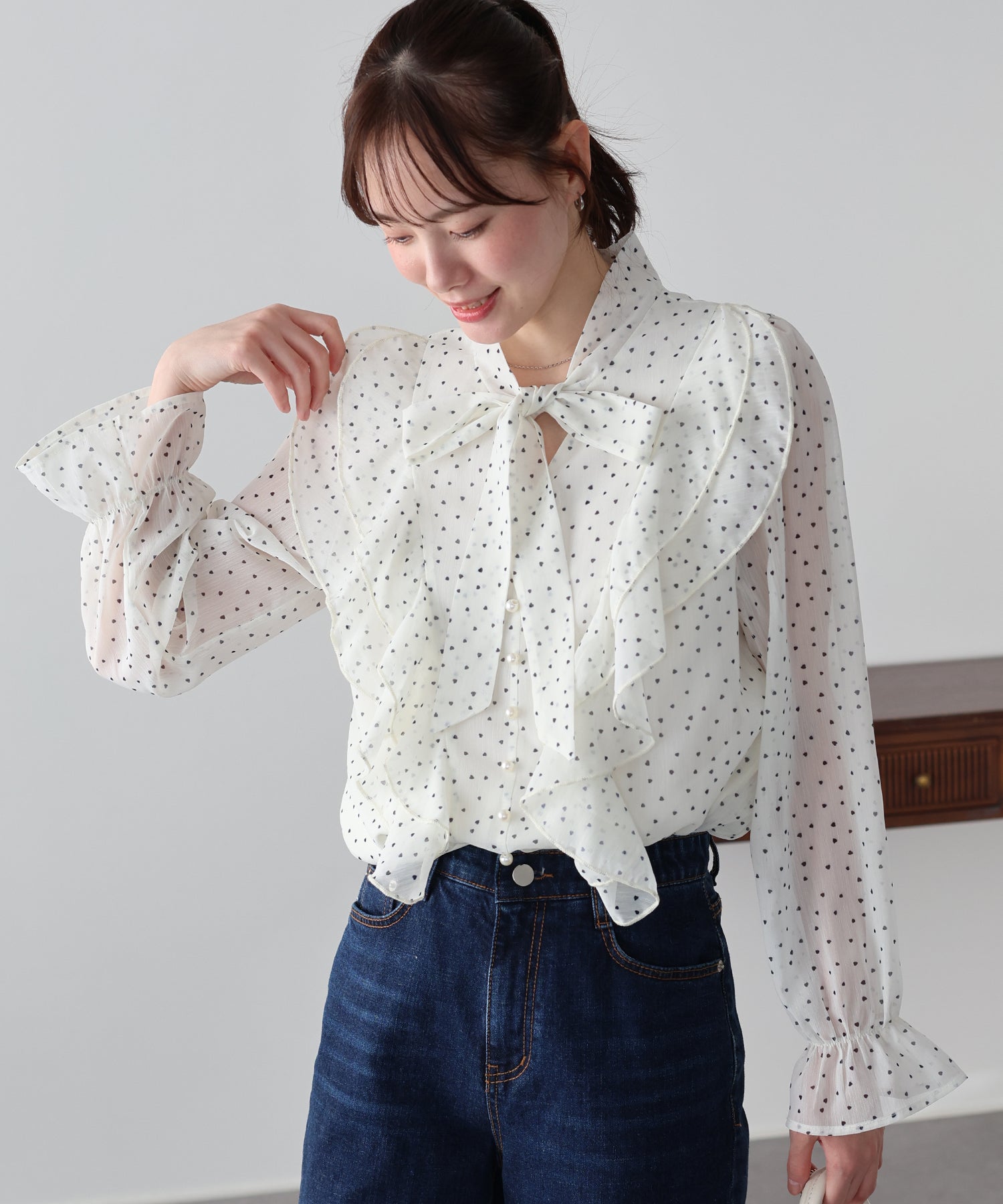 ハートドット×ボウタイが大人かわいいシアーフリルブラウス