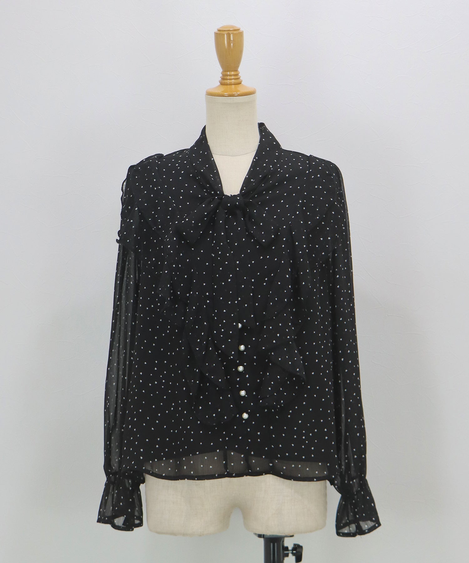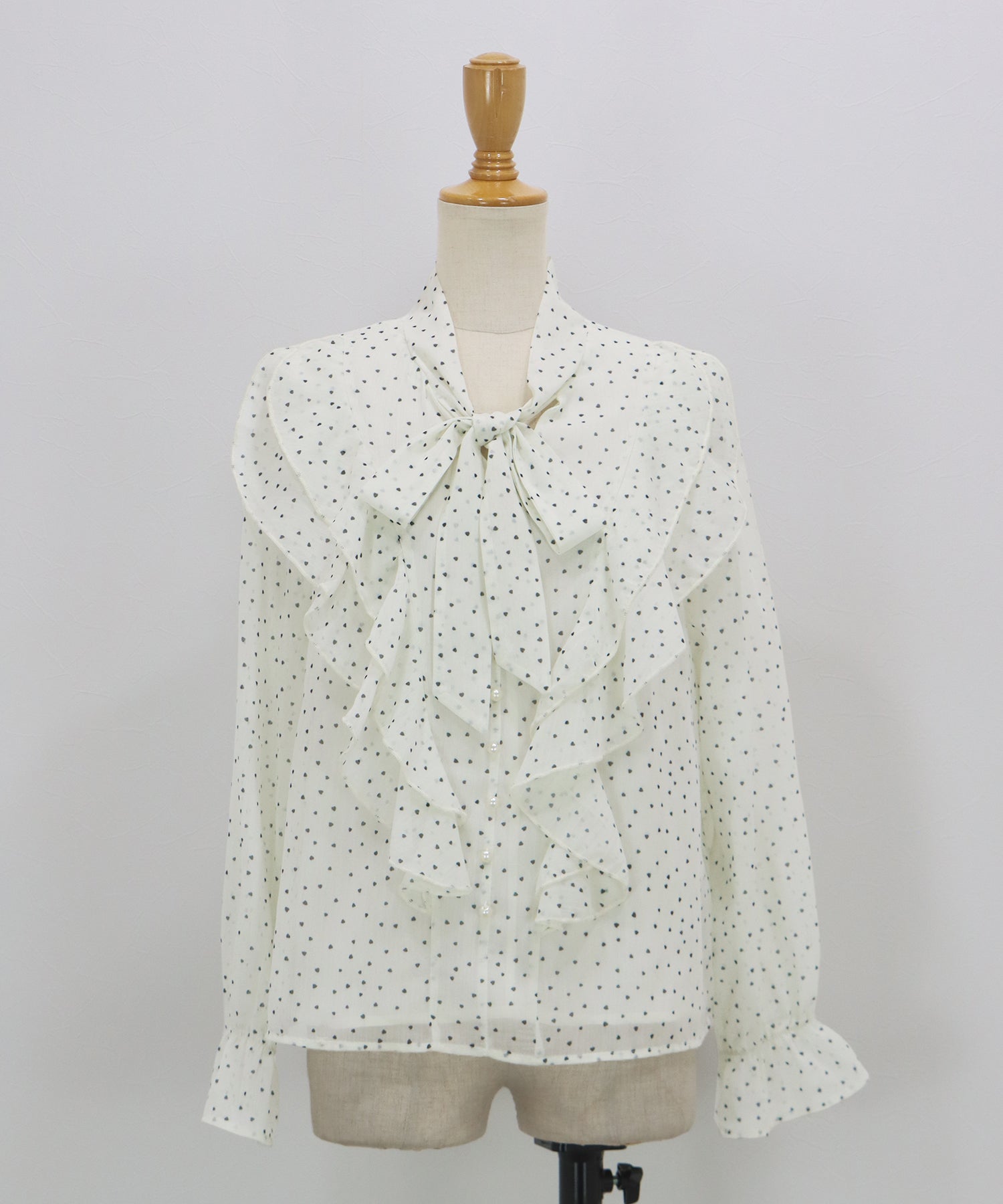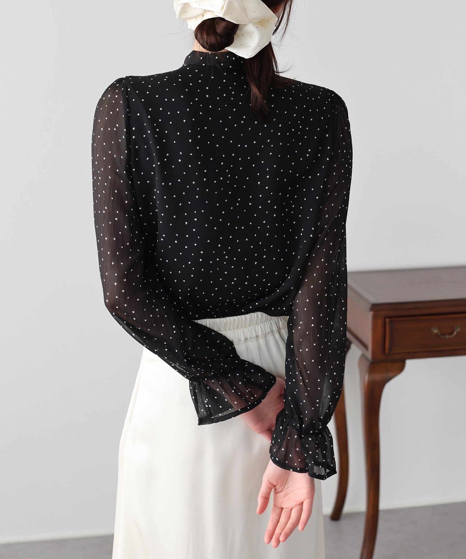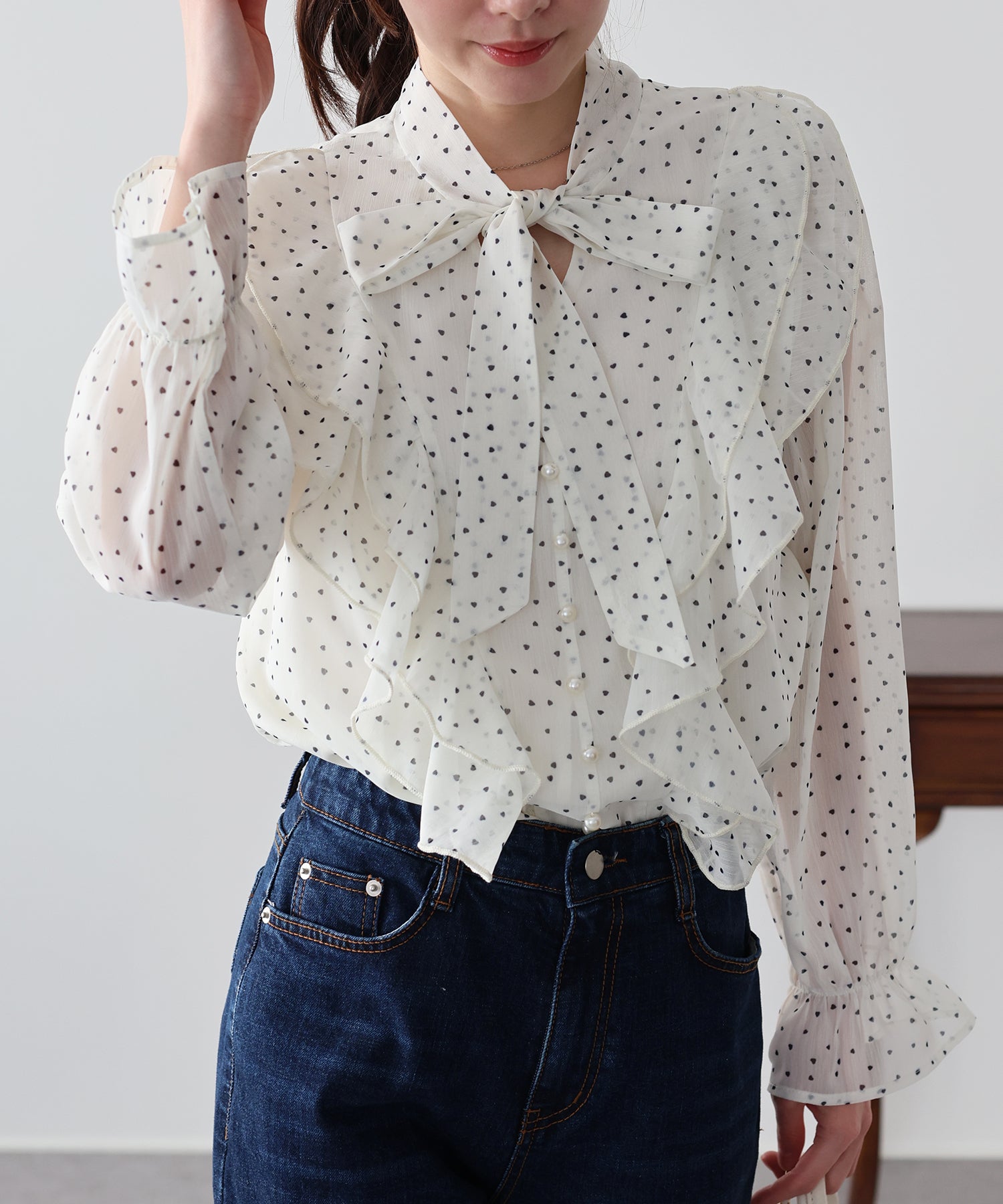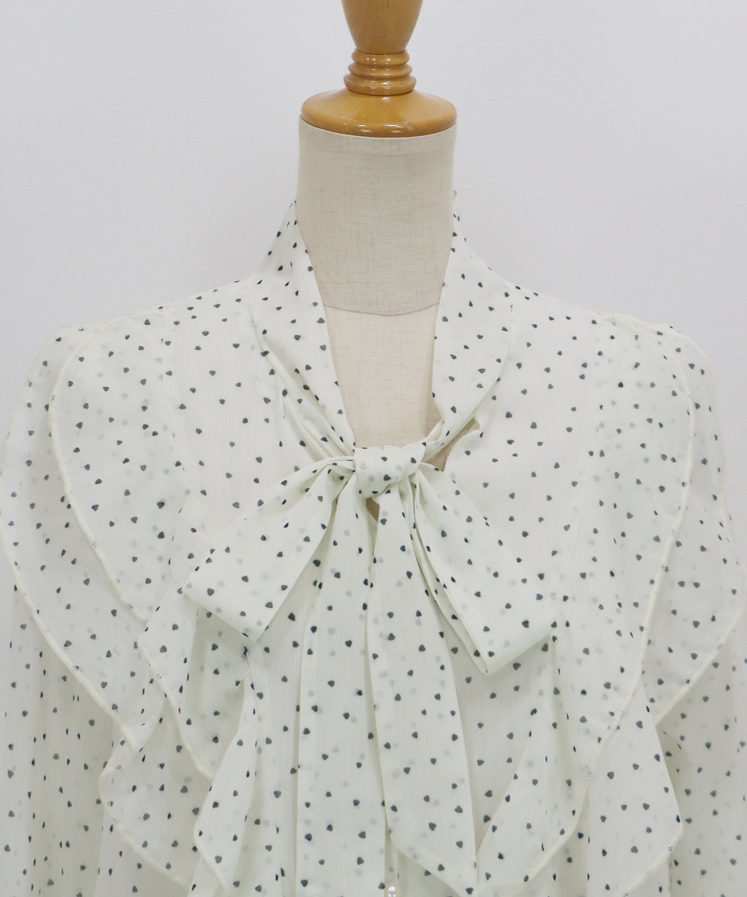 ハートドット×ボウタイが大人かわいいシアーフリルブラウス