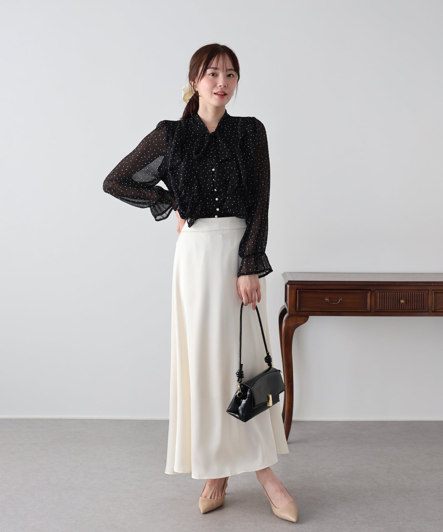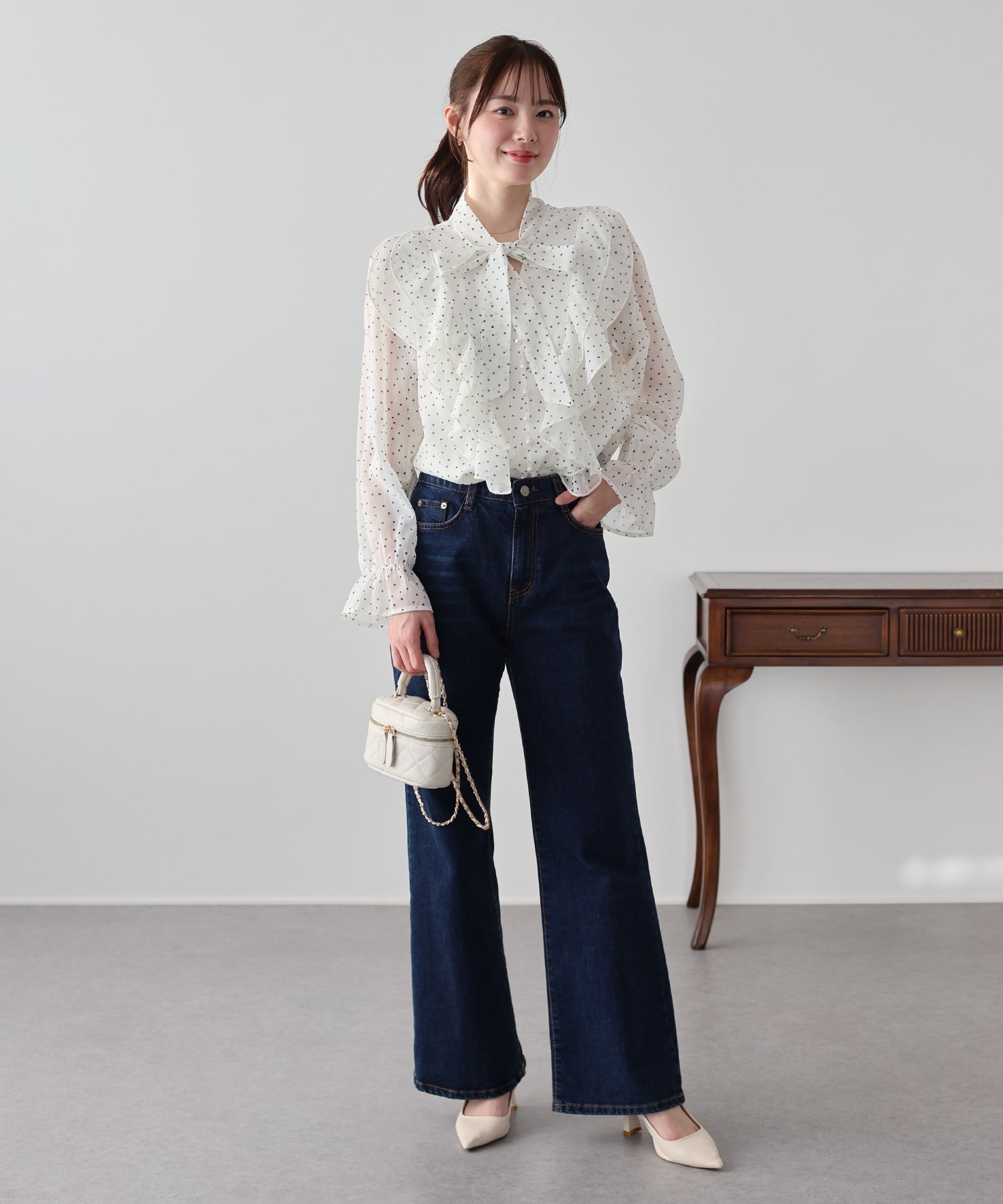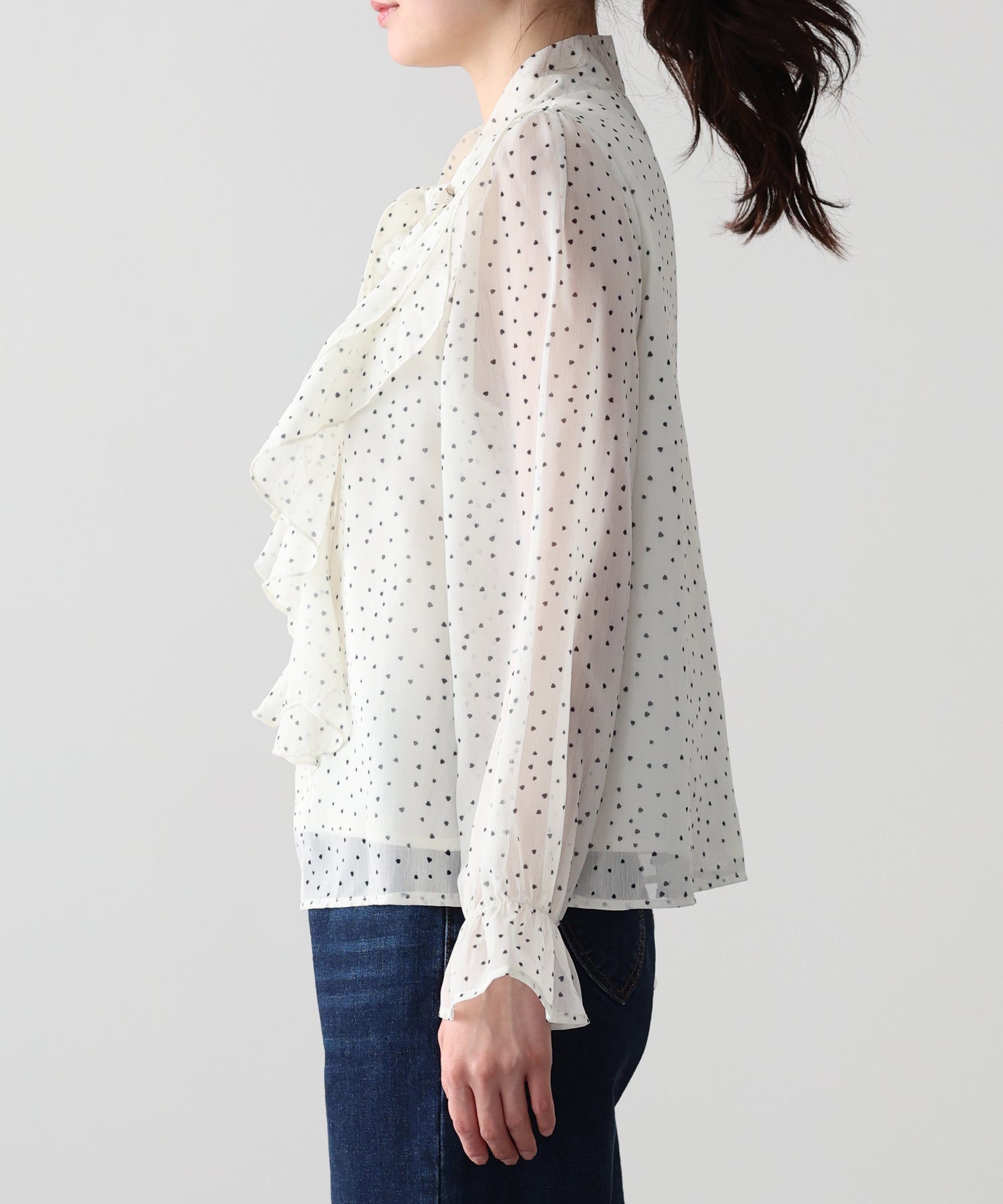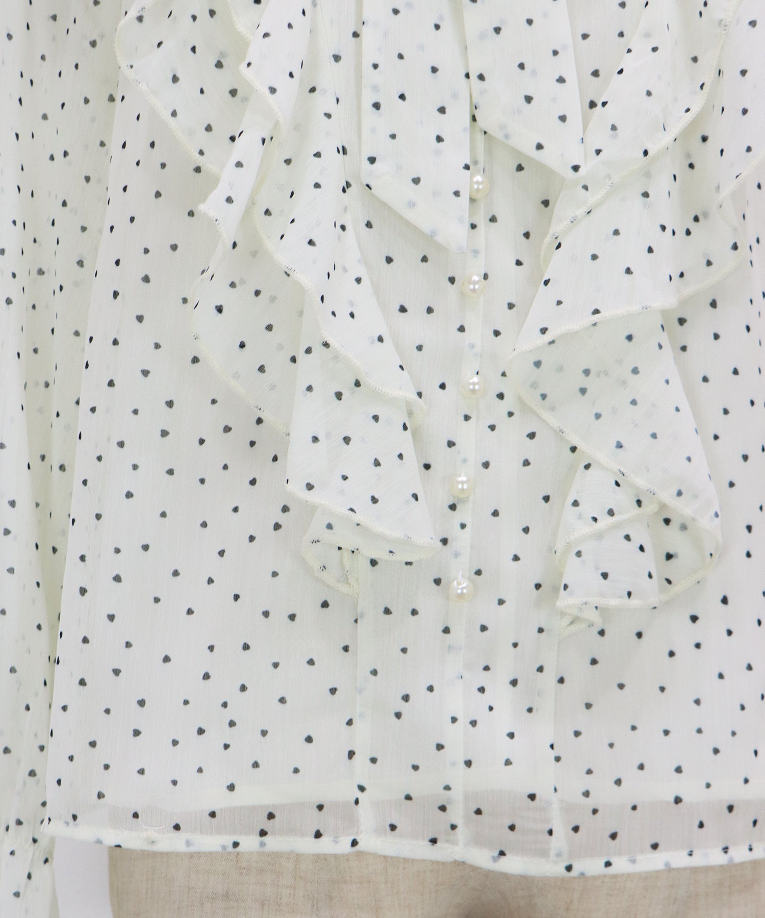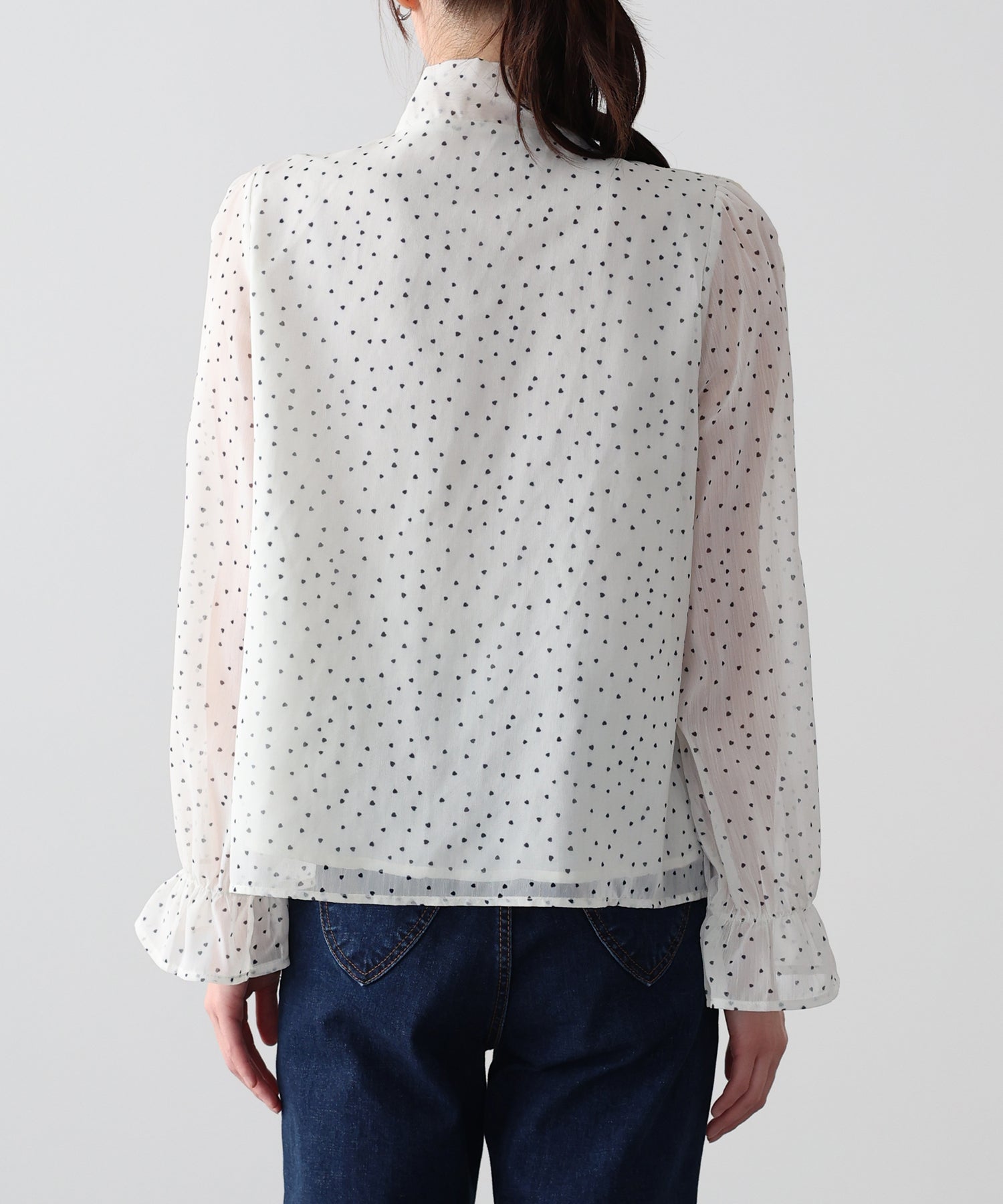 ハートドット×ボウタイが大人かわいいシアーフリルブラウス