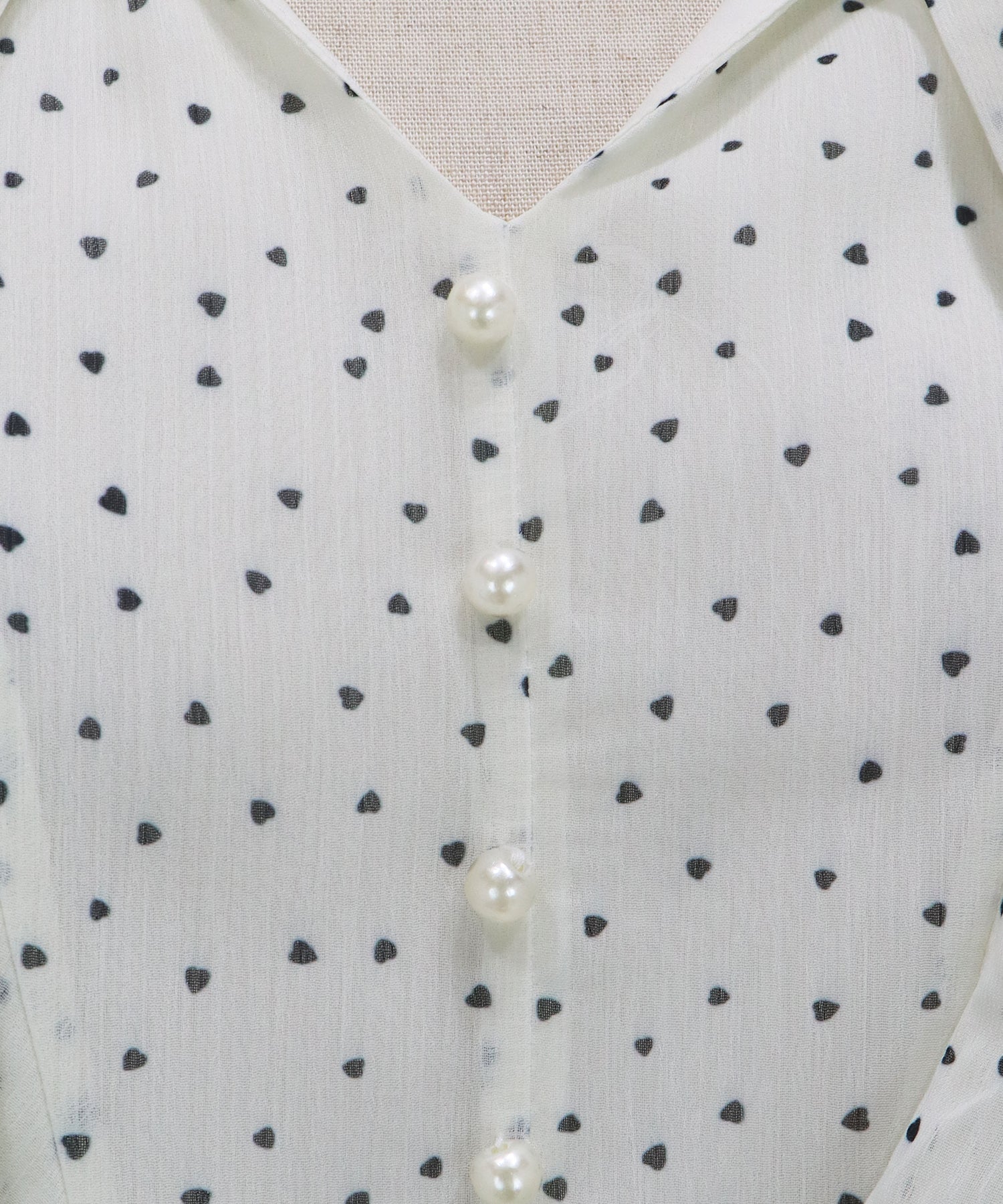 透け感のあるシアー素材に、ハートドット柄をのせた大人可愛いブラウス。