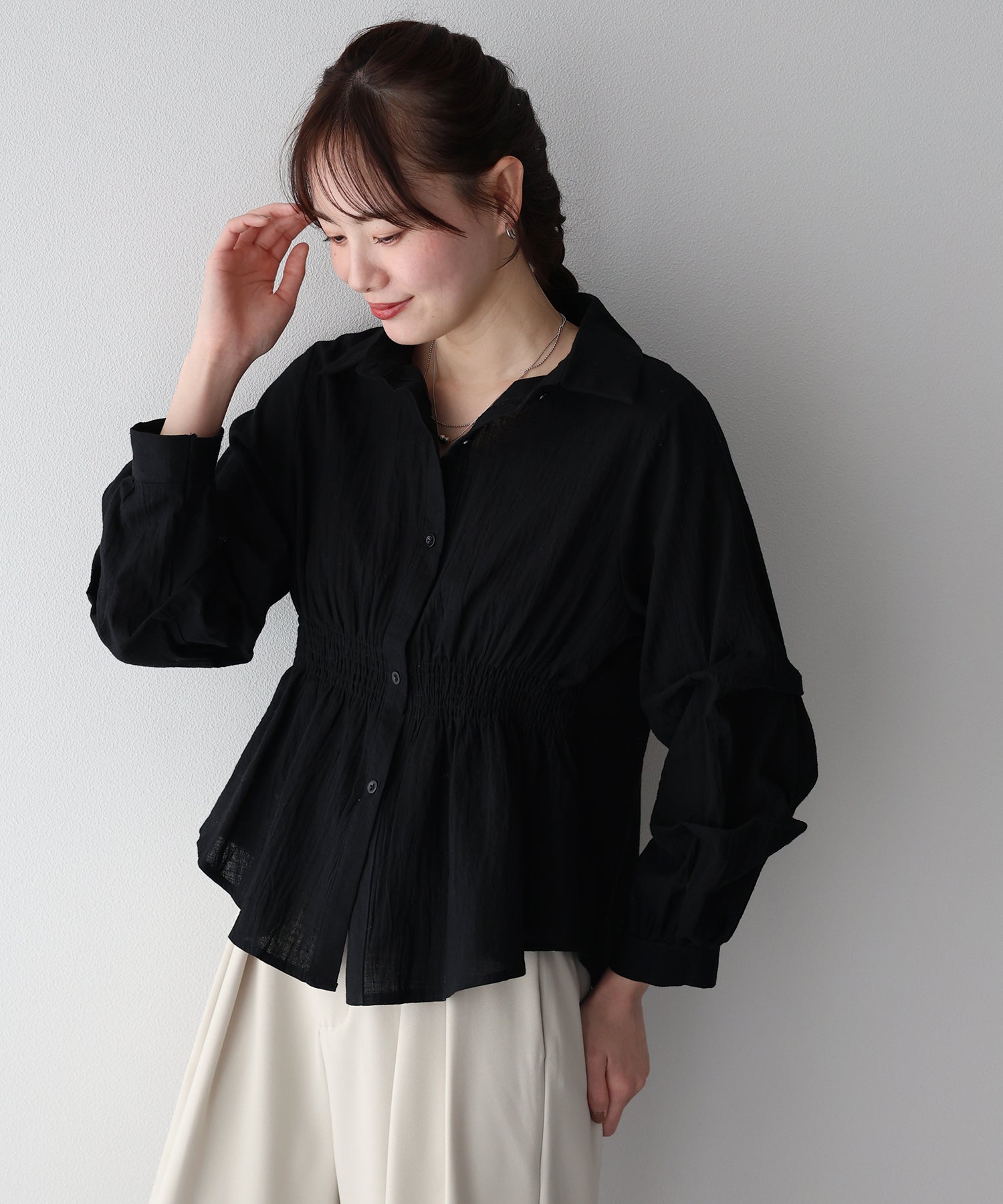 TIME SALE【早割5%OFF】ギャザーペプラムブラウス【ネコポス】