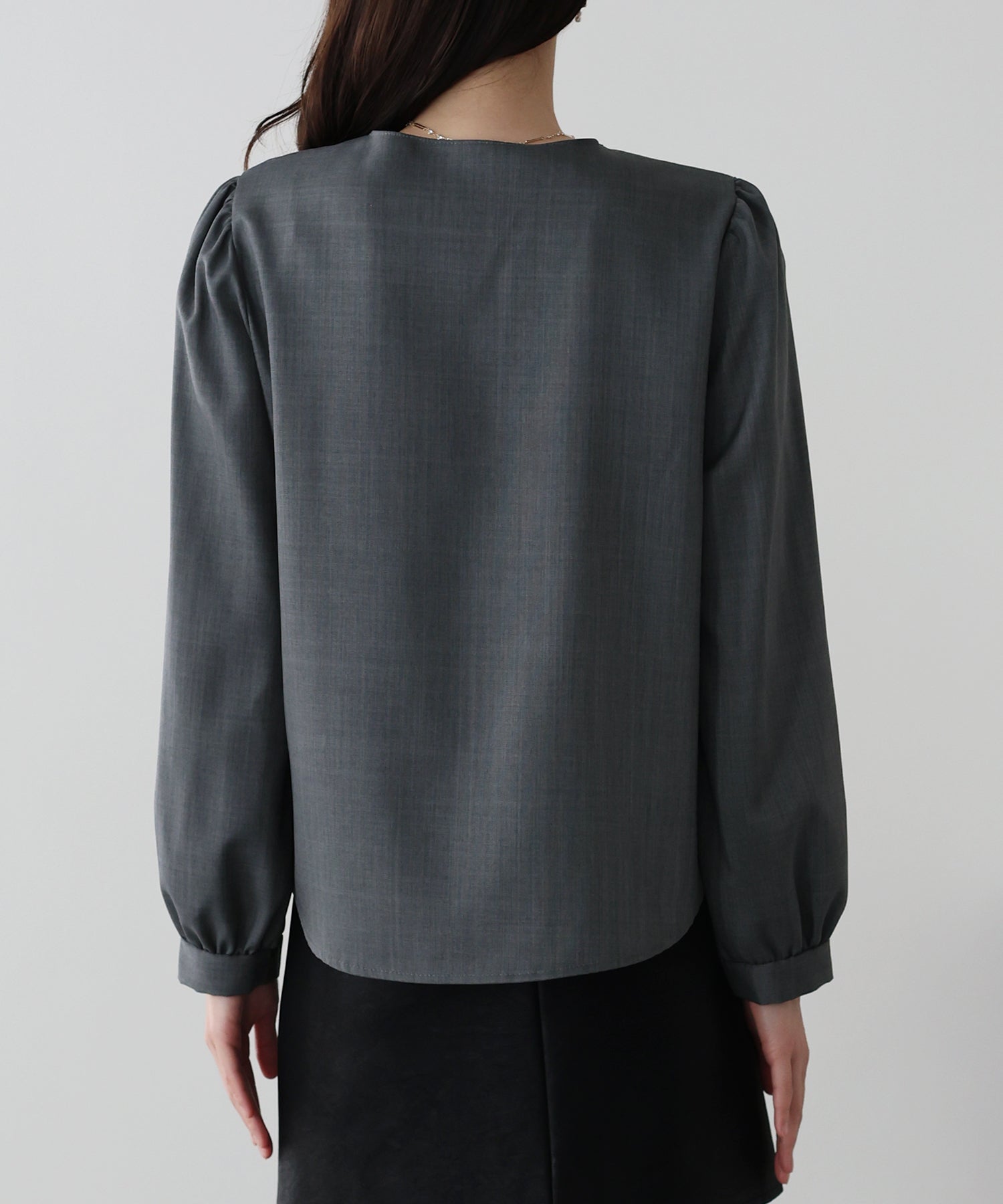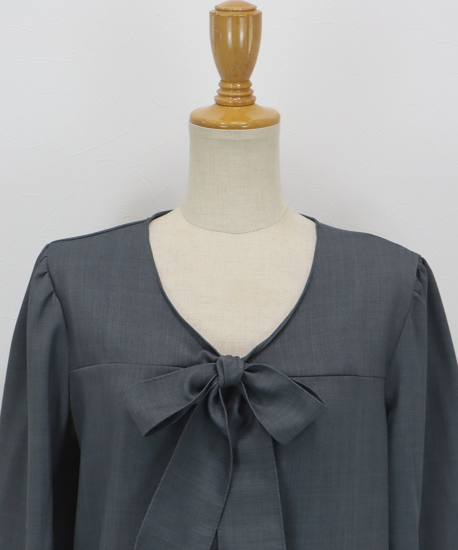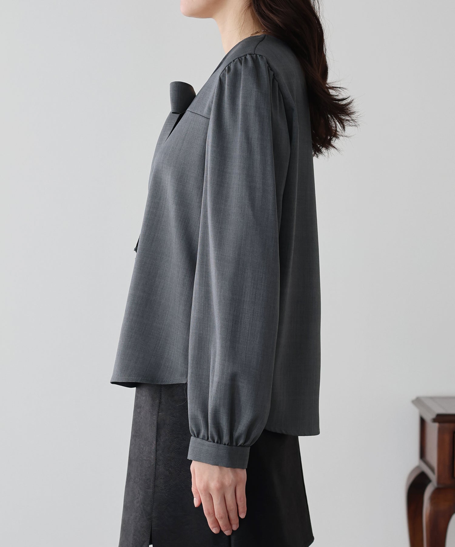 1枚でレディに仕上がるノーカラーボウタイブラウス