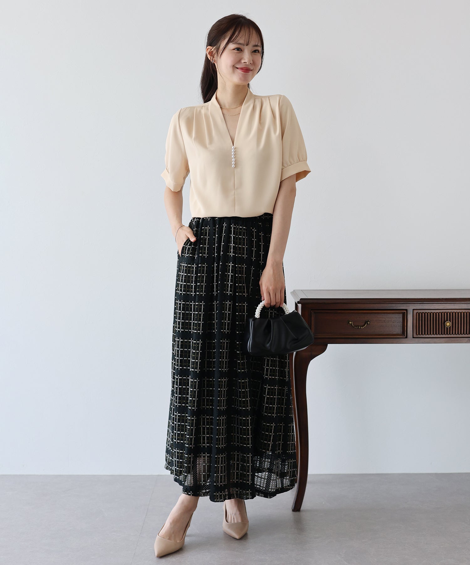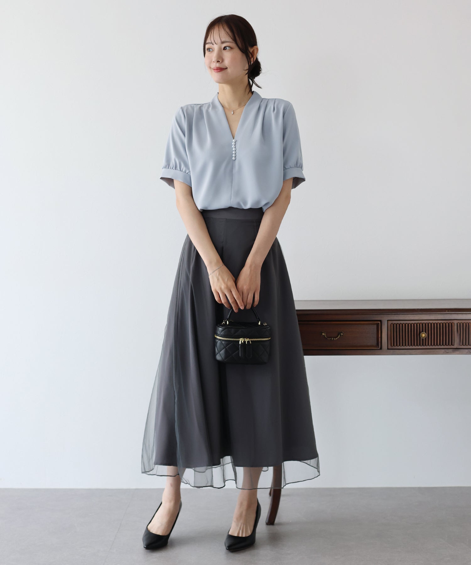 マーメイドスカートやレーススカート、タイトスカートなどと合わせて通勤用のオフィスカジュアルに。