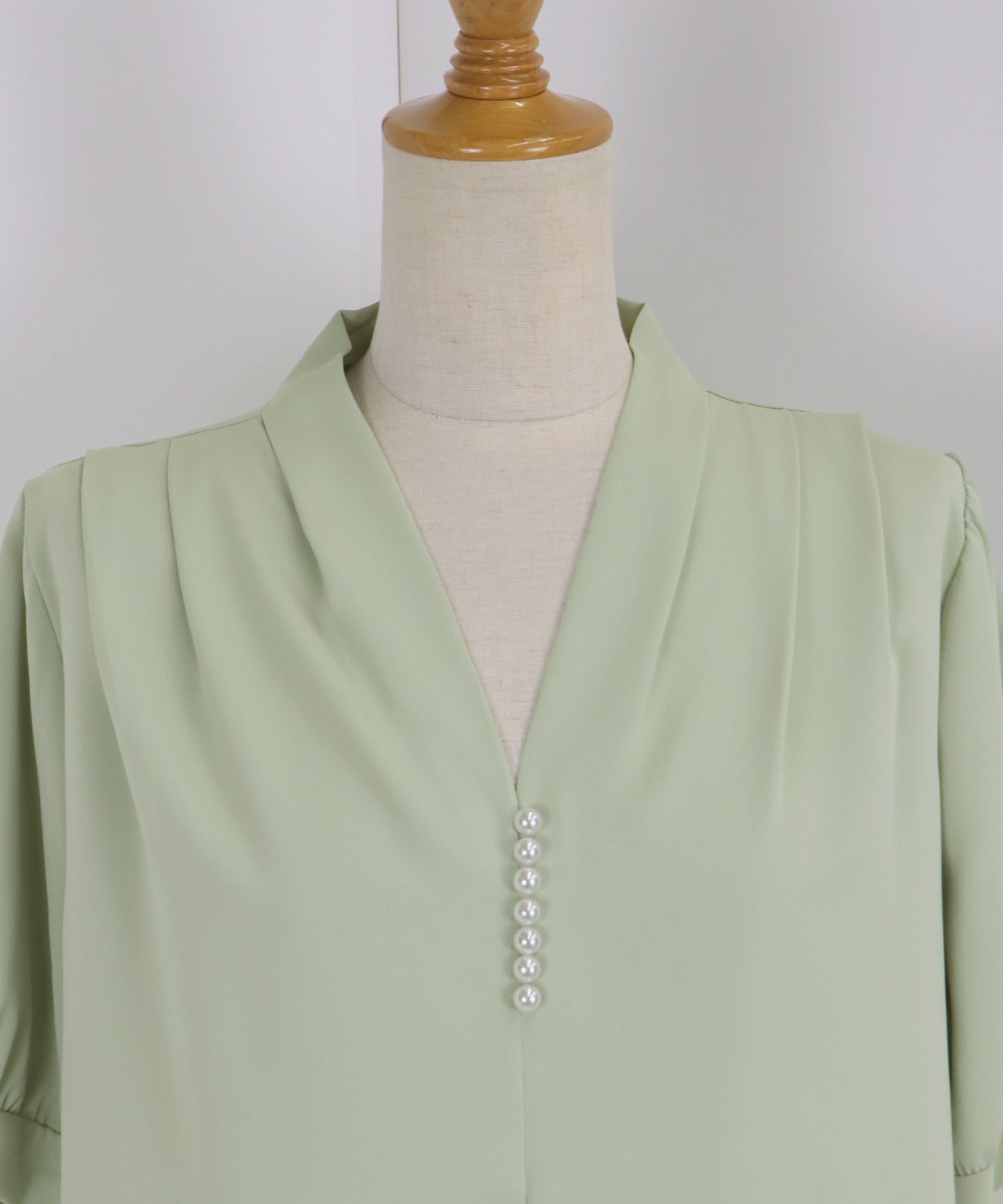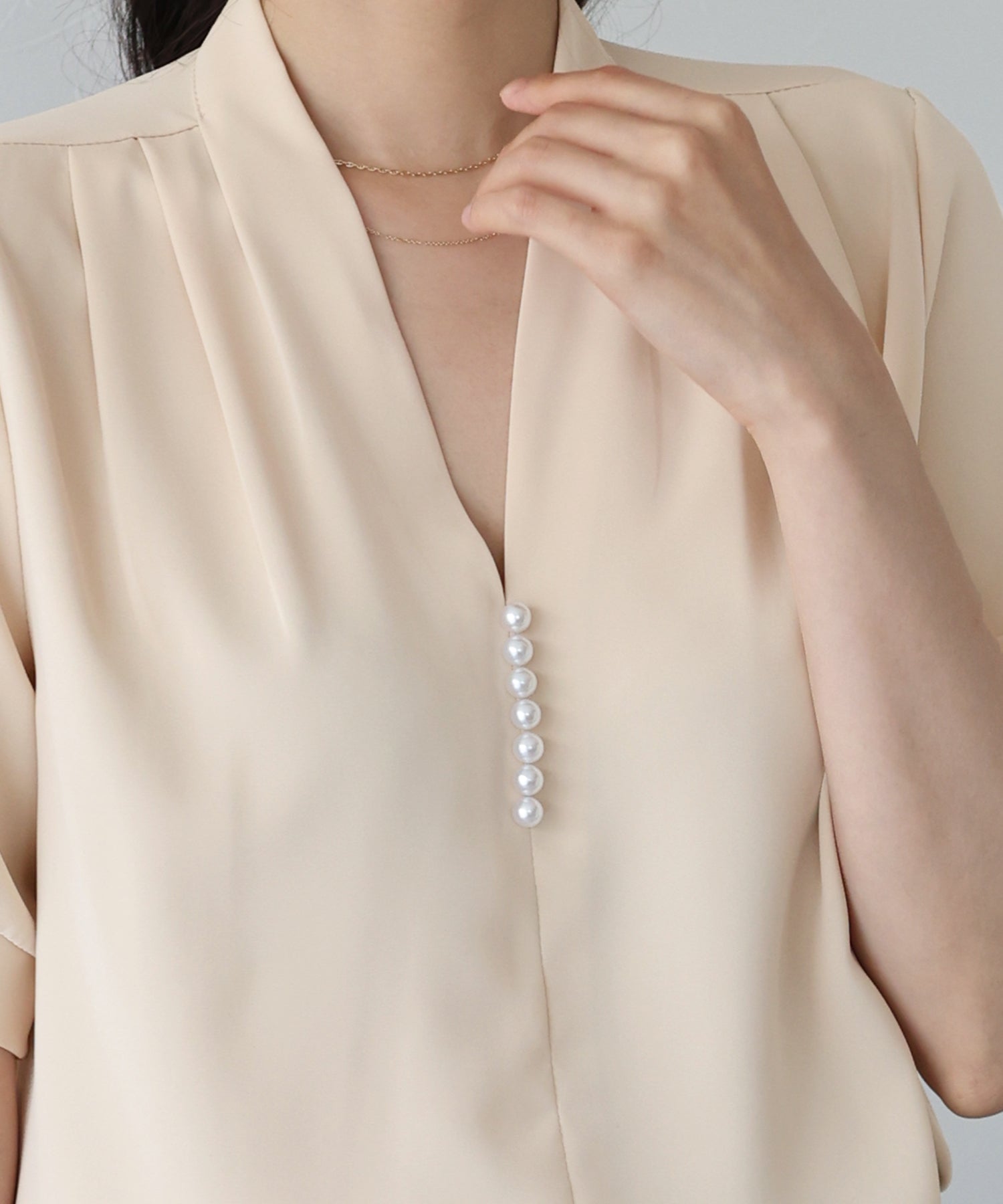 しっとりとした光沢のパール釦が華やかで、アクセサリーを着けなくても華やかで女性らしい着こなしが楽しめます。