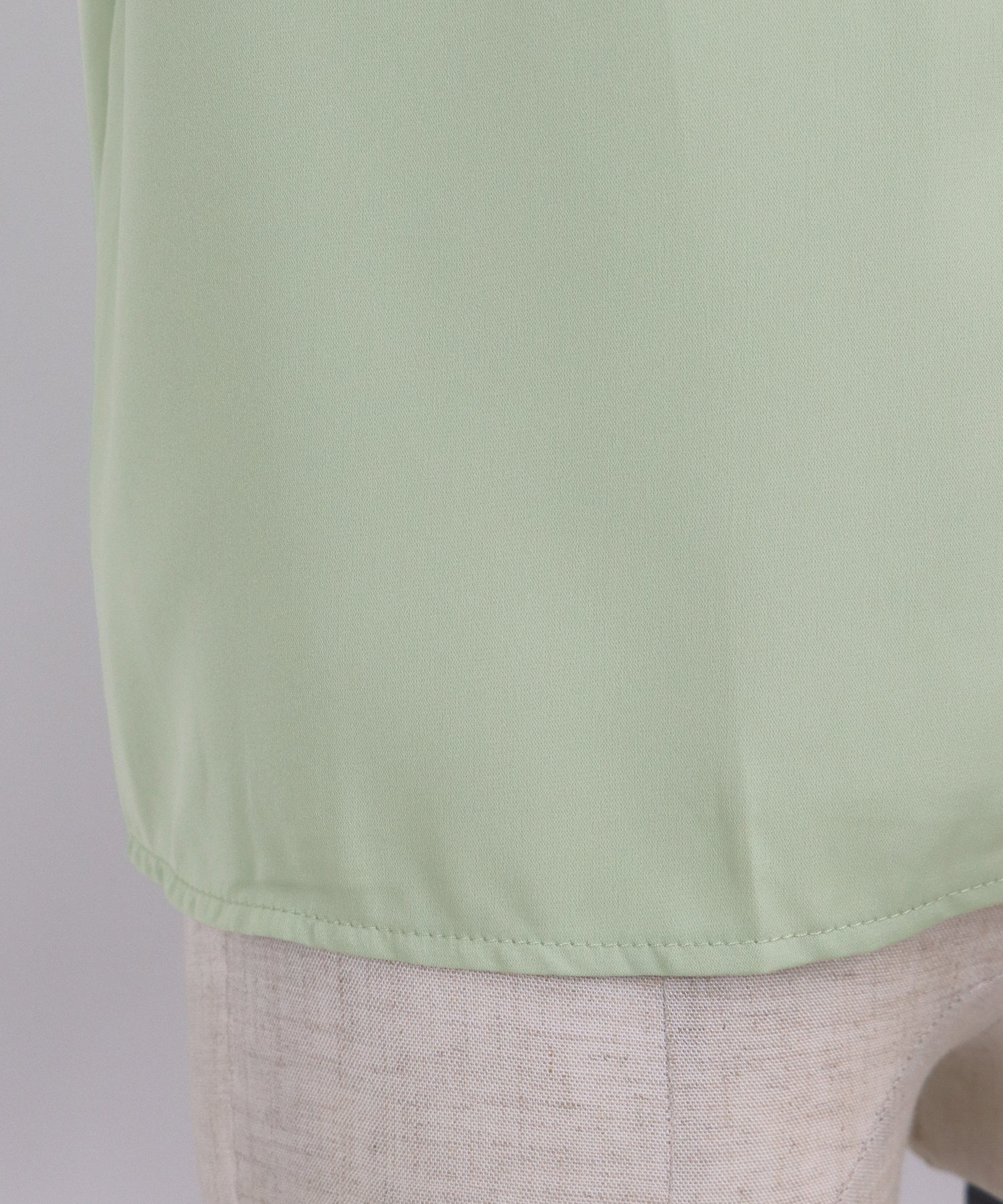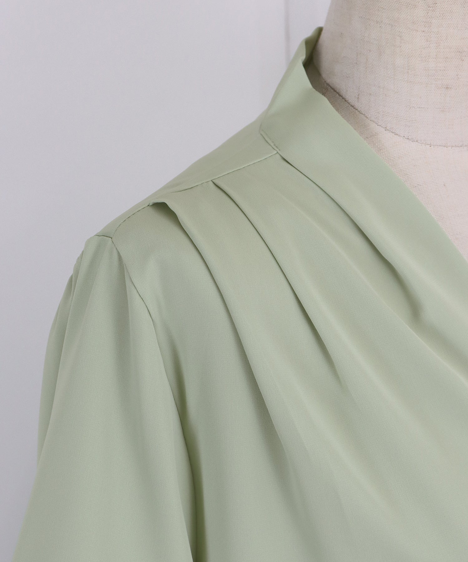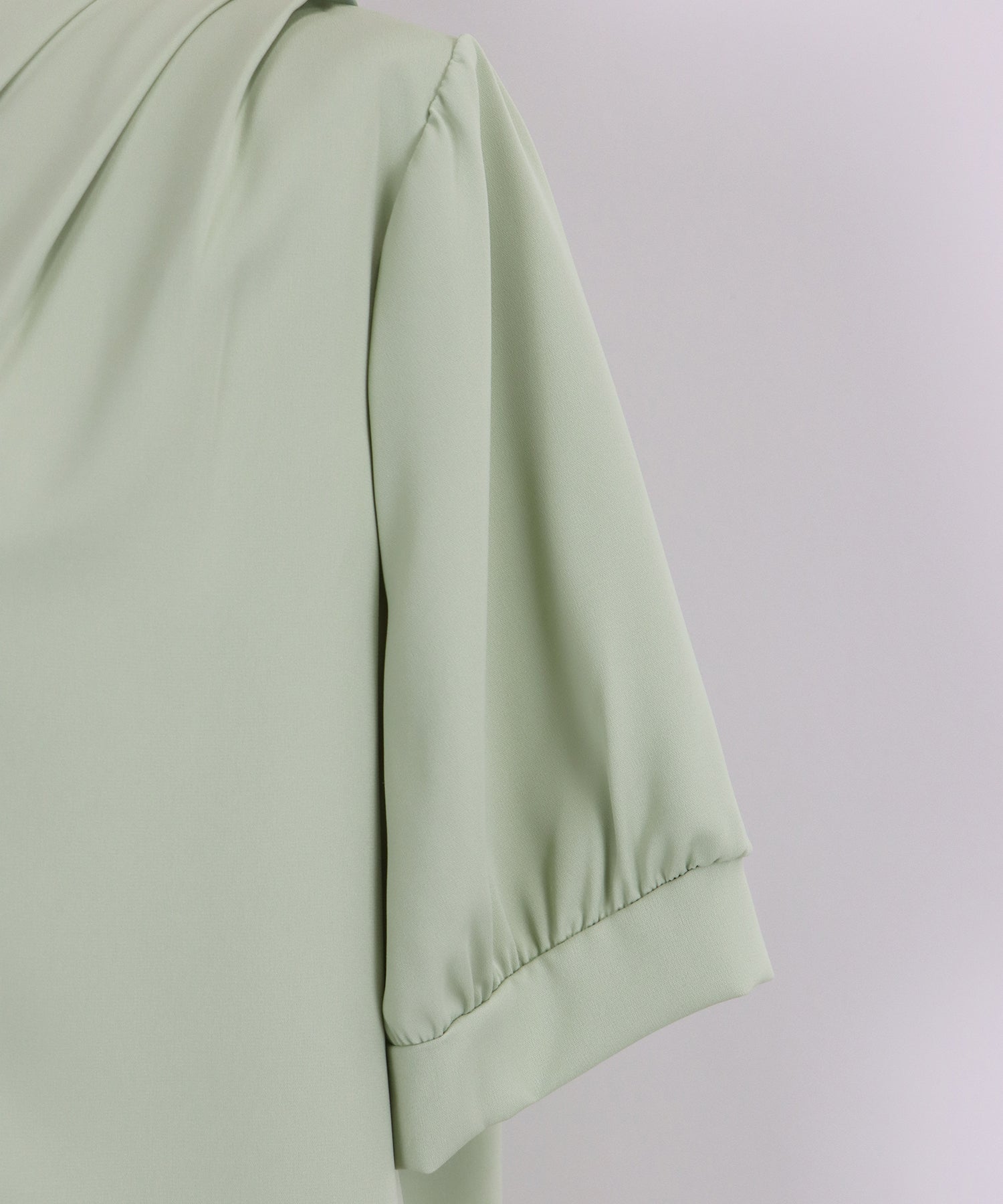 短すぎない袖丈なので二の腕をカバーし、肩まわりはタックでキレイなドレープ感を演出してくれます。