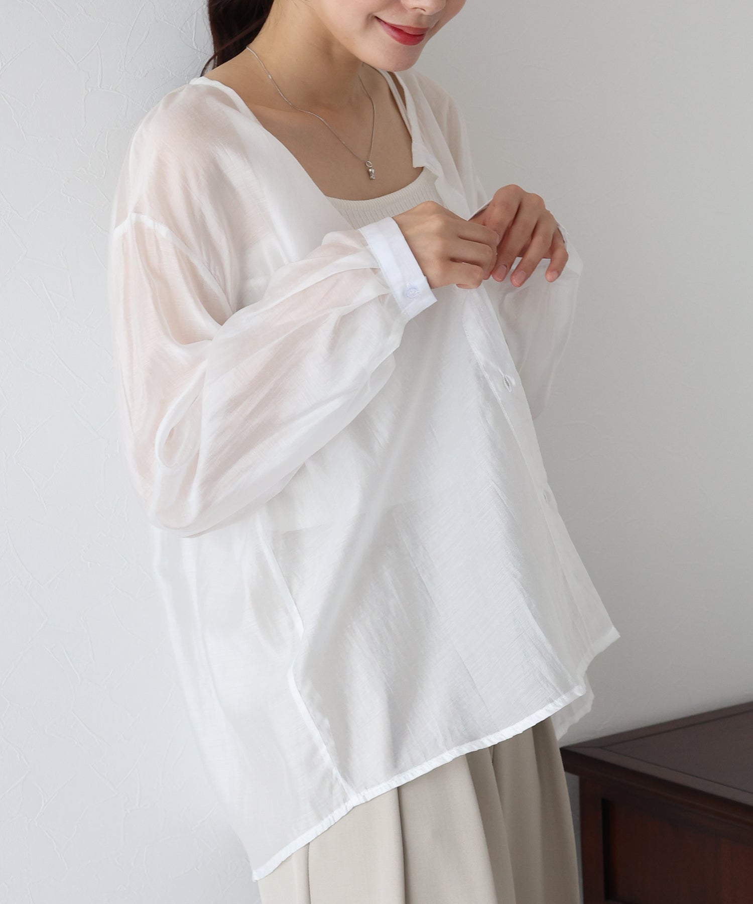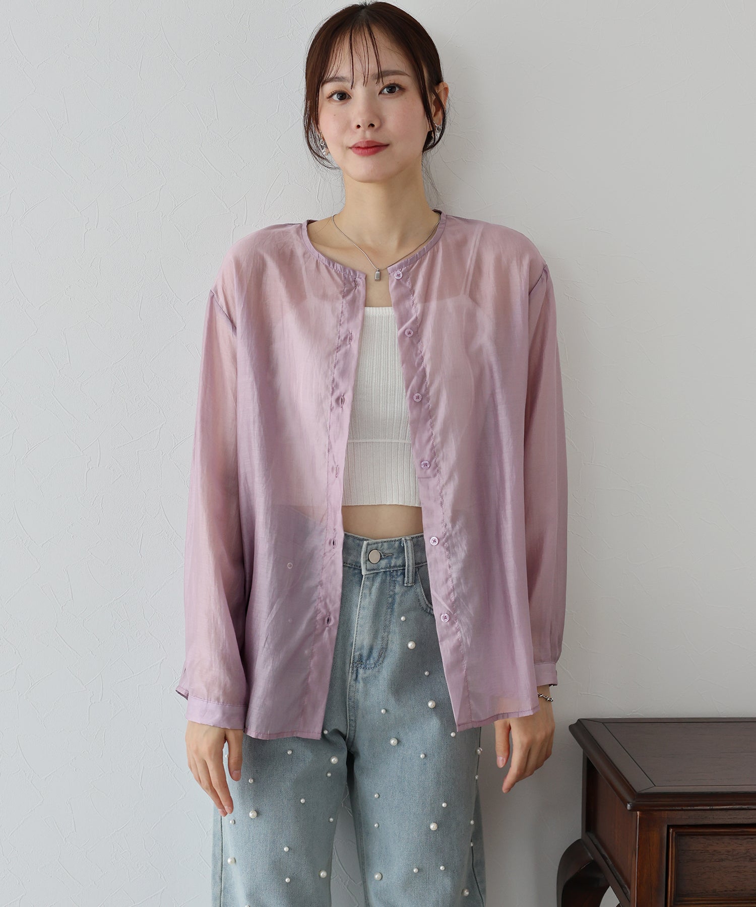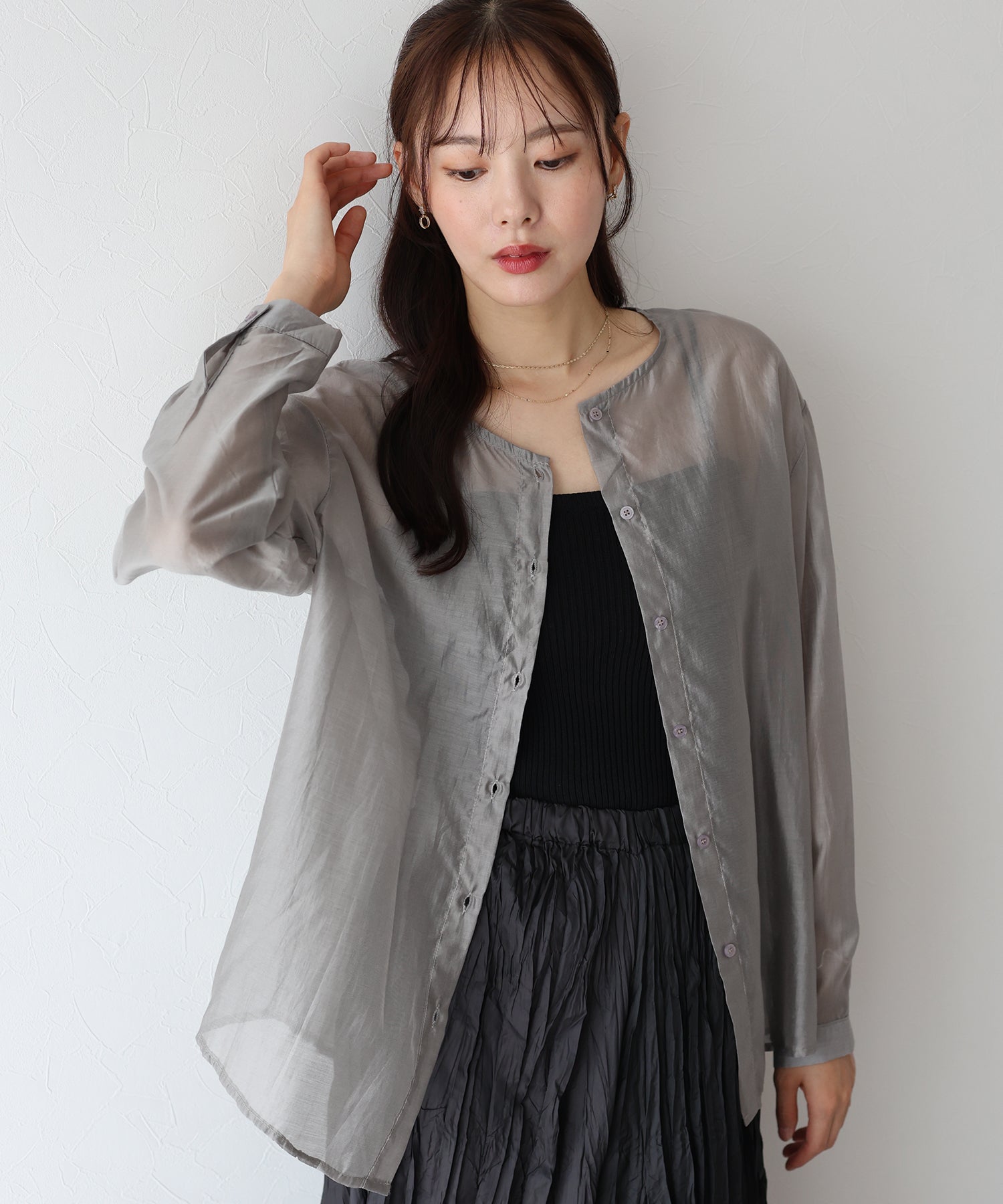 【SALE】ノーカラーシアーシャツ【ネコポス】