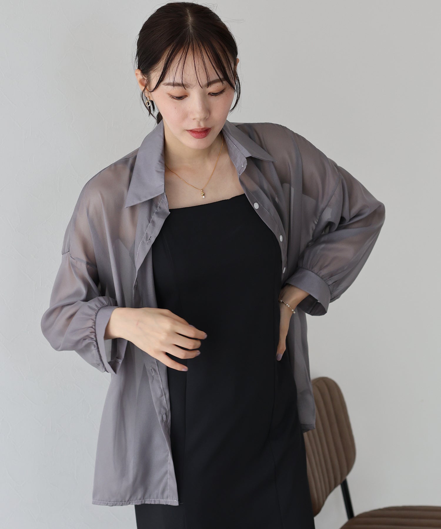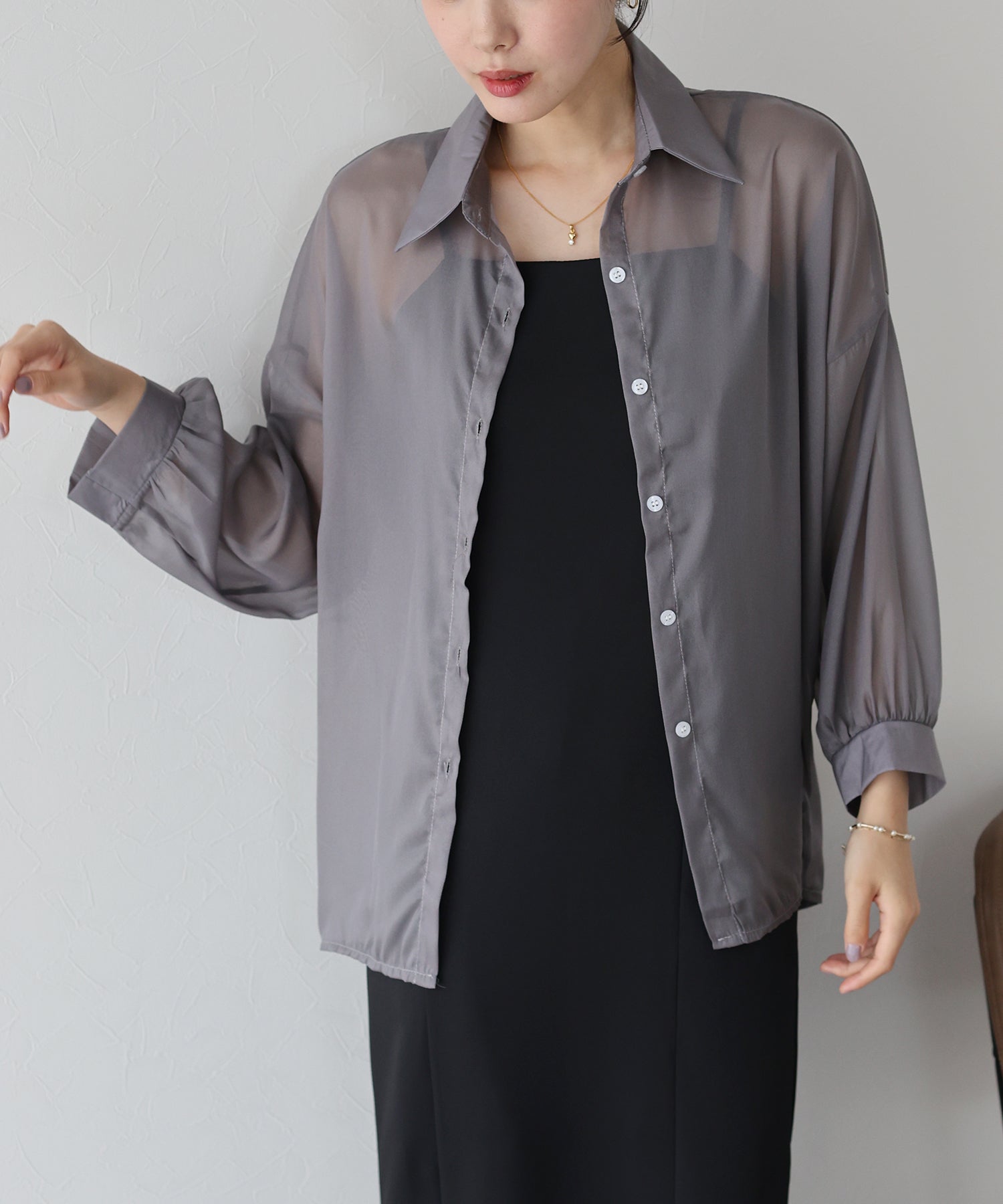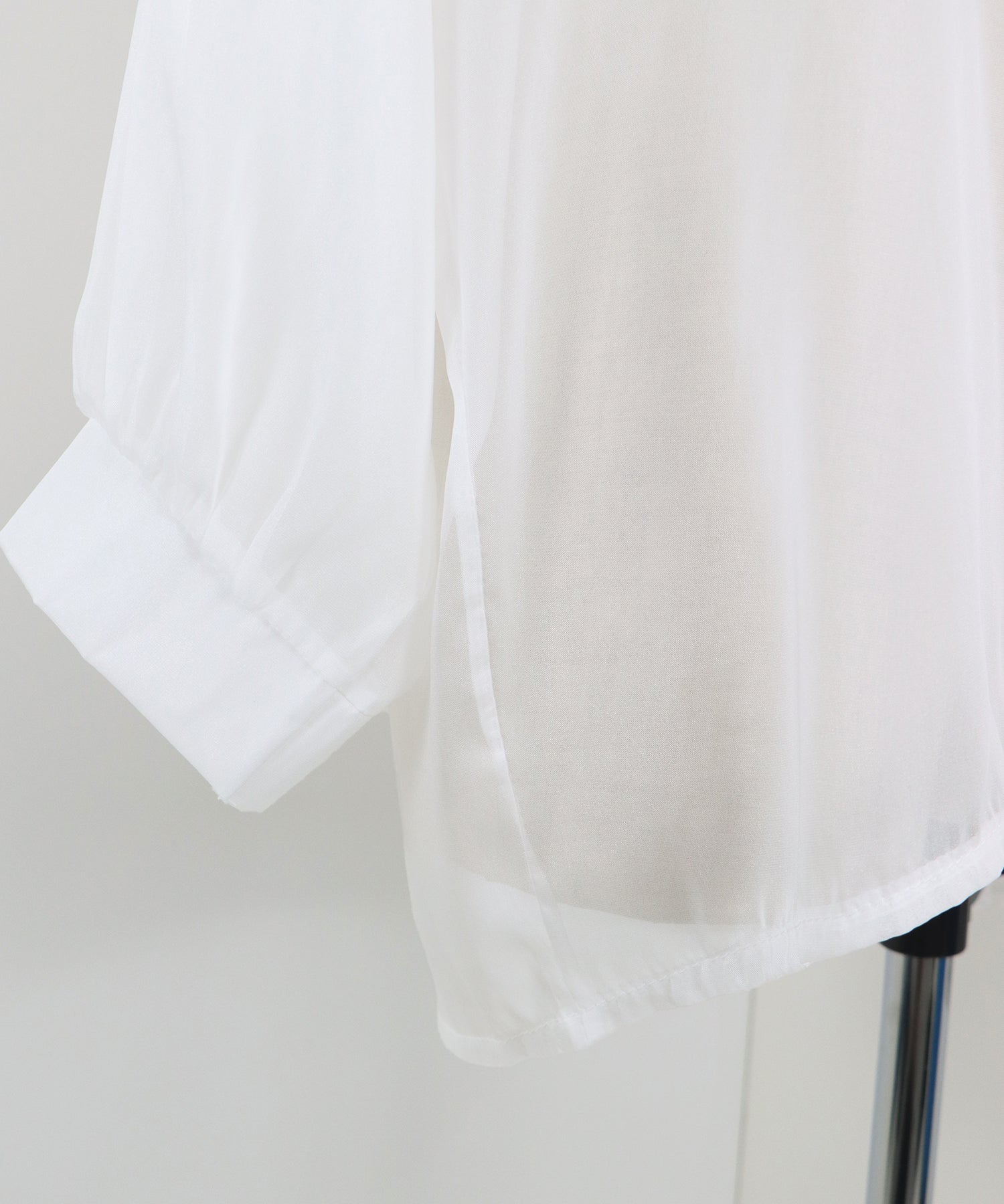 透け感が上品なシアー素材 厚さ:薄手 透け感:あり 伸縮性:なし |