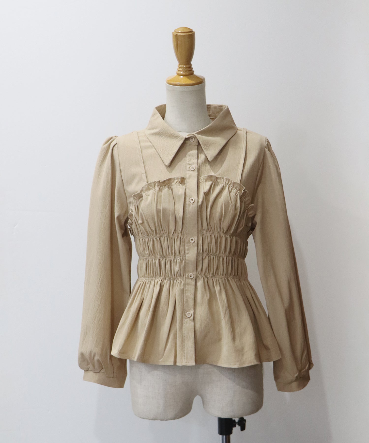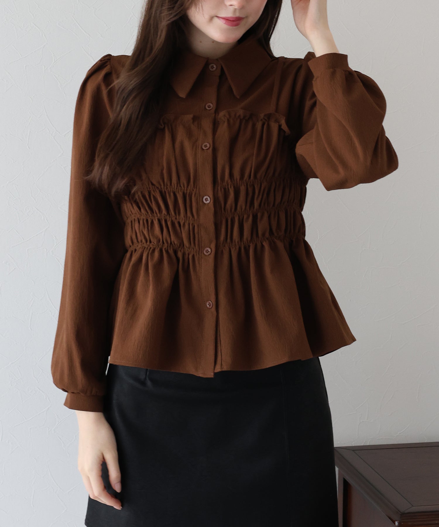トレンドライクなシャーリングビスチェレイヤードシャツ