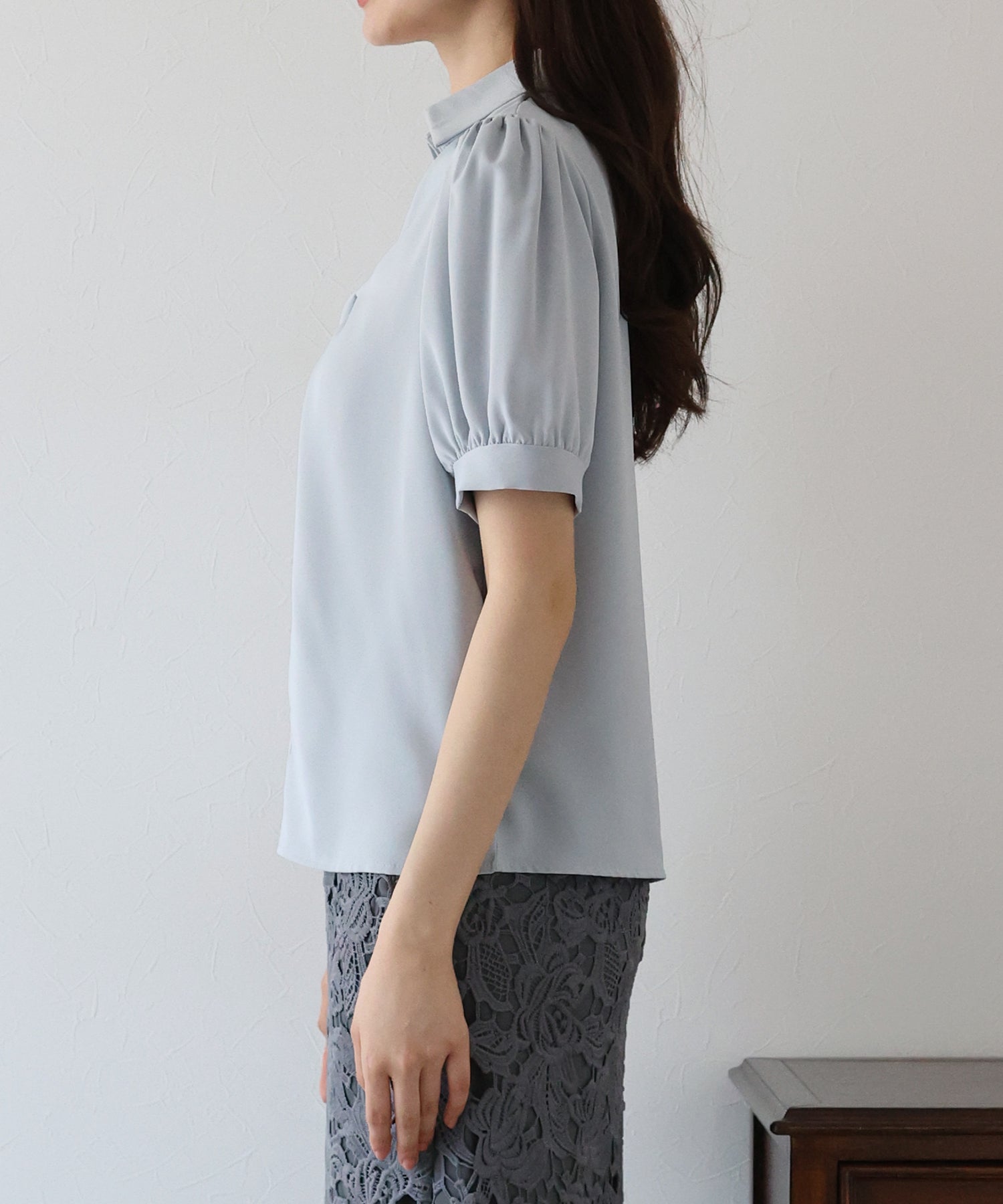 スタンドカラーボリュームスリーブシャツ