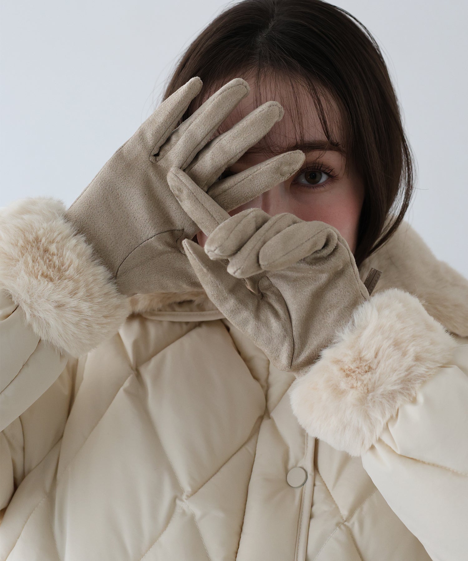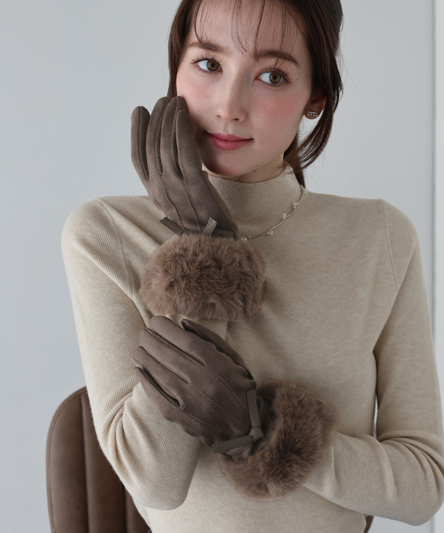 ボリュームたっぷりのフェイクファーが高見えするフェミニンな手袋。