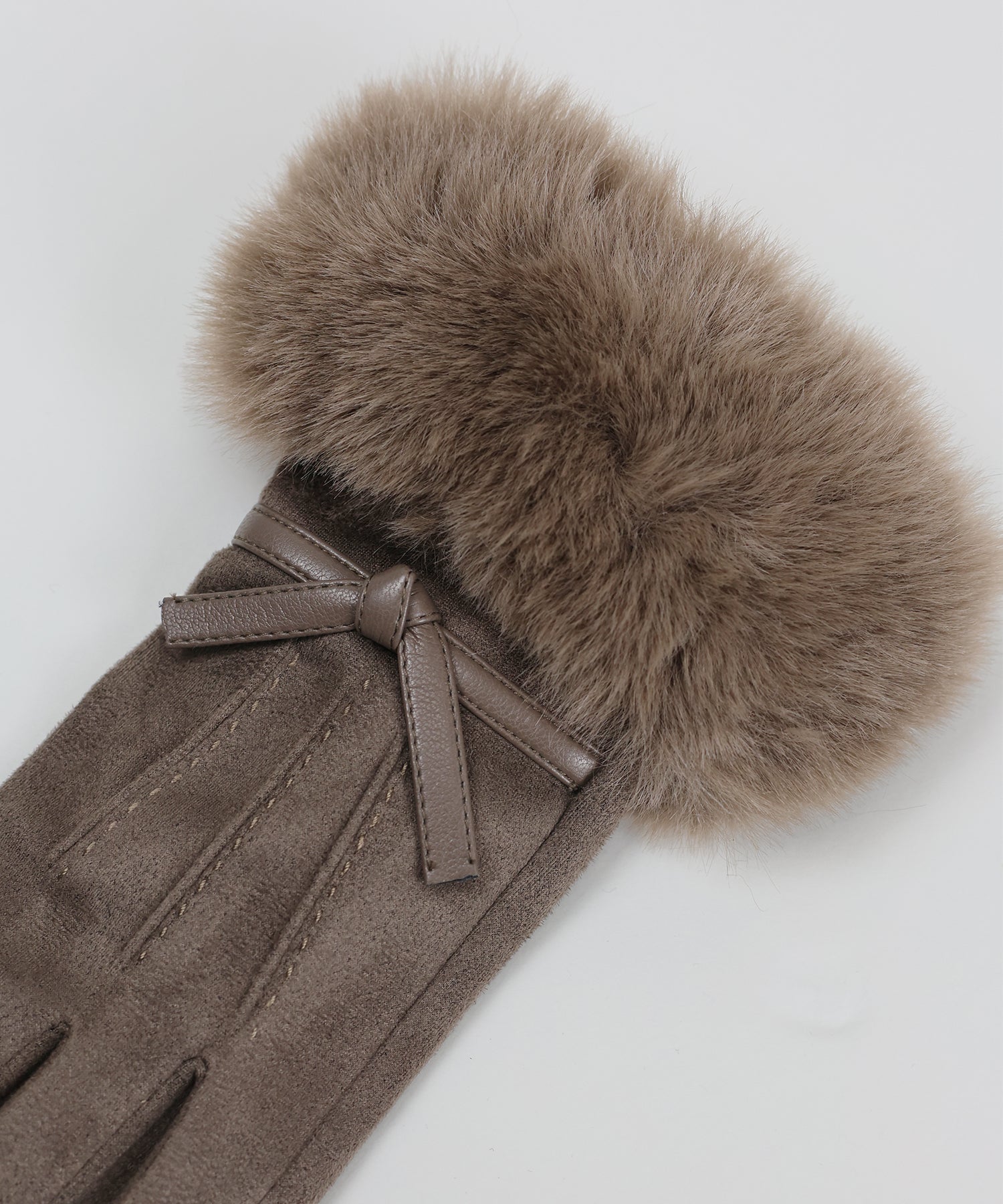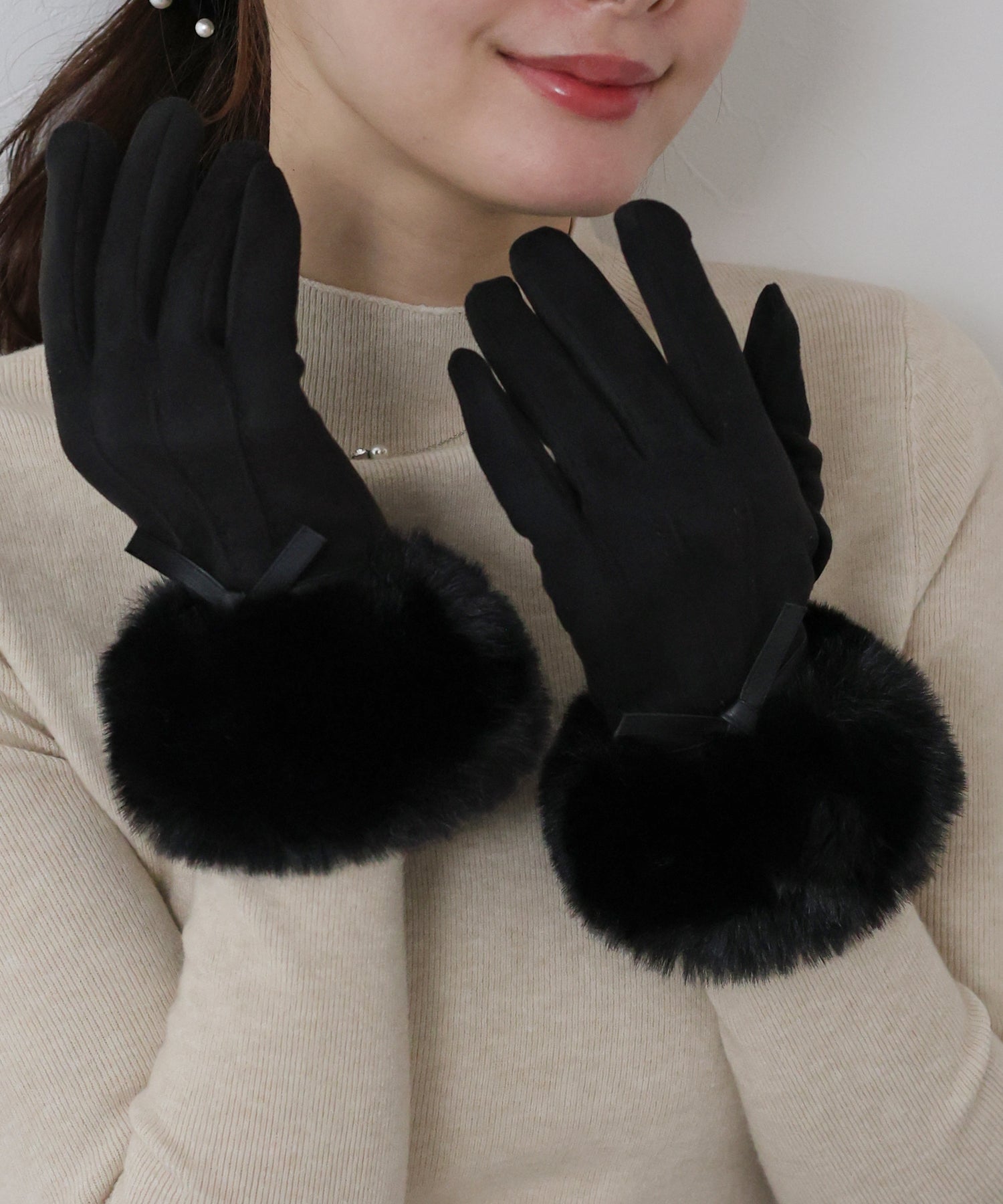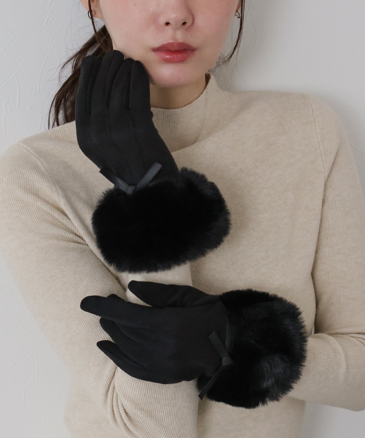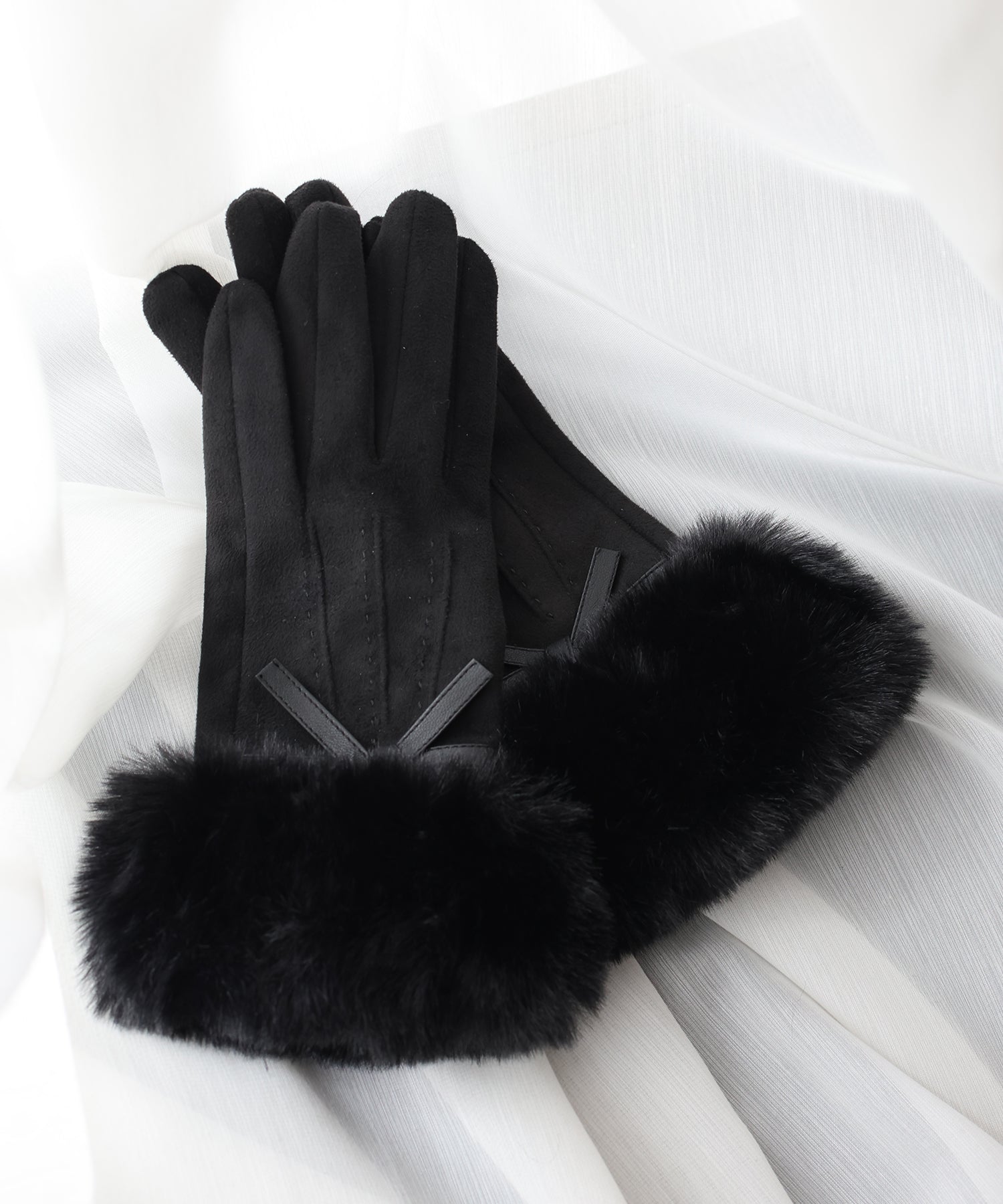 冬コーデのアクセントになるフェミニンなリボン&ファー付き手袋