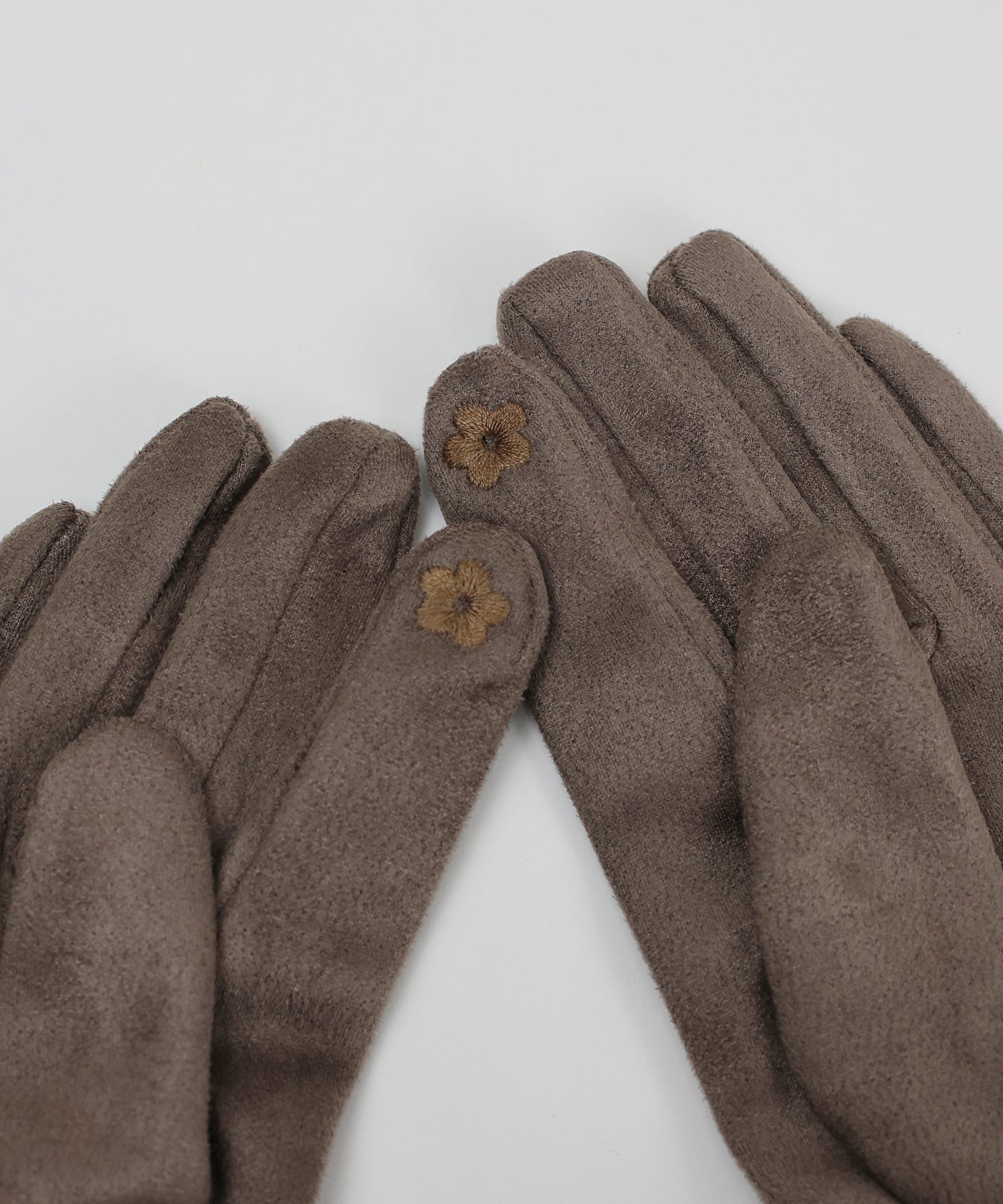 人差し指にはキュートなフラワー型刺繍を施し、タッチパネルに対応しているのも嬉しいポイント!