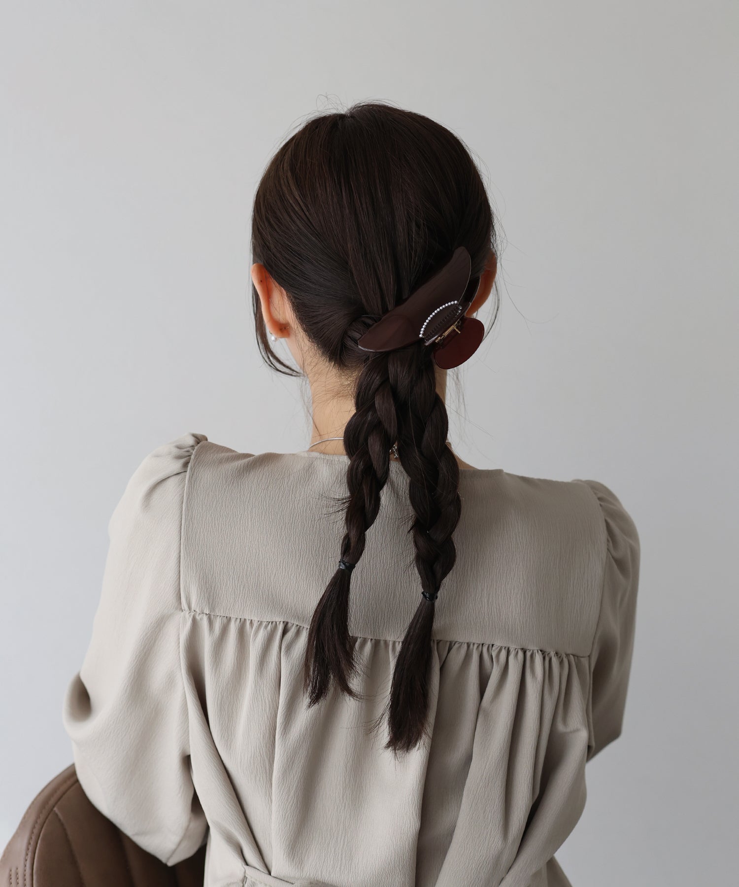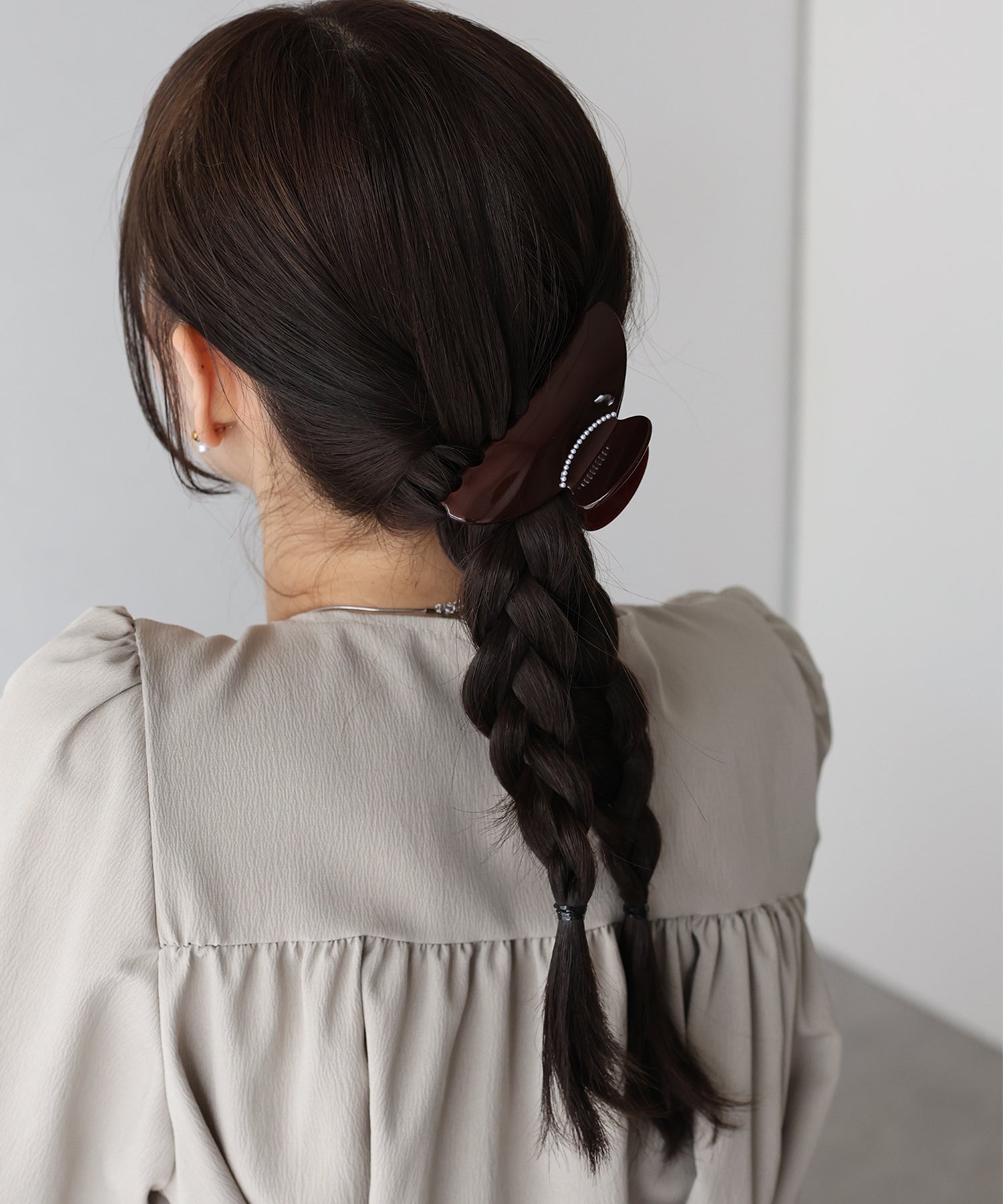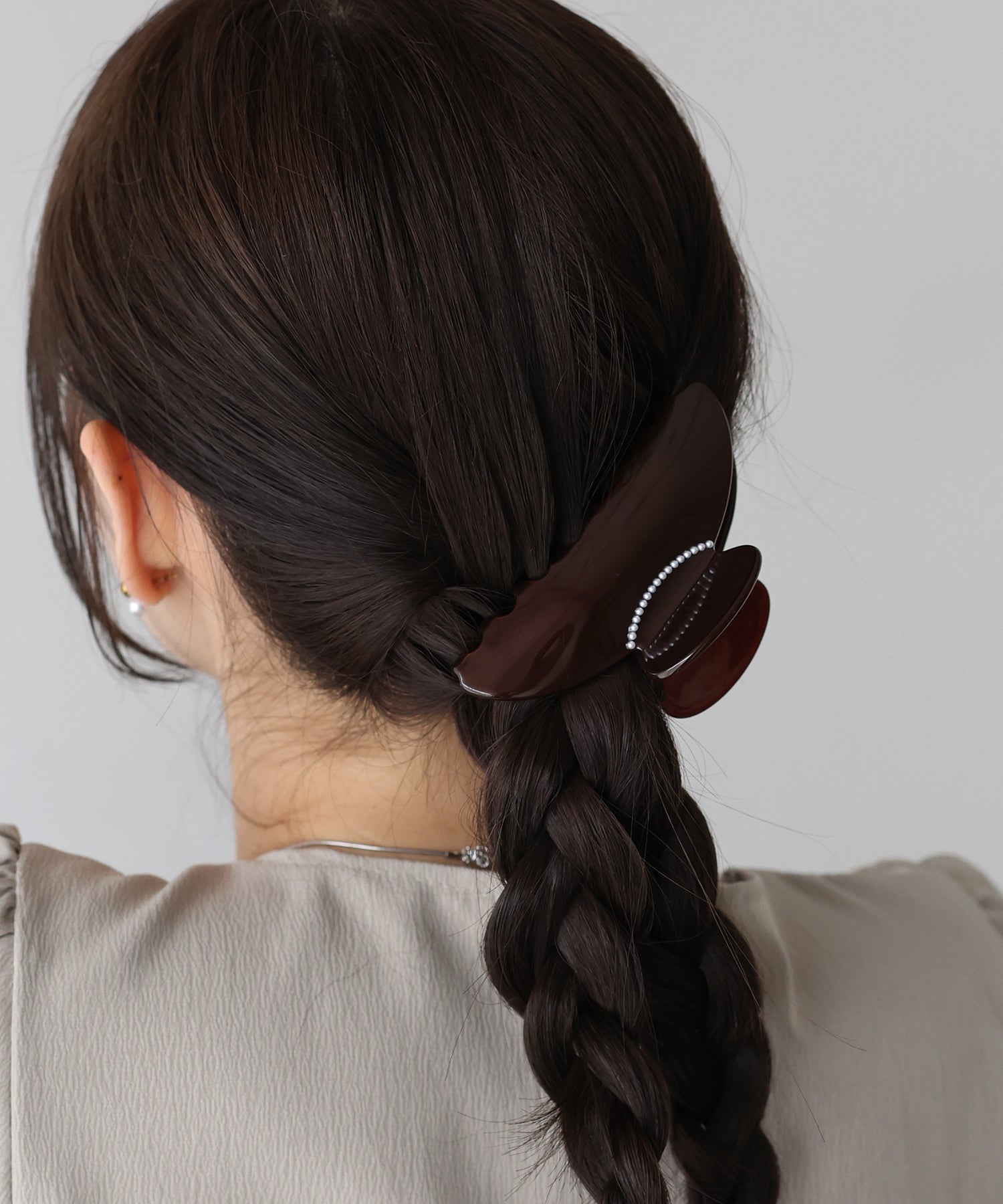シンプルなまとめ髪にさっと付けるだけで、洗練された印象に。