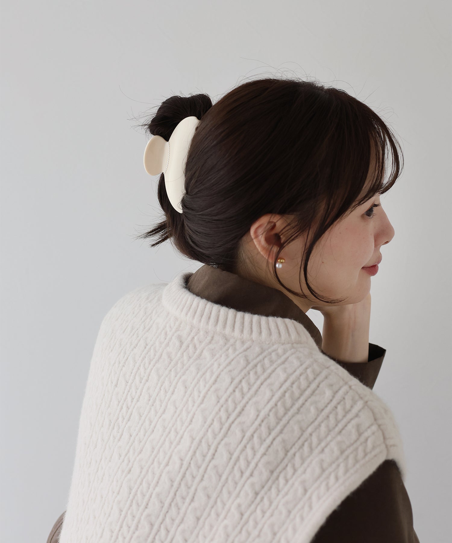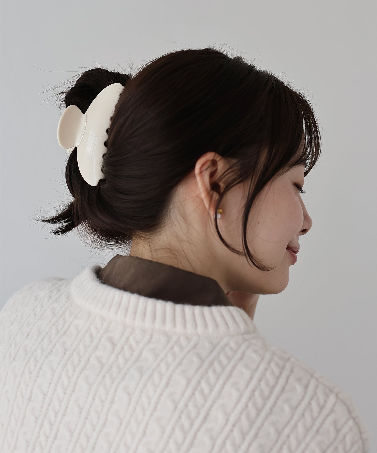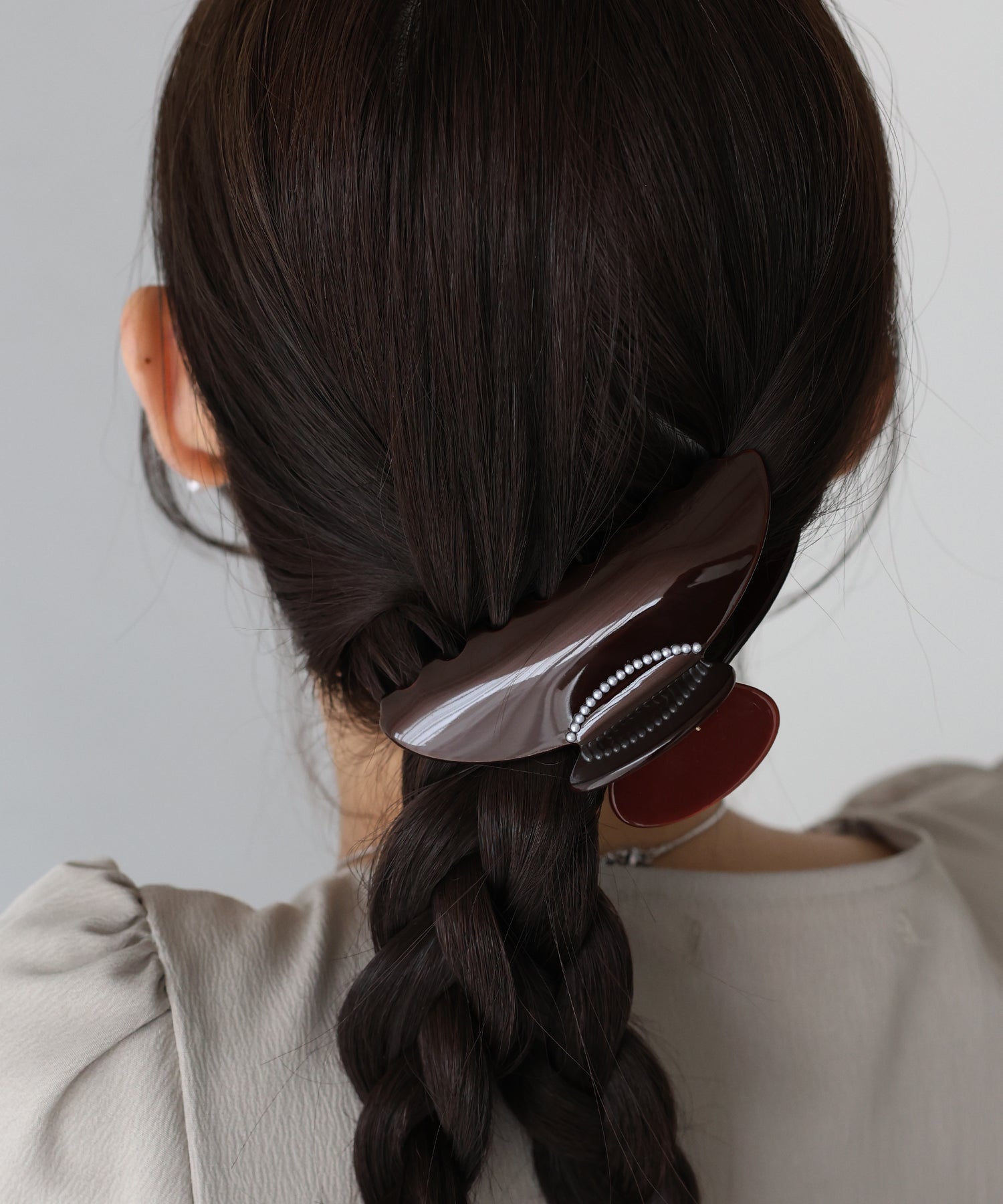 シンプルなまとめ髪にさっと付けるだけで、洗練された印象に。