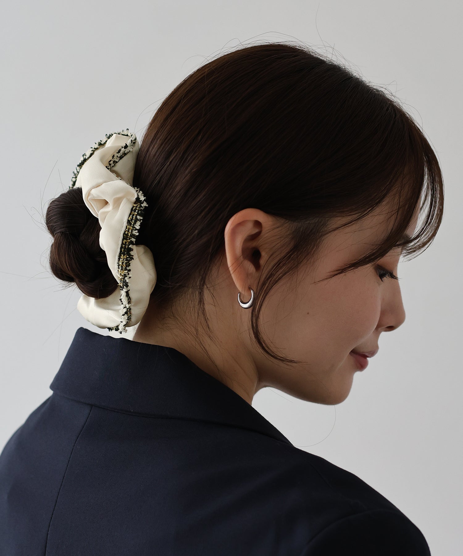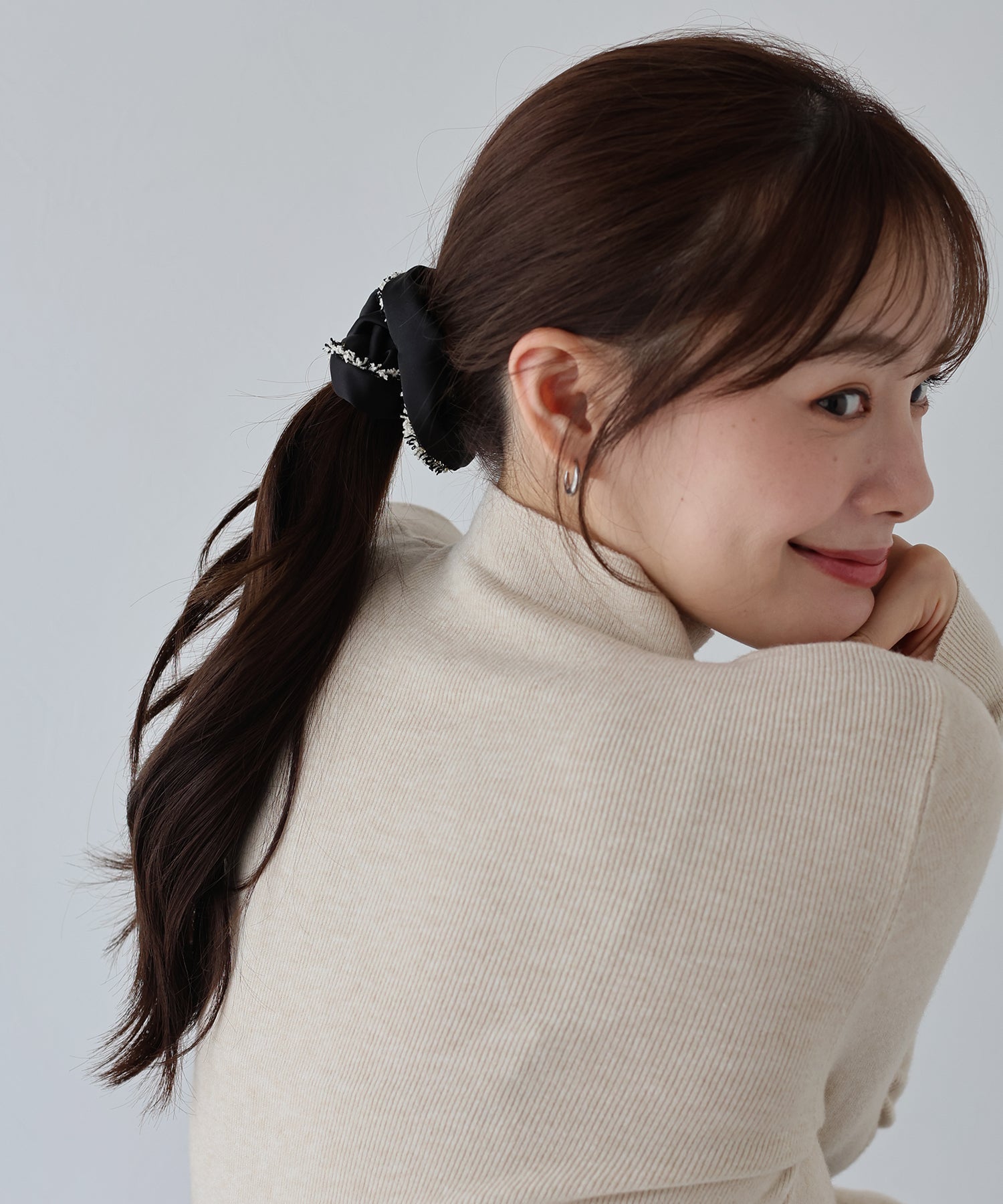 ポニーテールやお団子ヘアに取り入れるだけで、フェミニンでトレンドライクなスタイルに。