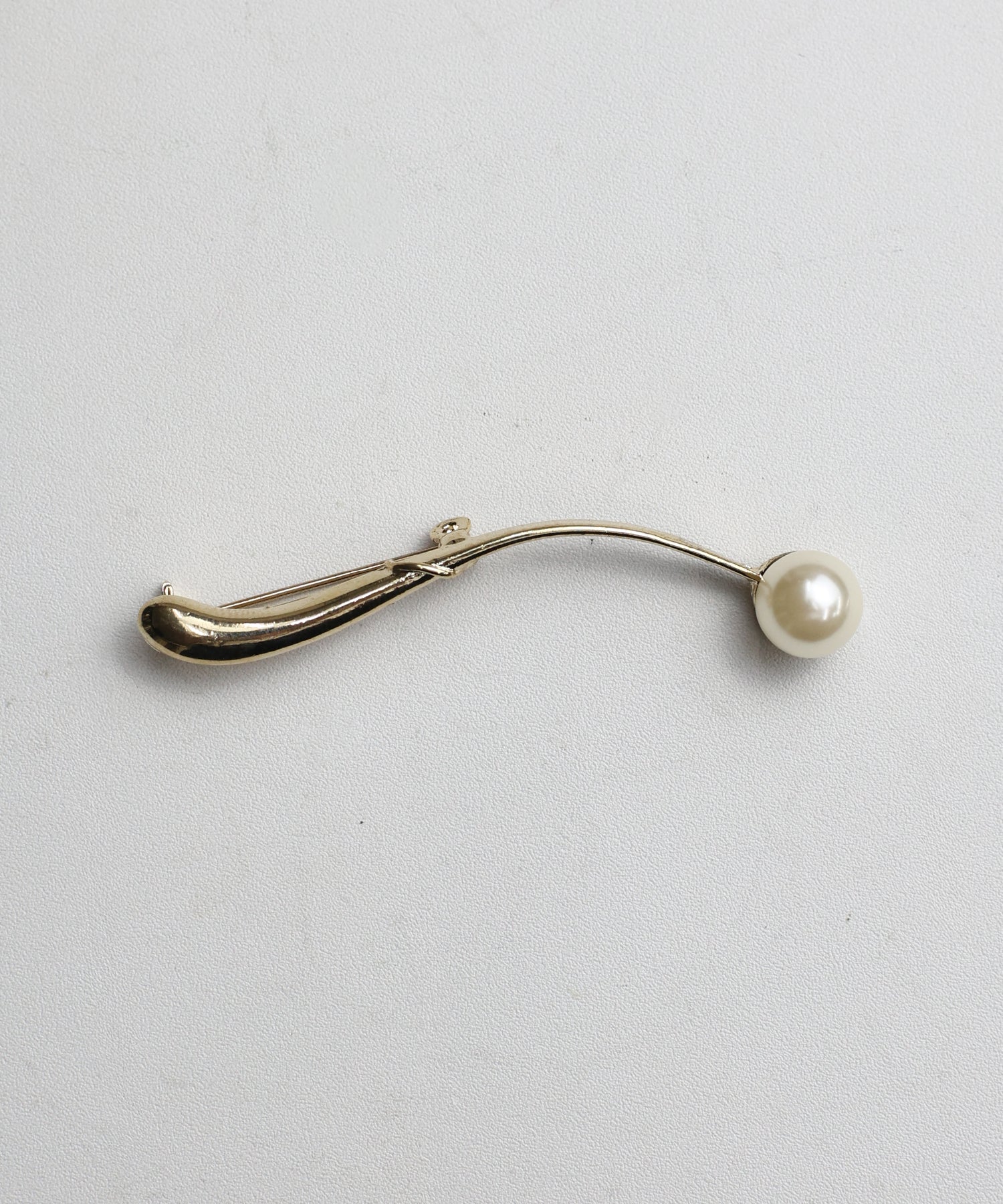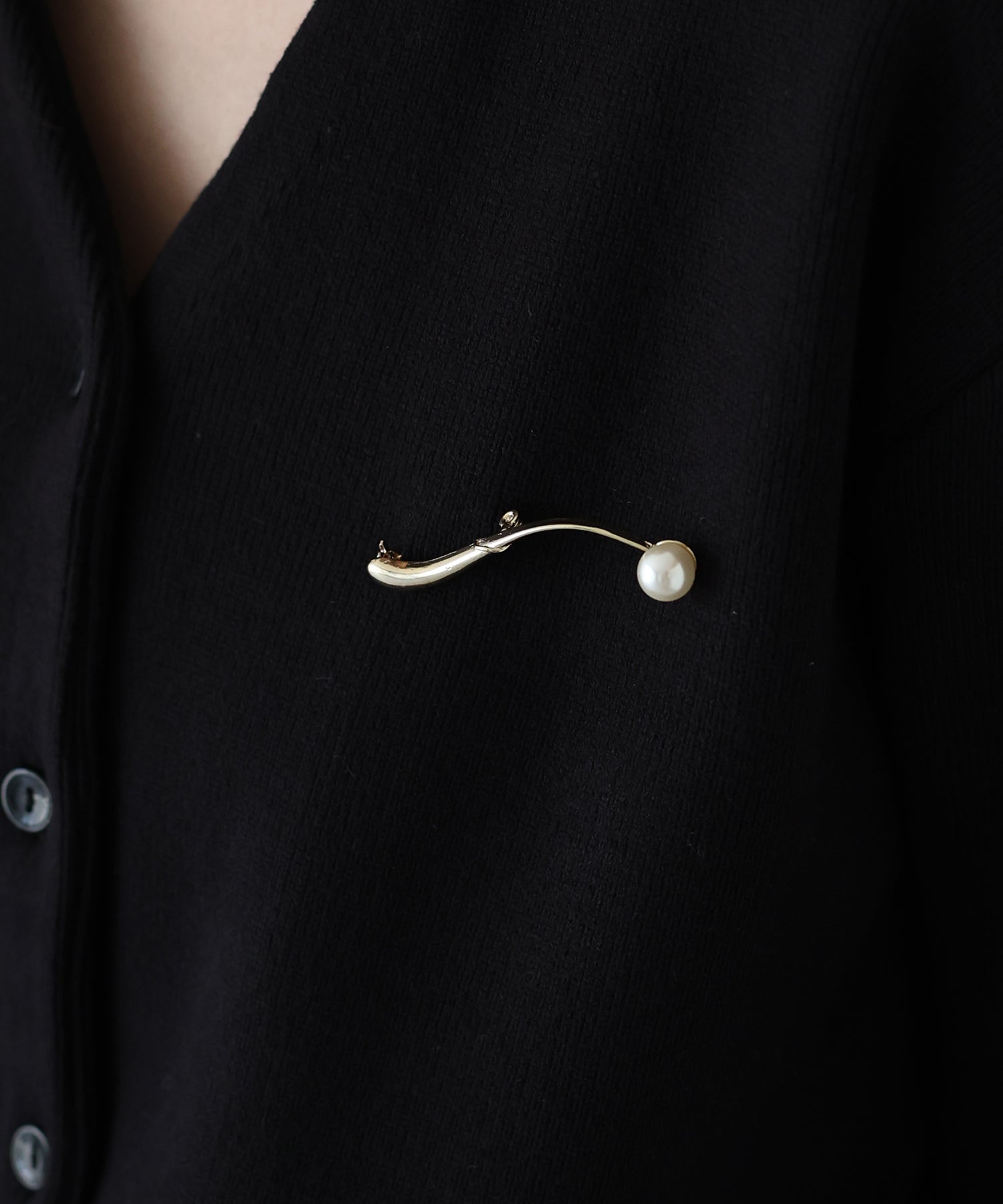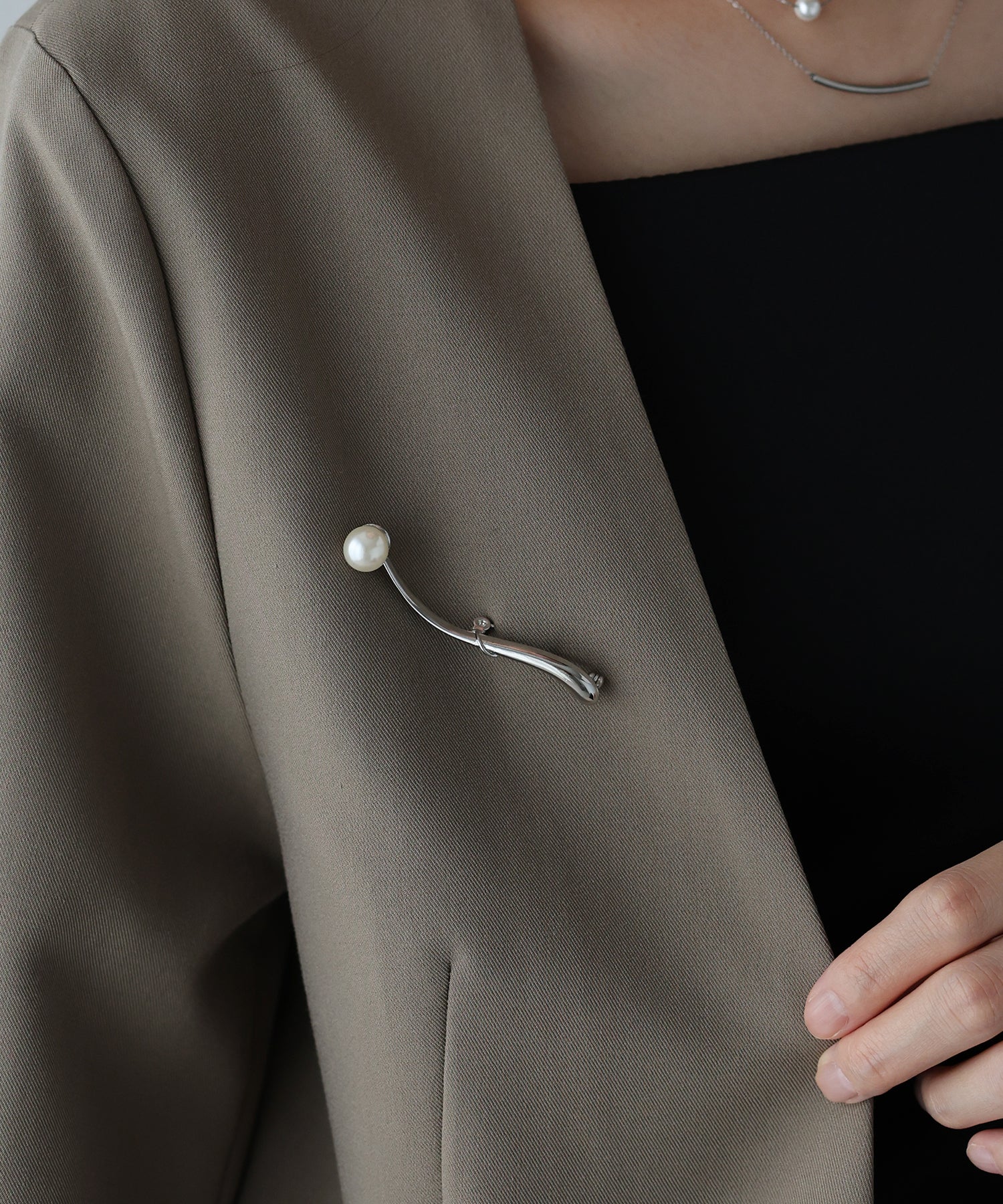 付けるだけでこなれ感をプラス。柔らかな曲線を描くメタルに上品なパールを一粒添えたブローチ。