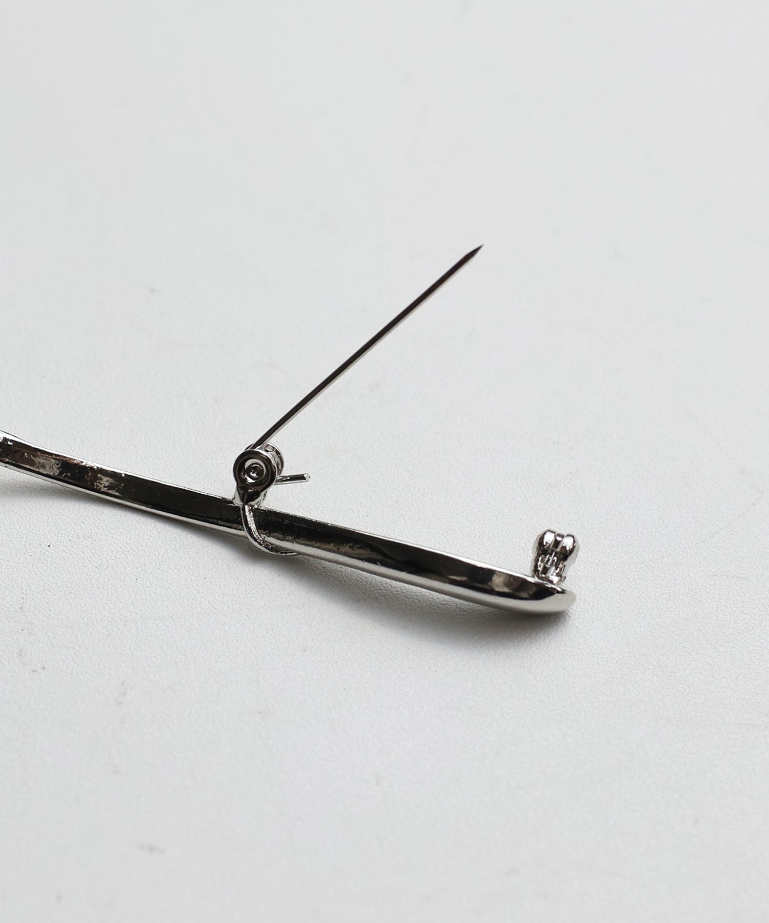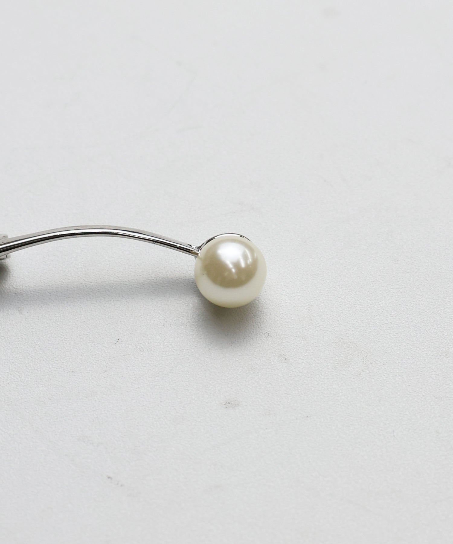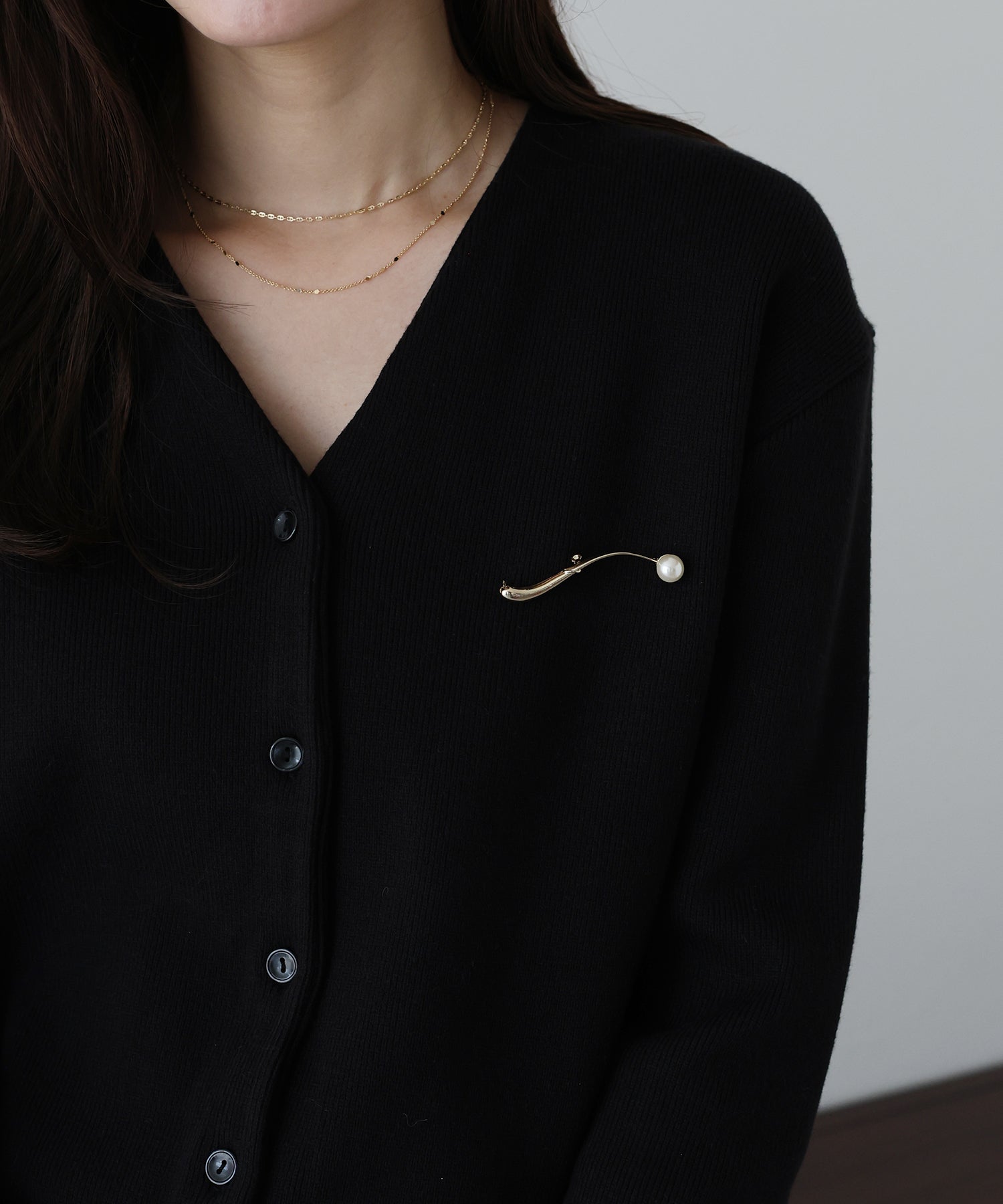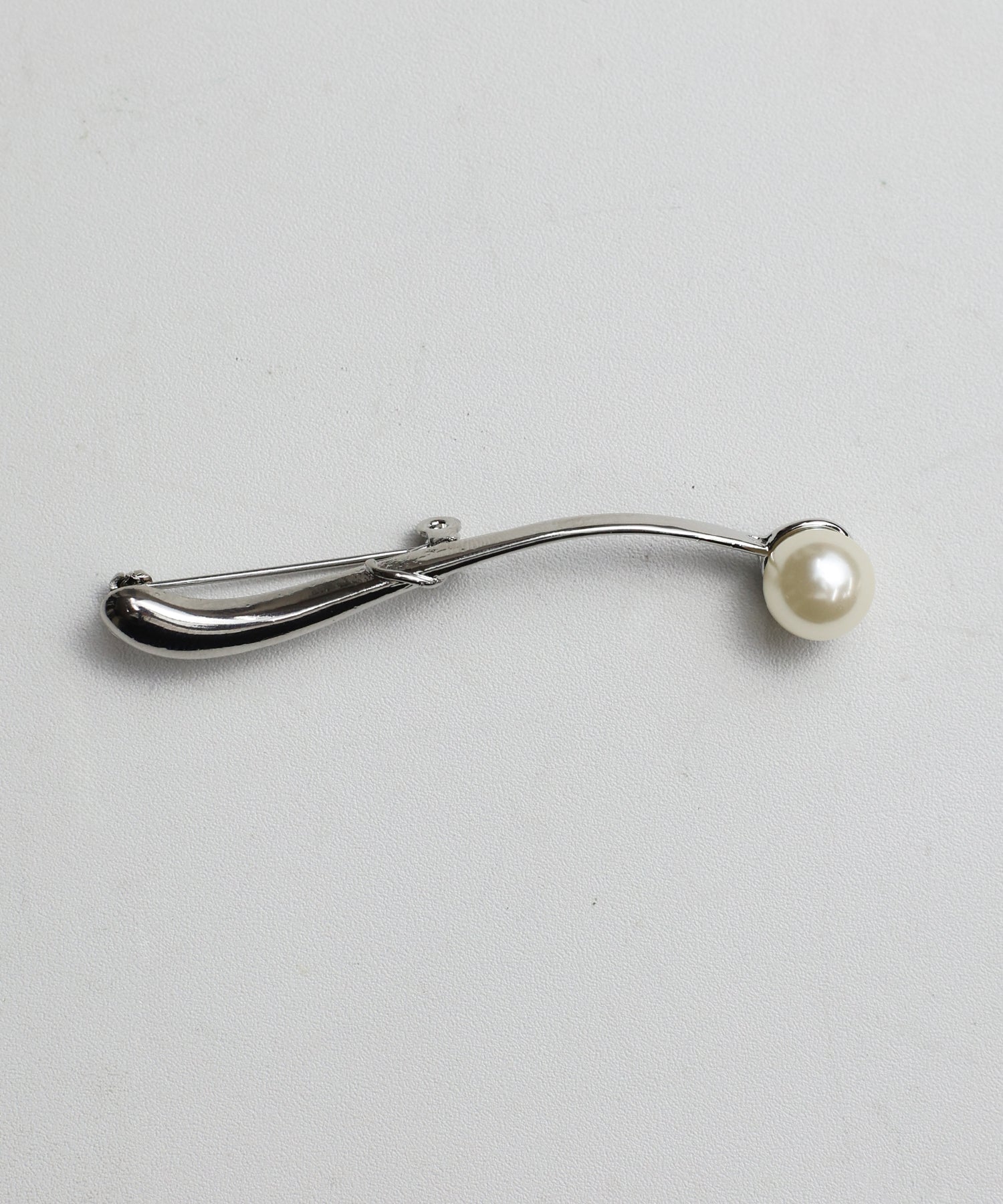 付けるだけでこなれ感をプラス。柔らかな曲線を描くメタルに上品なパールを一粒添えたブローチ。
