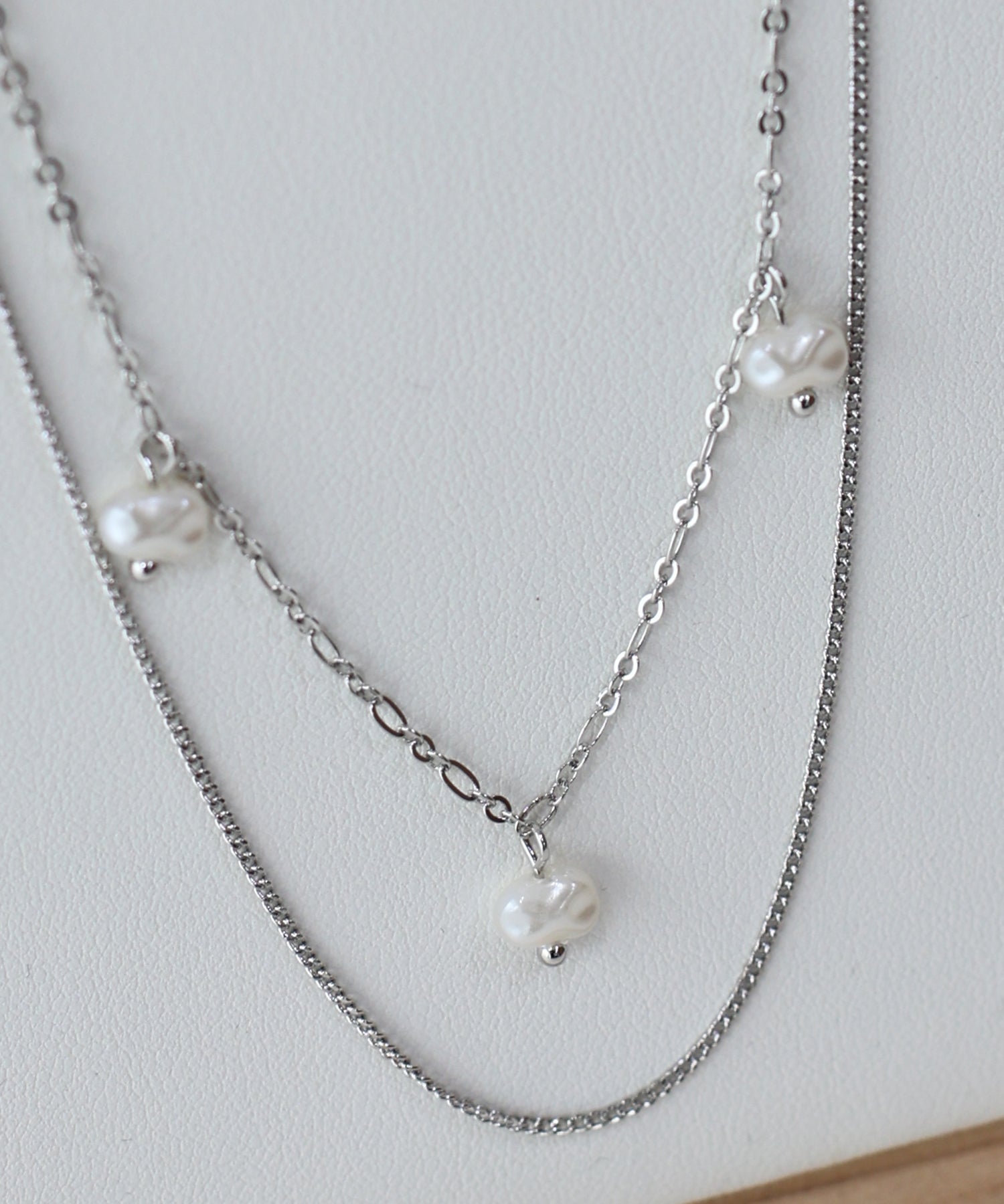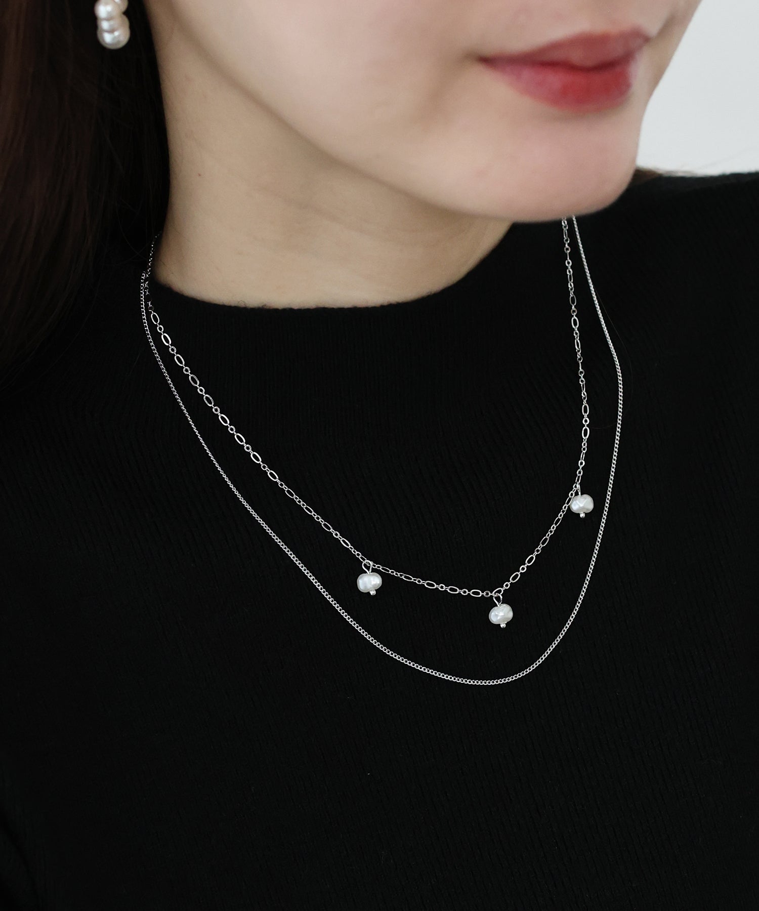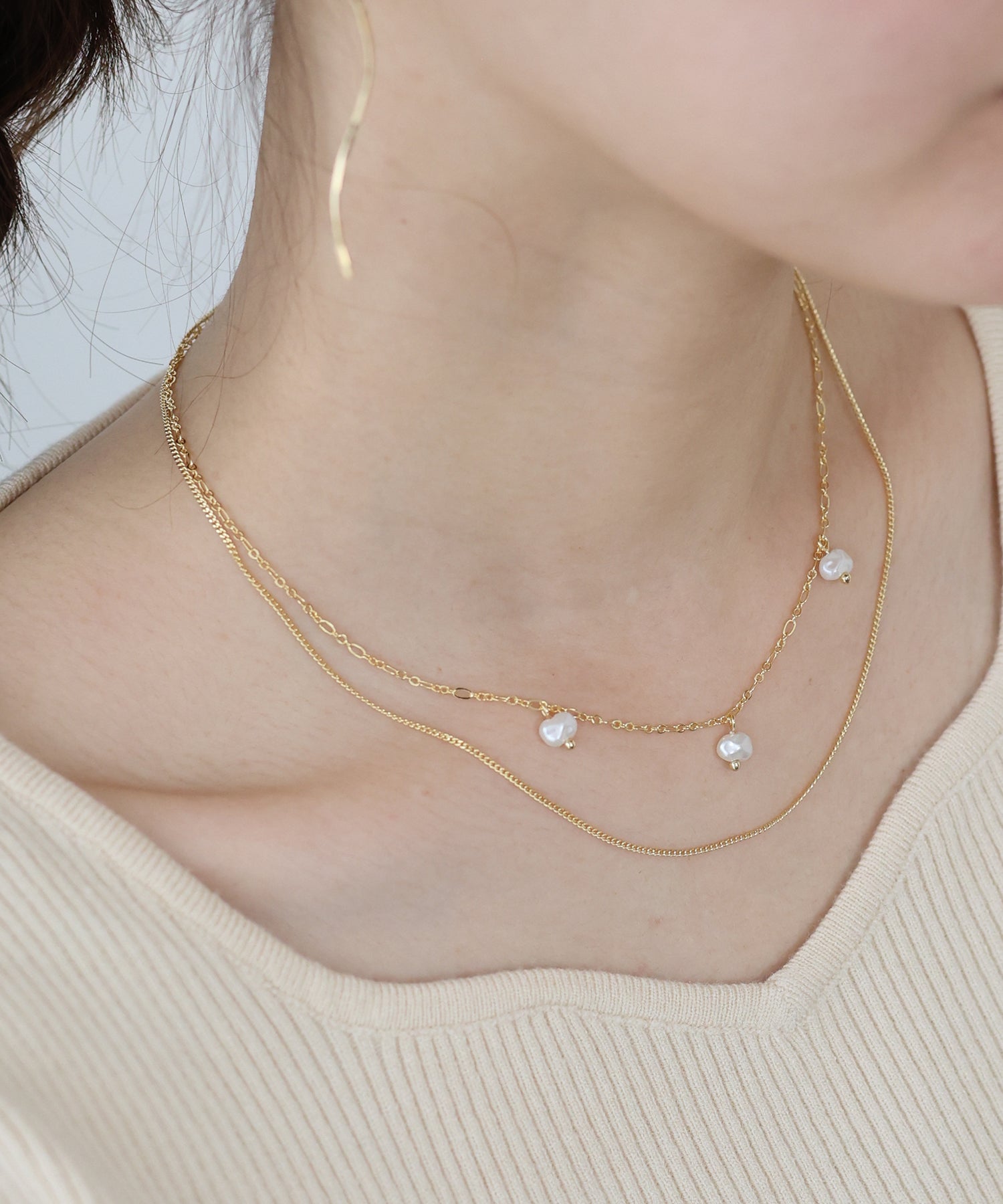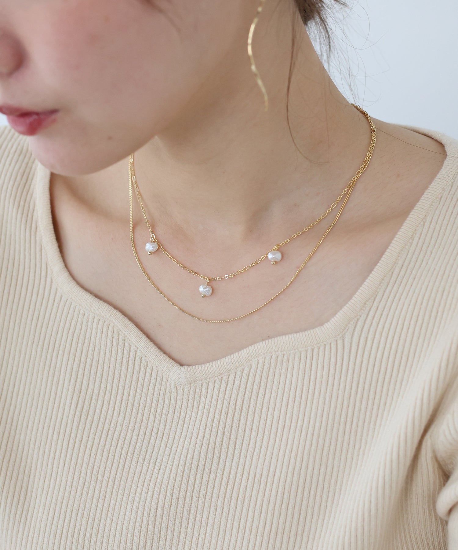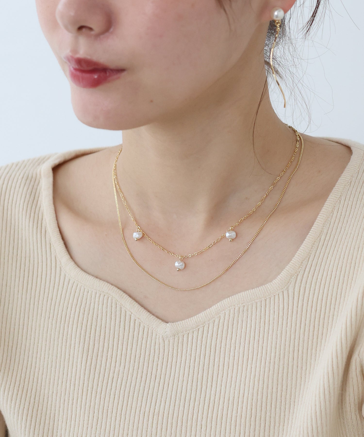 【早割5%OFF】パールステーション2連ネックレス / ニッケルフリー【ネコポス】