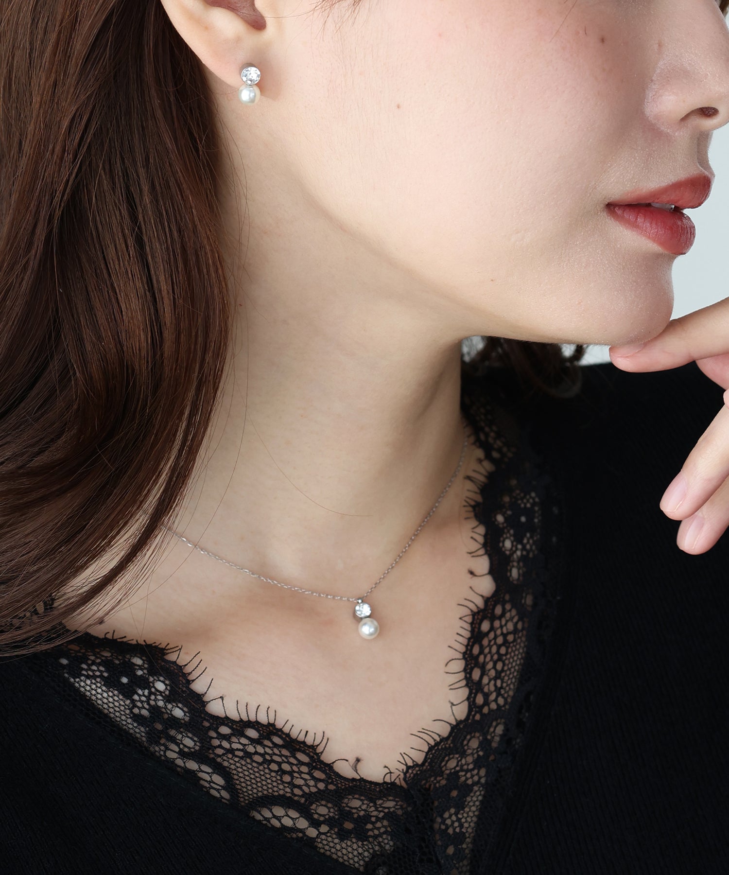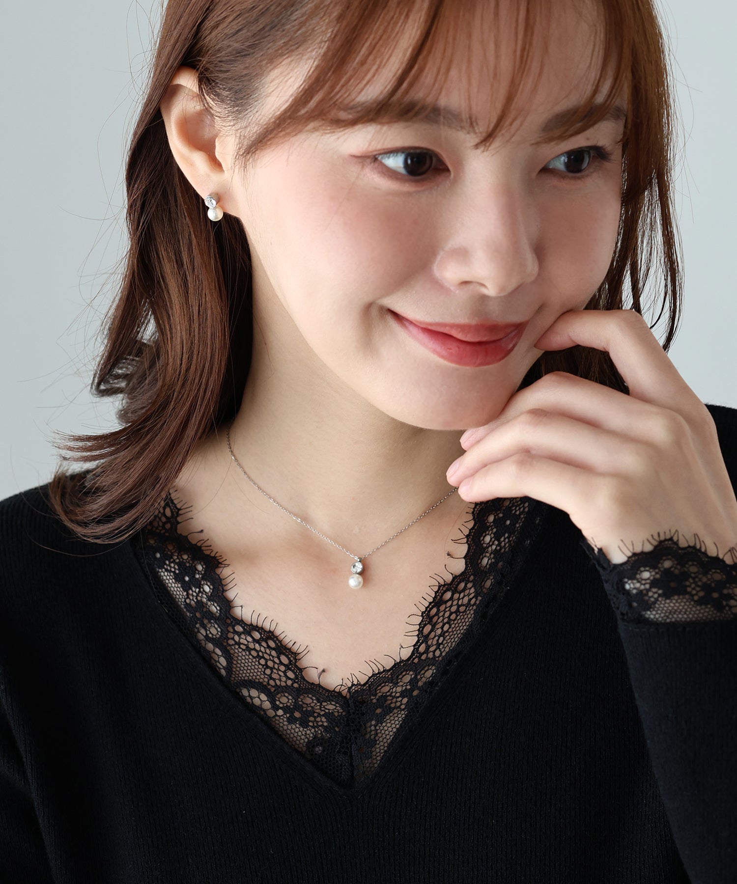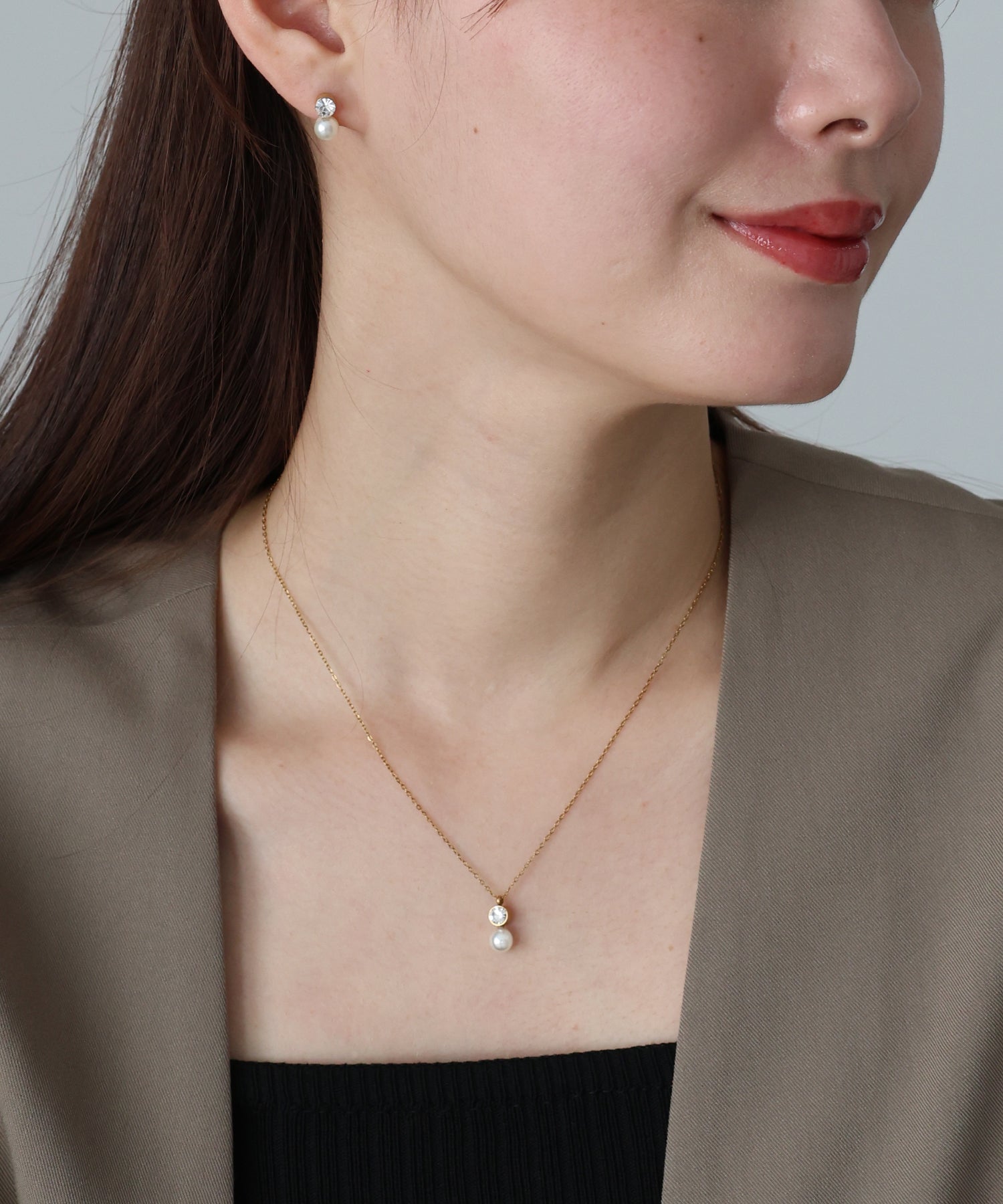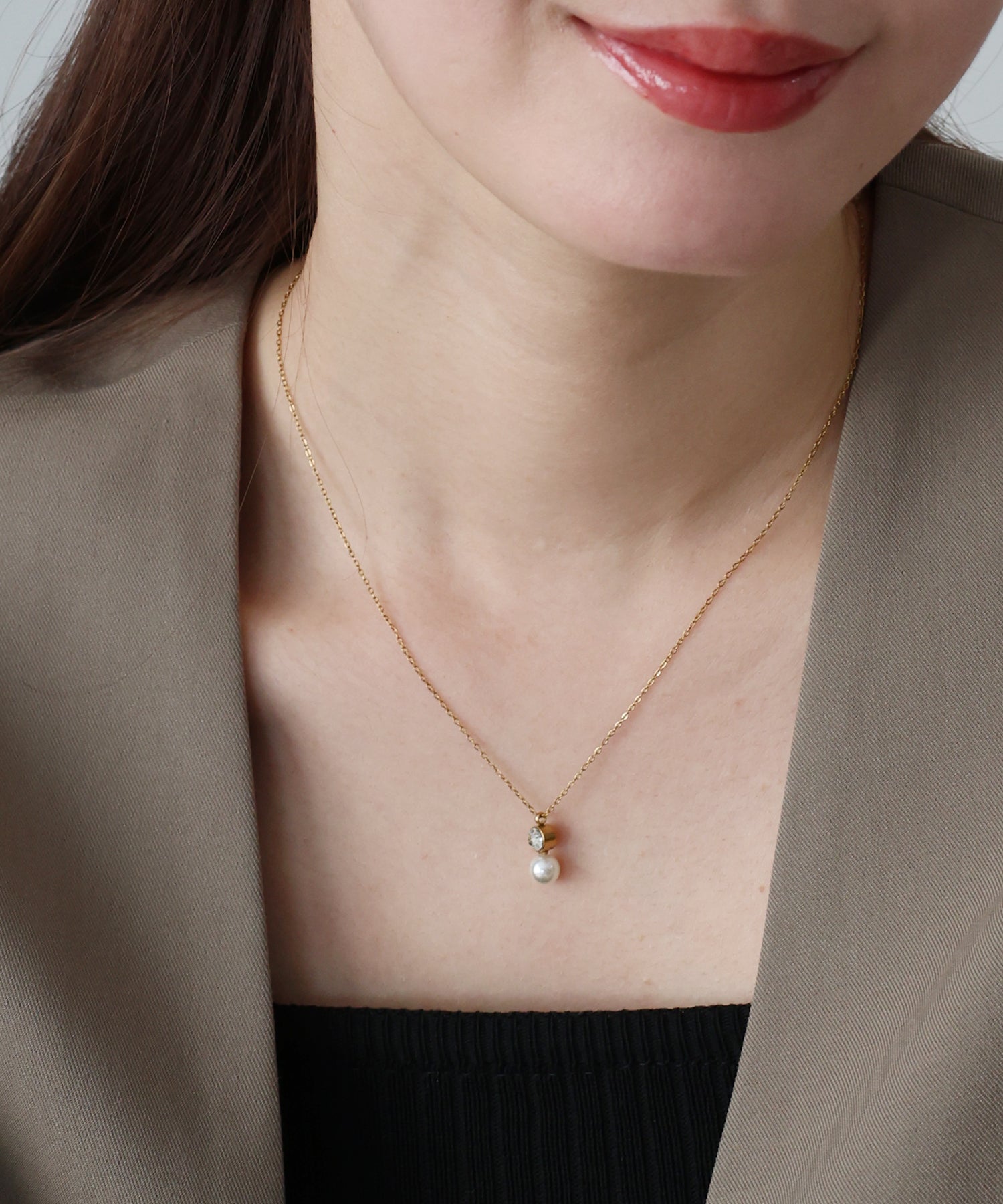 キュービックジルコニア×パールが洗練されたデザインのデイリーに身に着けられるネックレス